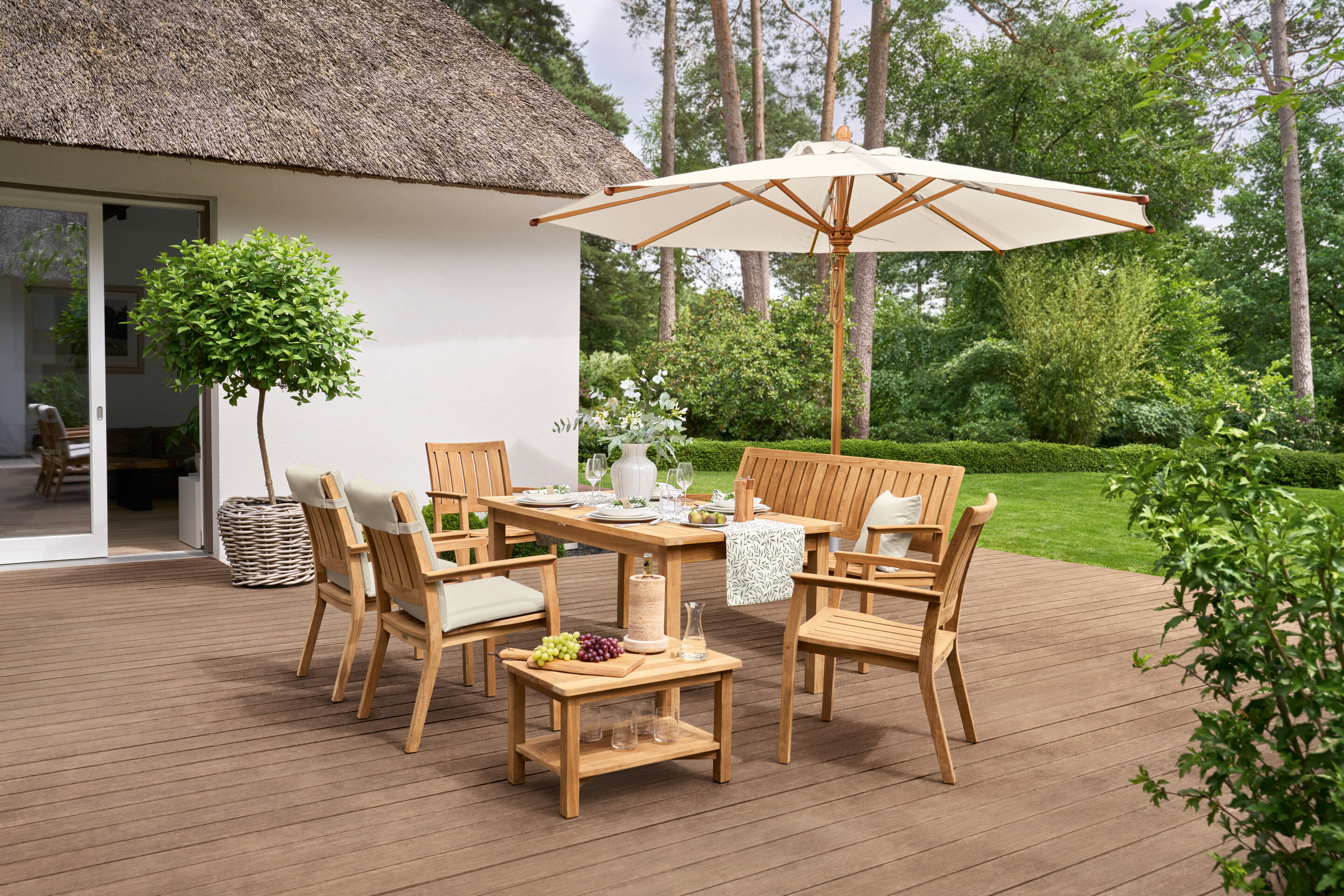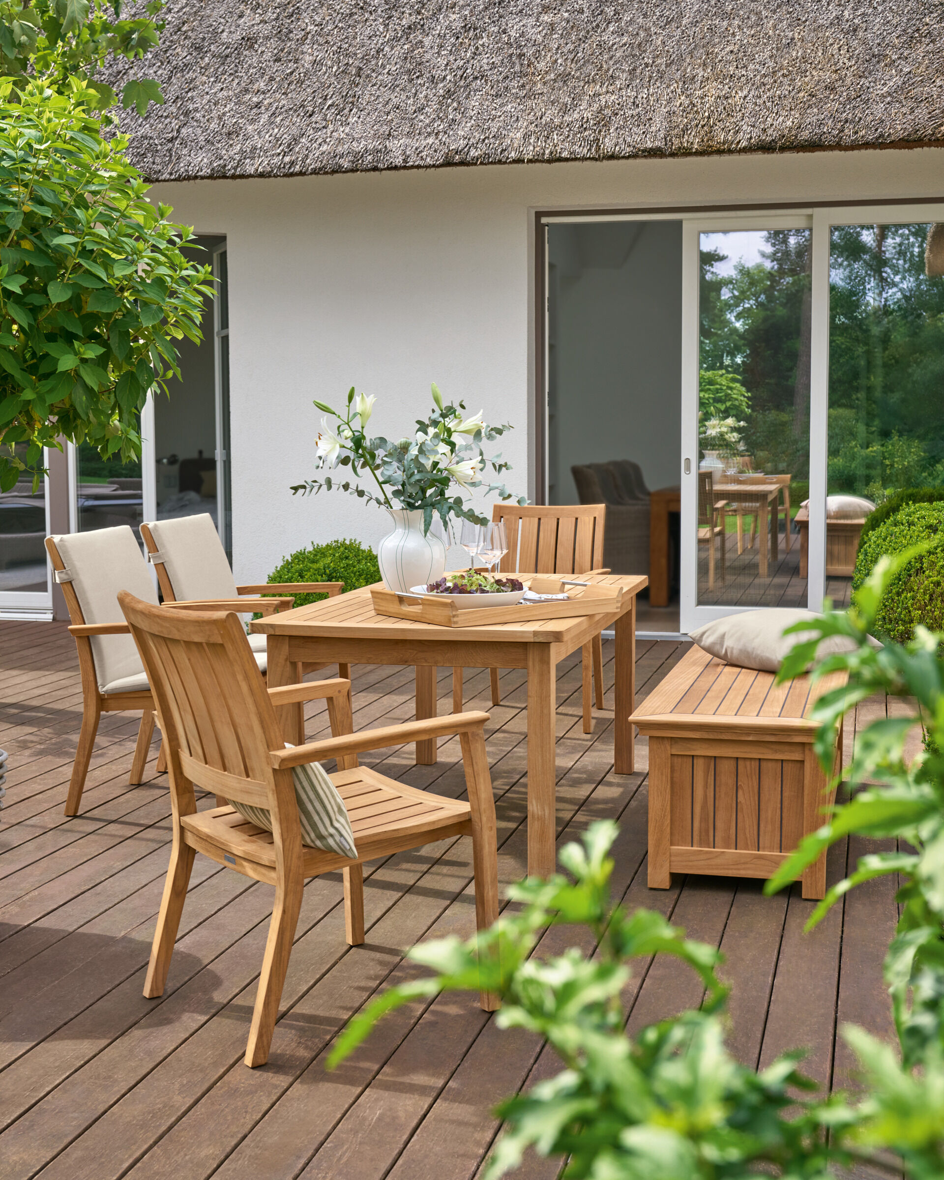 Ob Sie Ihre Terrasse klassisch oder modern gestalten möchten, ob Sie sich für Sitz- oder Loungegruppen interessieren – bei uns erwarten Sie die Gartenmöbel und Accessoires, die perfekt zu Ihrem Einrichtungsstil passen. Sie haben die Wahl zwischen wetterfesten Materialien wie Teakholz, Geflecht oder Edelstahl und Auflagen und Polstern in farbenfrohen Dessins. Finden Sie jetzt Ihre Kollektion.