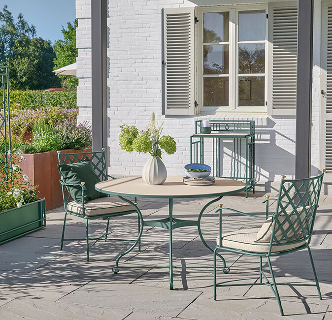 Ob Sie Ihre Terrasse klassisch oder modern gestalten möchten, ob Sie sich für Sitz- oder Loungegruppen interessieren – bei uns erwarten Sie die Gartenmöbel und Accessoires, die perfekt zu Ihrem Einrichtungsstil passen. Sie haben die Wahl zwischen wetterfesten Materialien wie Teakholz, Geflecht oder Edelstahl und Auflagen und Polstern in farbenfrohen Dessins. Finden Sie jetzt Ihre Kollektion.