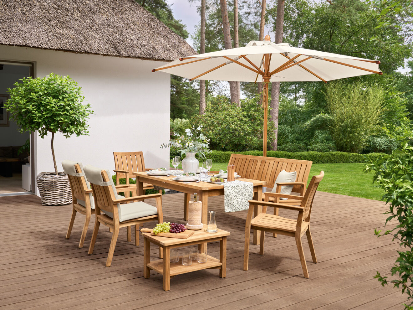 Exklusive Gartenmöbel aus hochwertigem Teakholz und weiteren witterungsbeständigen Materialien wie Edelstahl, Stahl, Aluminium und Geflecht – dafür steht Garpa. Die große Auswahl edler Außenmöbel und Accessoires verspricht inspirierende Ideen für den Garten auf Erden. Zu unseren vielfältigen Sitzgelegenheiten zählen unter anderem Gartenstühle mit und ohne Armlehnen, Hochlehner und Gartenbänke. Für draußen geeignet sind selbstverständlich auch die großzügigen Gartentische und luxuriösen Loungemöbel. Für Schutz sorgen passgenaue Abdeckhauben. Welche Gartenmöbel zu empfehlen sind, hängt ganz von Ihren Präferenzen ab. Favorisieren Sie englisches oder italienisches Design? Schlägt Ihr Herz für klassische Holzmöbel oder setzen Sie lieber moderne Akzente? Zum Sortiment von Garpa Garten & Park Einrichtungen gehören sowohl zeitlose als auch ausgefallene Gartenmöbel. Gemeinsames Merkmal sind die charmanten Akzente, die sie im Garten oder auf der Terrasse setzen – und natürlich der unnachahmliche Komfort. Gerade unsere Gartenmöbel aus wetterfestem Teak sind Lieblingsstücke fürs Leben. Entdecken Sie Premium Gartenmöbel online, von denen viele sofort verfügbar sind.