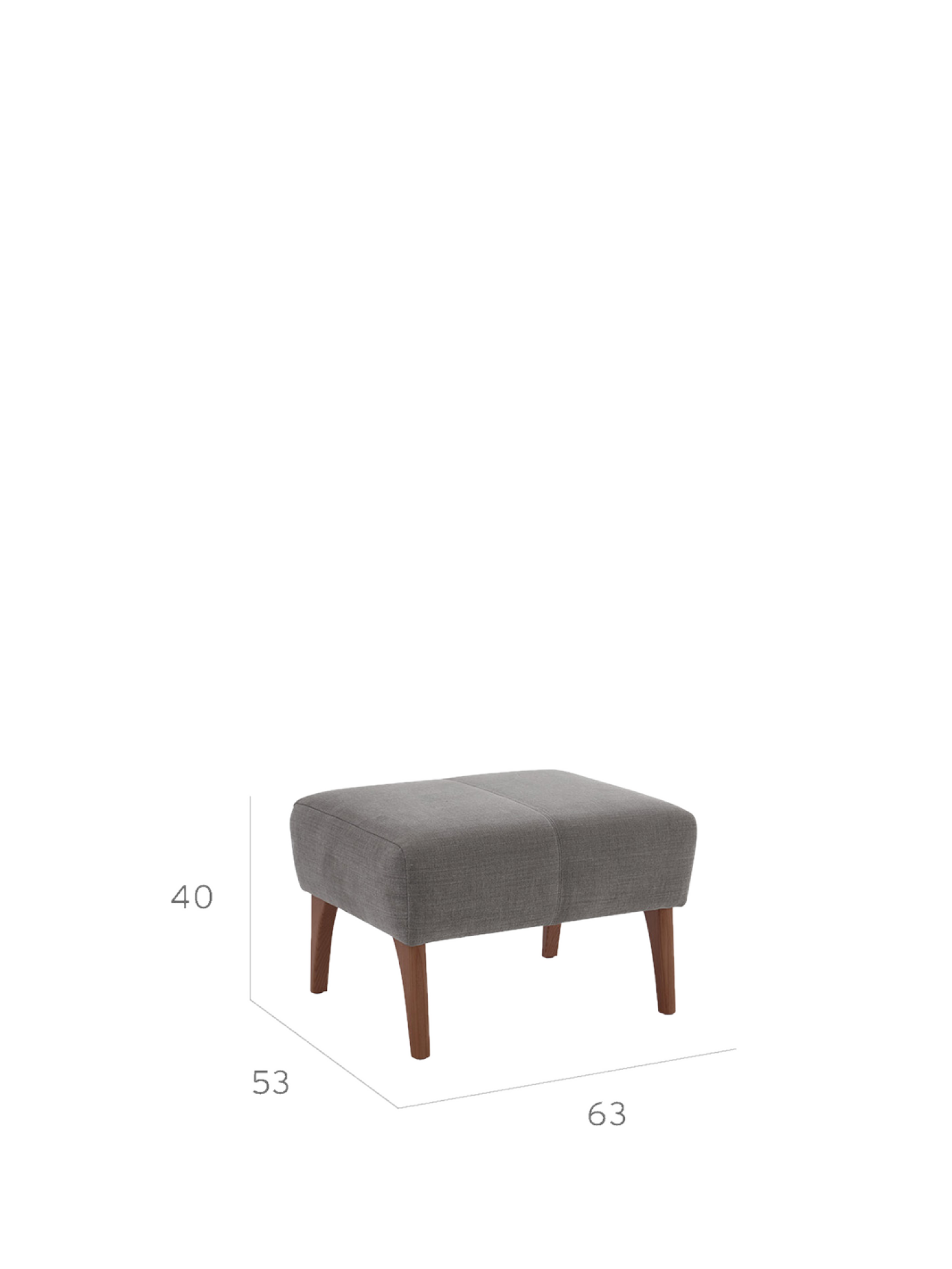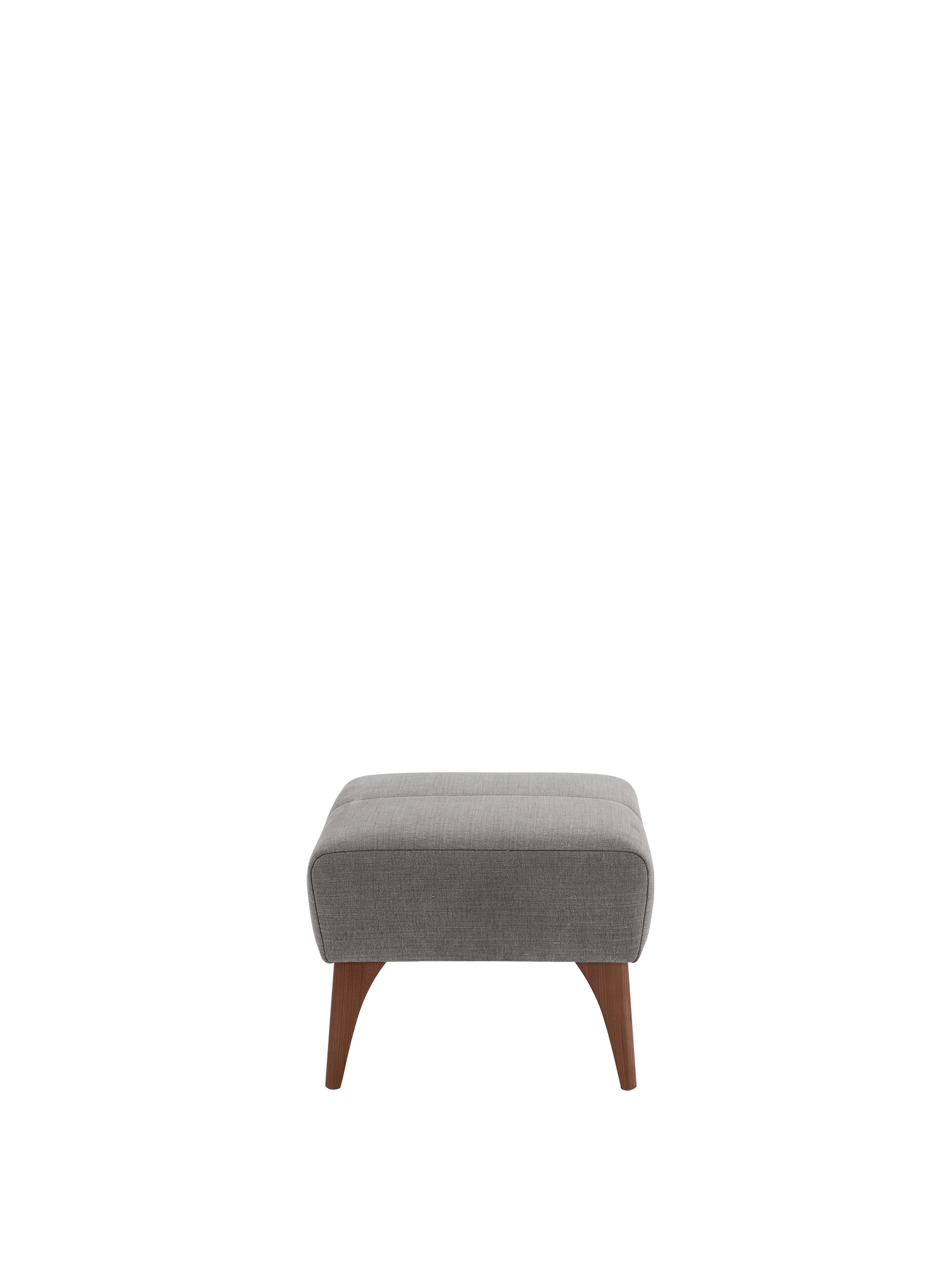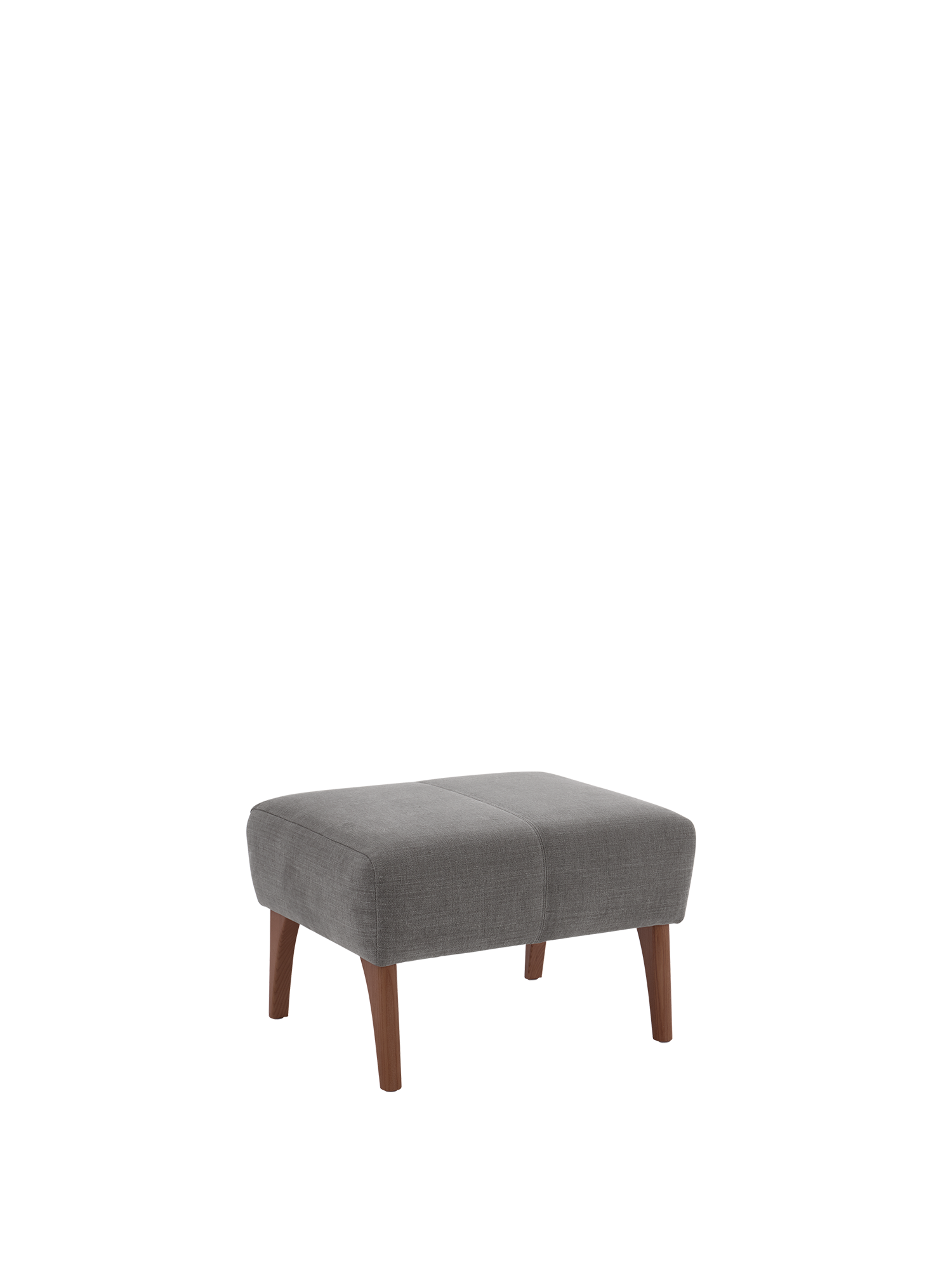 Noch mehr Bequemlichkeit: Auf dem zum Alden Sessel passenden Hocker mit gepolstertem Stoffbezug streckt man ganz entspannt die Beine aus. Wie der Sessel wird er in den Bielefelder Werkstätten von Hand gefertigt. Die leicht ausgestellten Füße bestehen aus auf Nussbaum gebeiztem Eschenholz.
