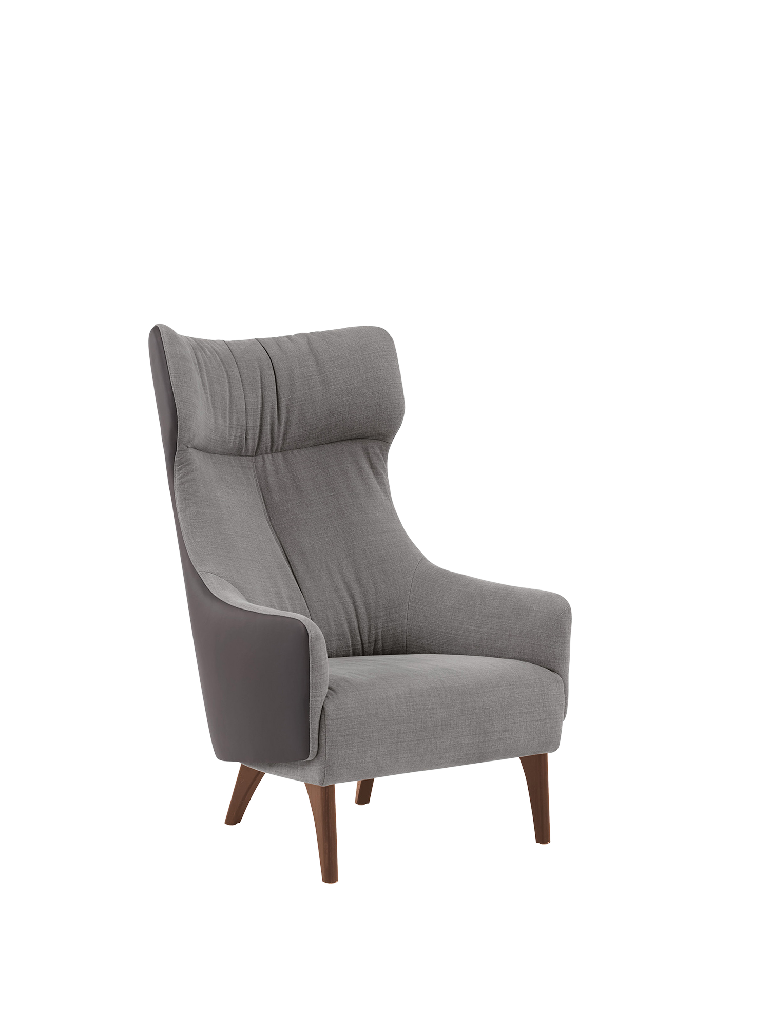 Der in Kooperation mit den Bielefelder Werkstätten von Hand gefertigte Ohrensessel erinnert an zeitlose Klassiker der 60er-Jahre. Weiche Polster machen ihn unwiderstehlich. Erhältlich in vornehmem Grau oder wohnlichem Beige, ist der Sessel außen mit schmeichelndem Anilinleder, innen mit einem angenehmen Baumwoll-Leinen-Gewebe bezogen. Die leicht ausgestellten Füße bestehen aus auf Nussbaum gebeiztem und lackiertem Eschenholz. Kunststoffgleiter schützen empfindliche Böden.