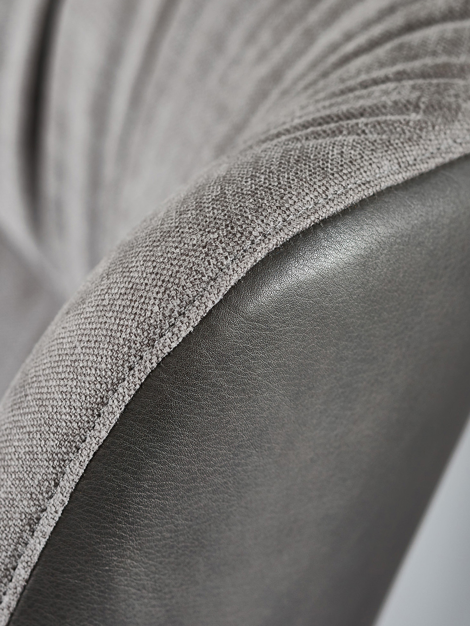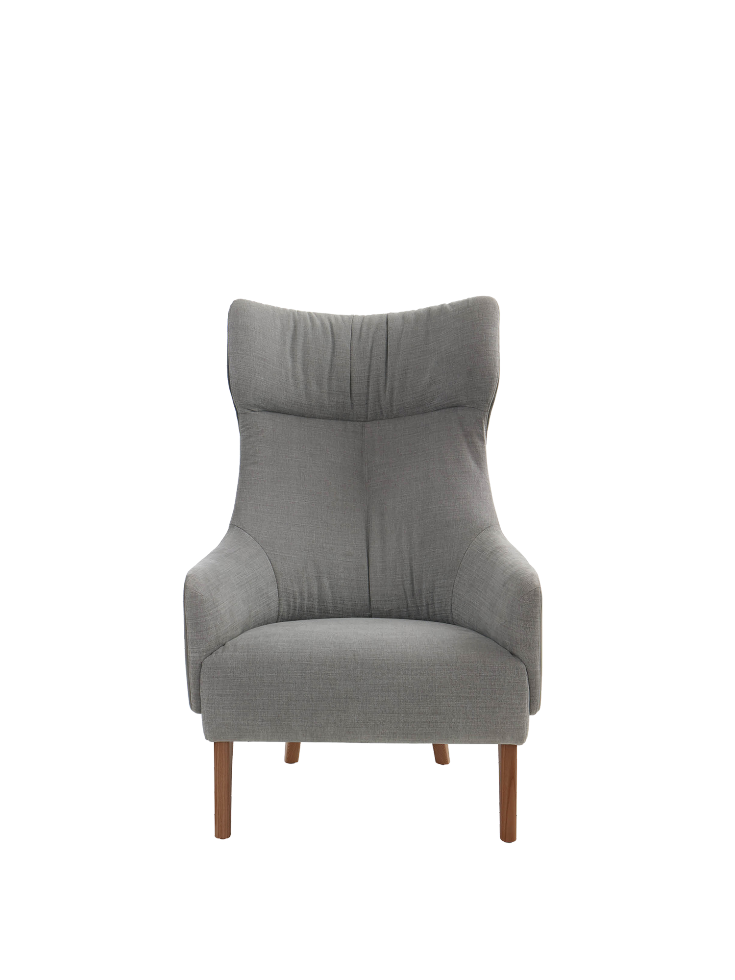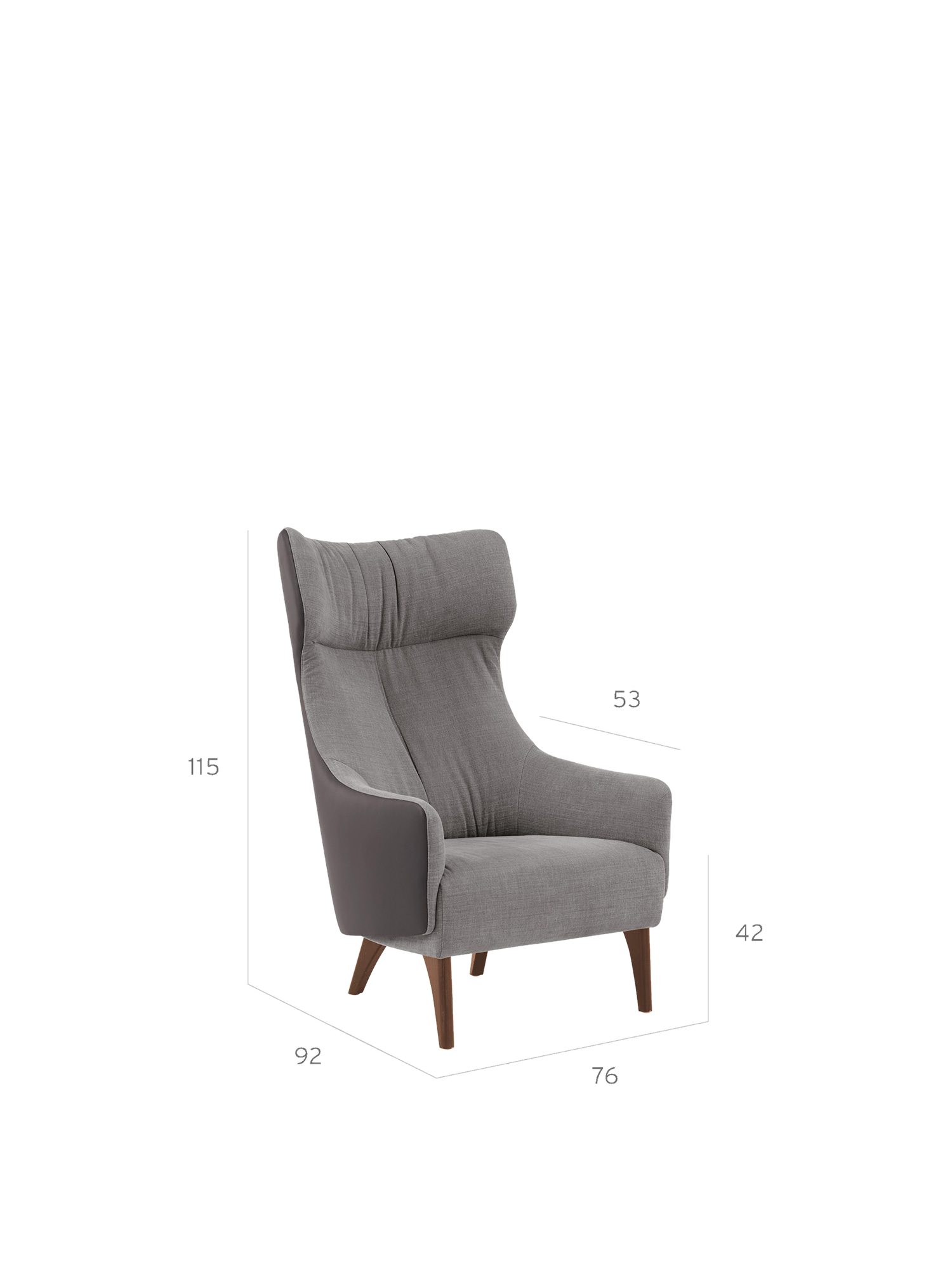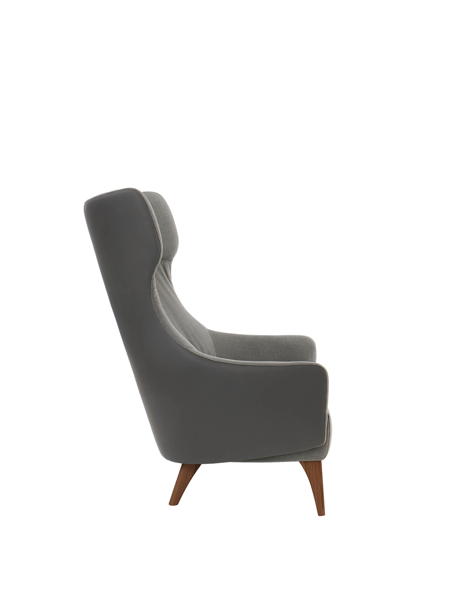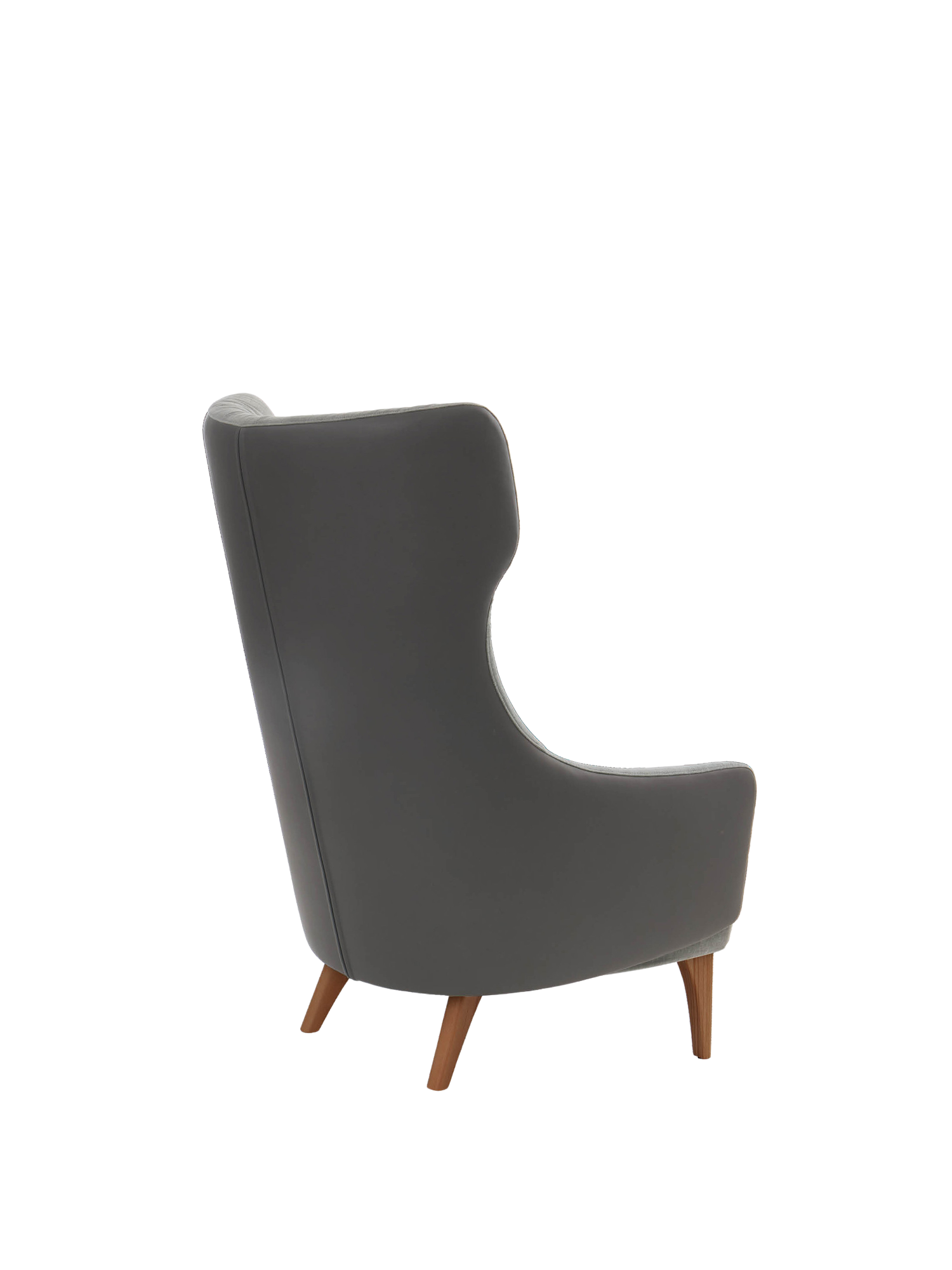 Der in Kooperation mit den Bielefelder Werkstätten von Hand gefertigte Ohrensessel erinnert an zeitlose Klassiker der 60er-Jahre. Weiche Polster machen ihn unwiderstehlich. Erhältlich in vornehmem Grau oder wohnlichem Beige, ist der Sessel außen mit schmeichelndem Anilinleder, innen mit einem angenehmen Baumwoll-Leinen-Gewebe bezogen. Die leicht ausgestellten Füße bestehen aus auf Nussbaum gebeiztem und lackiertem Eschenholz. Kunststoffgleiter schützen empfindliche Böden.