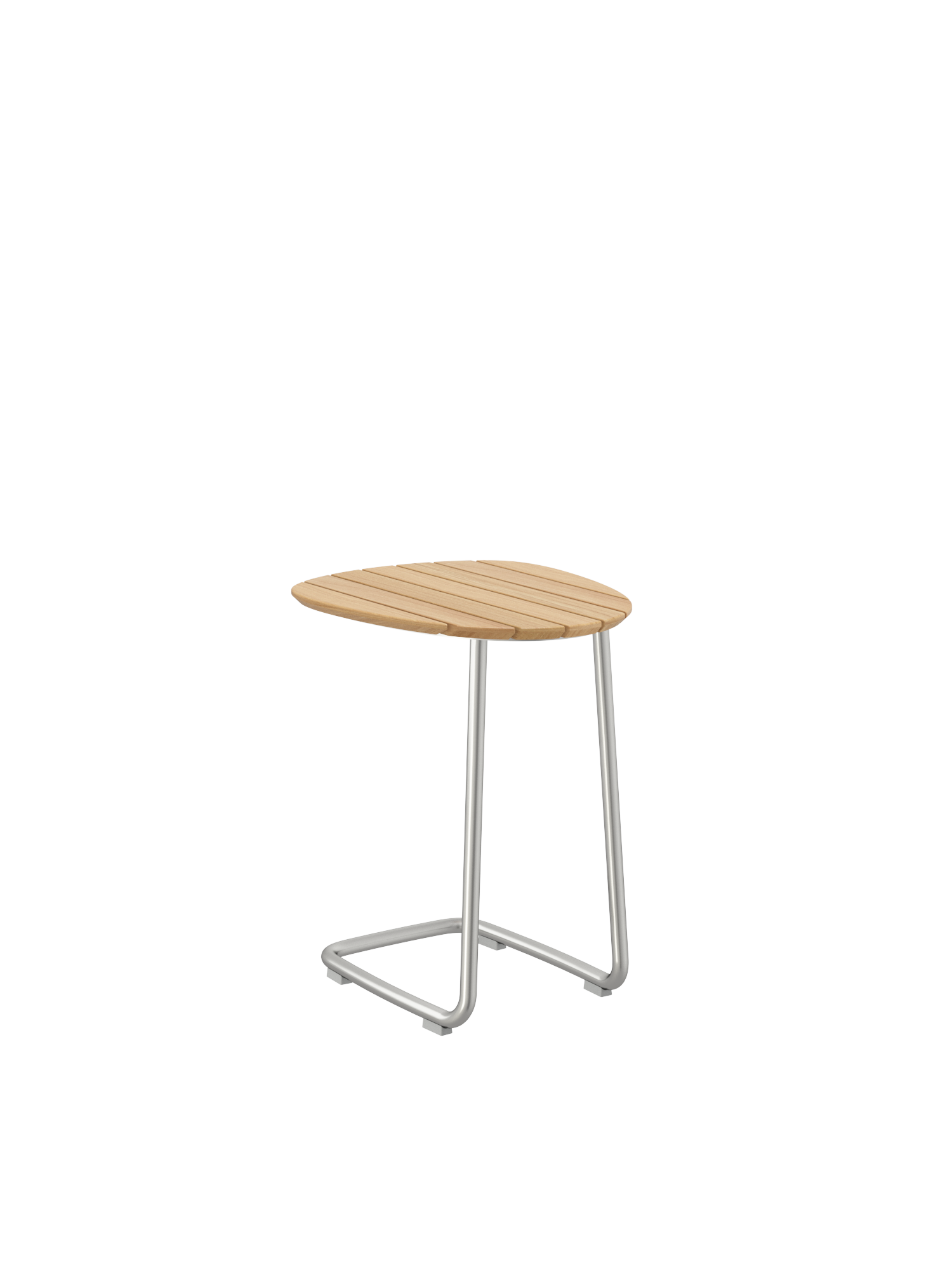 Soll beim Sonnenbad auf der Amari Chaiselongue eine Erfrischung in Reichweite sein, weiß der Freischwinger-Beistelltisch mit seiner praktischen Form zu überzeugen. Je weiter die grazilen Kufen aus gebürstetem Edelstahl unter die Liegefläche gezogen werden, desto Oberfläche aus Plantagenteak, die neben einem kühlen Getränk auf Platz für ein gutes Buch bereithält.