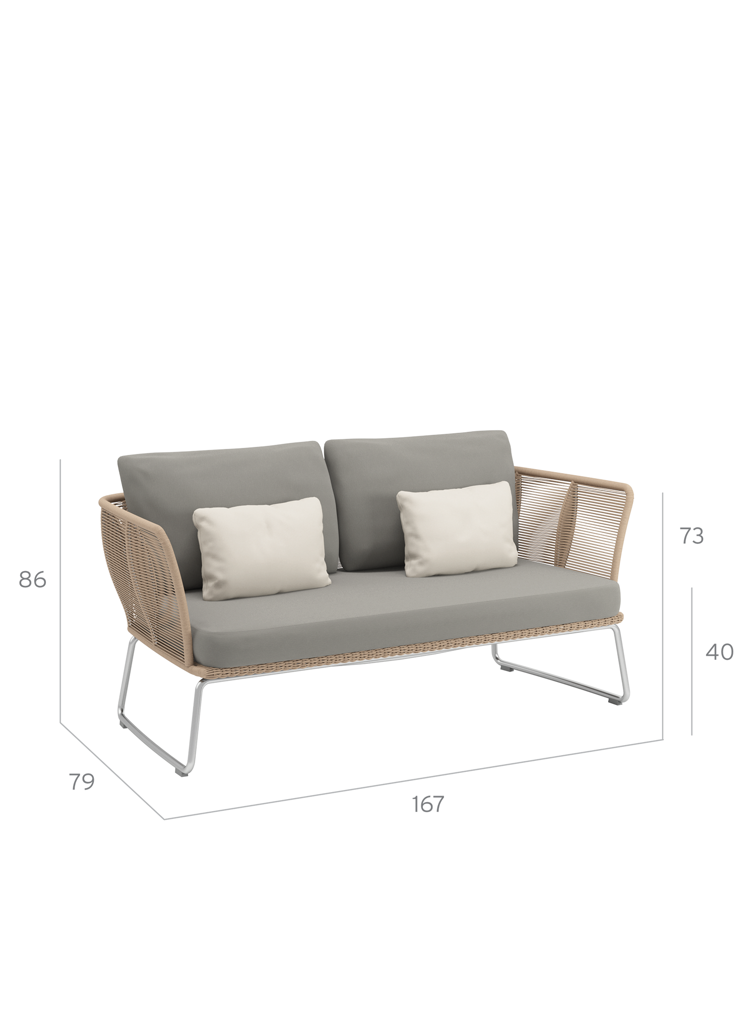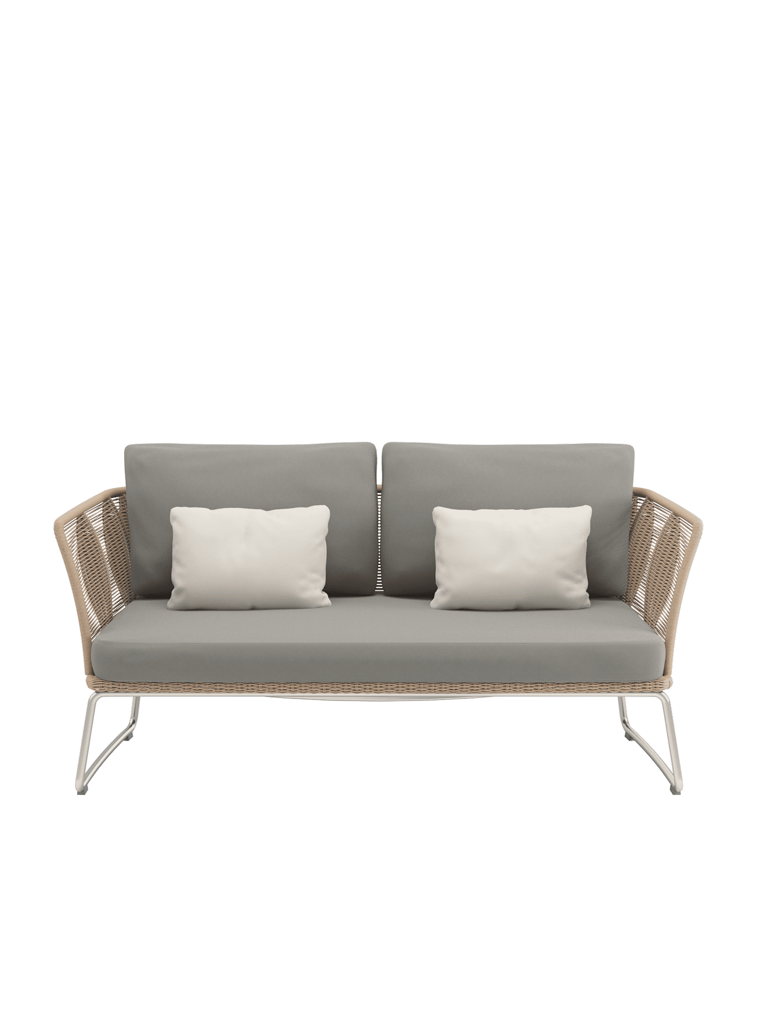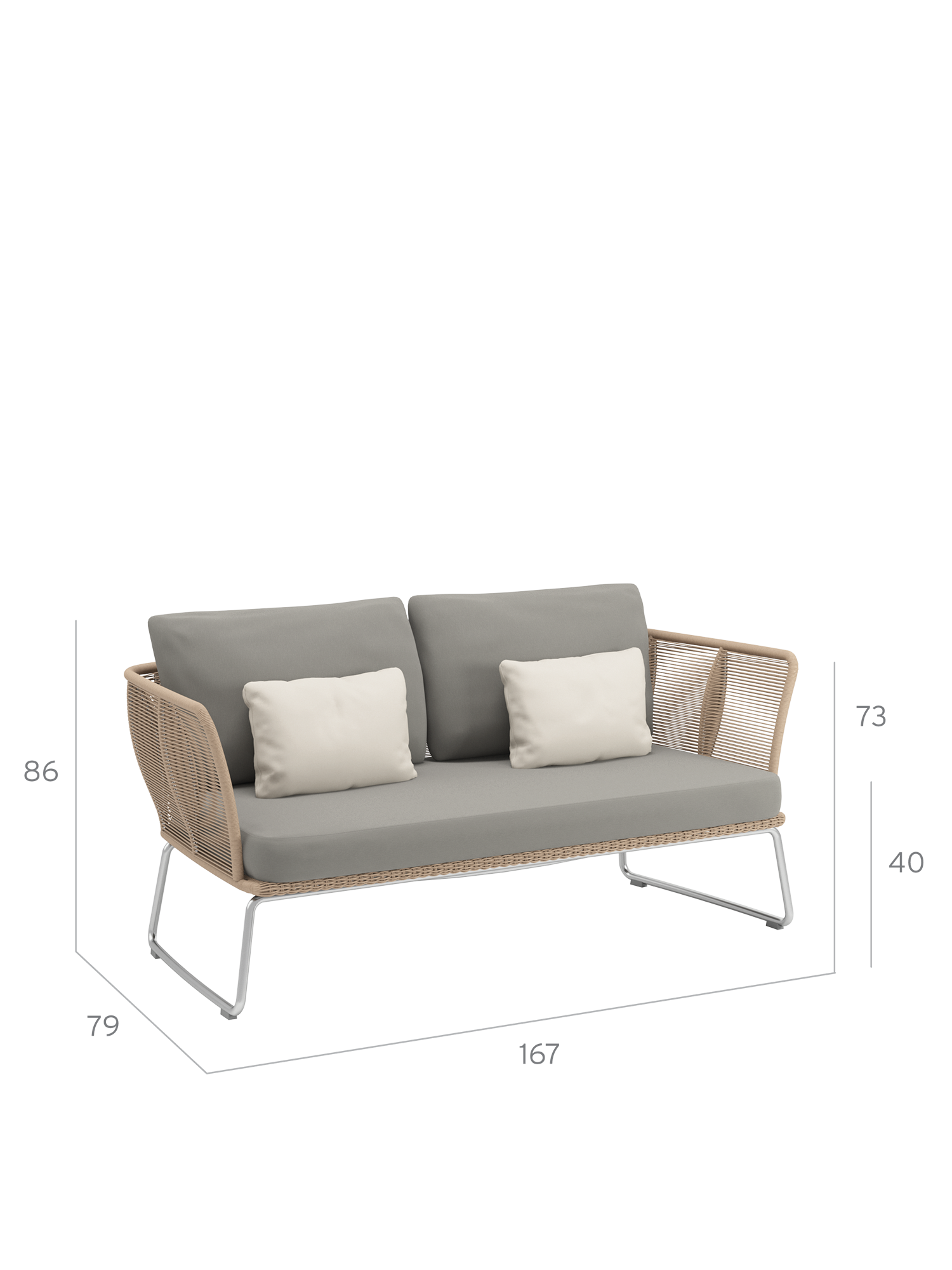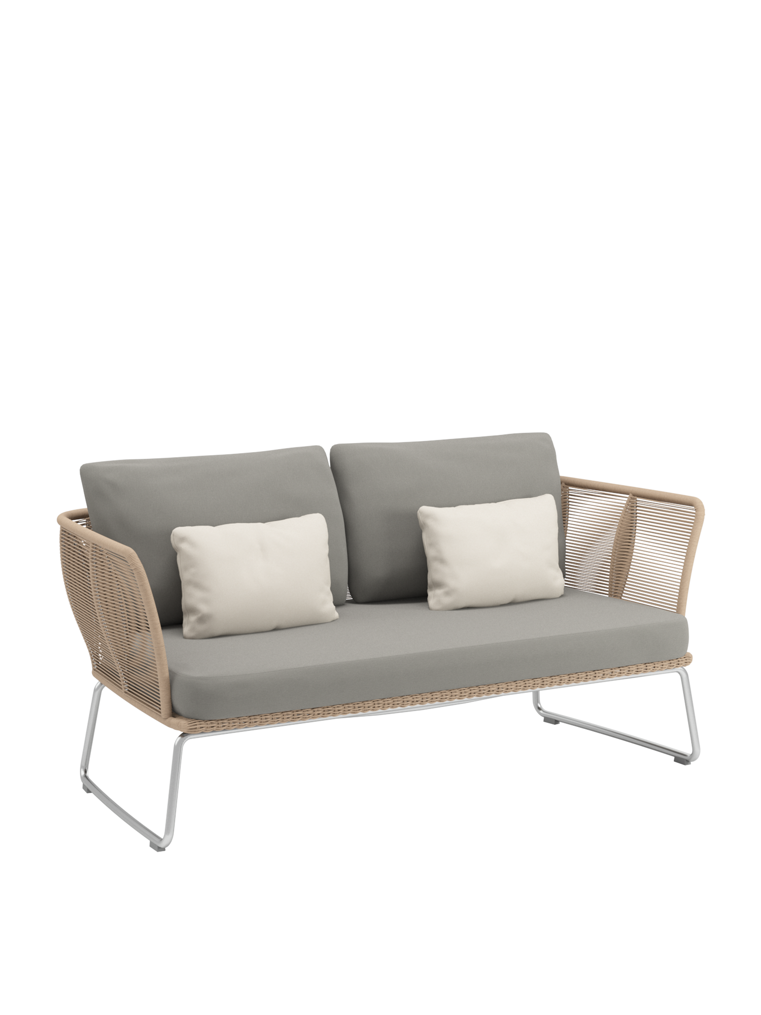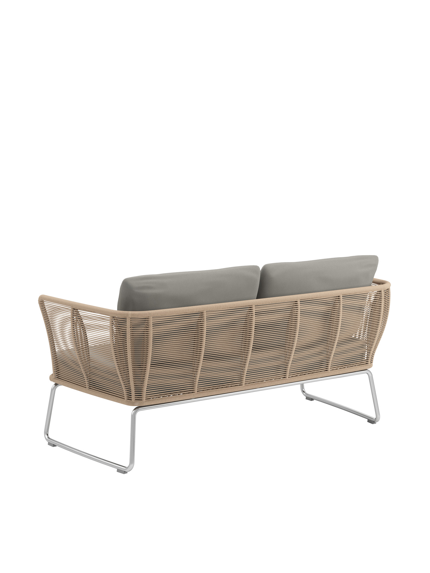 Die eleganten Lounge Sofas können das ganze Jahr über im Garten und auf der Terrasse genutzt werden. Für ihre Fertigung werden ausschließlich witterungsbeständige und robuste Materialien in gewohnter Garpa Qualität verwendet: besonders pflegeleichter, gebürsteter Edelstahl und eine Kordel aus Polyethylenfaser mit natürlicher Anmutung.