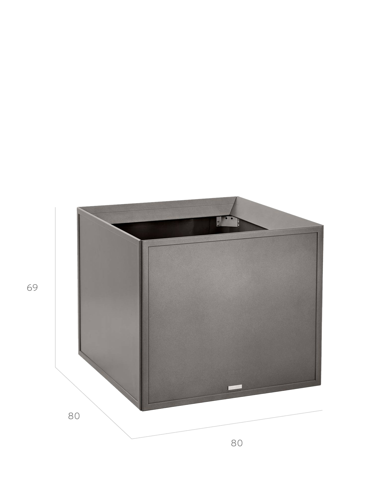 Im puristischen Design bringt der Antony Pflanzkübel seinen Inhalt vornehm zur Geltung. Elegant und robust wirkt der Blumenkübel dank des grauen pulverbeschichteten Aluminiums.