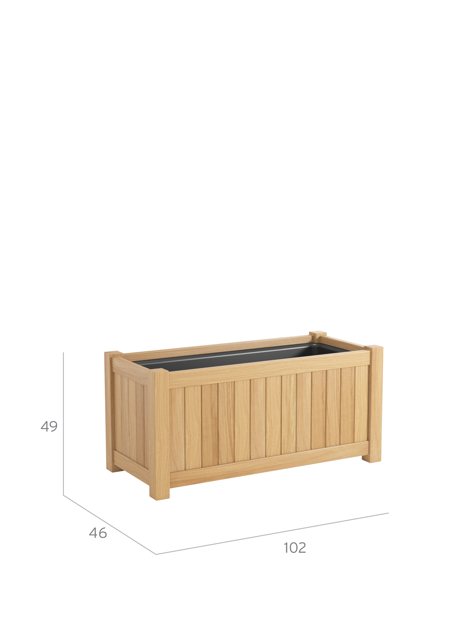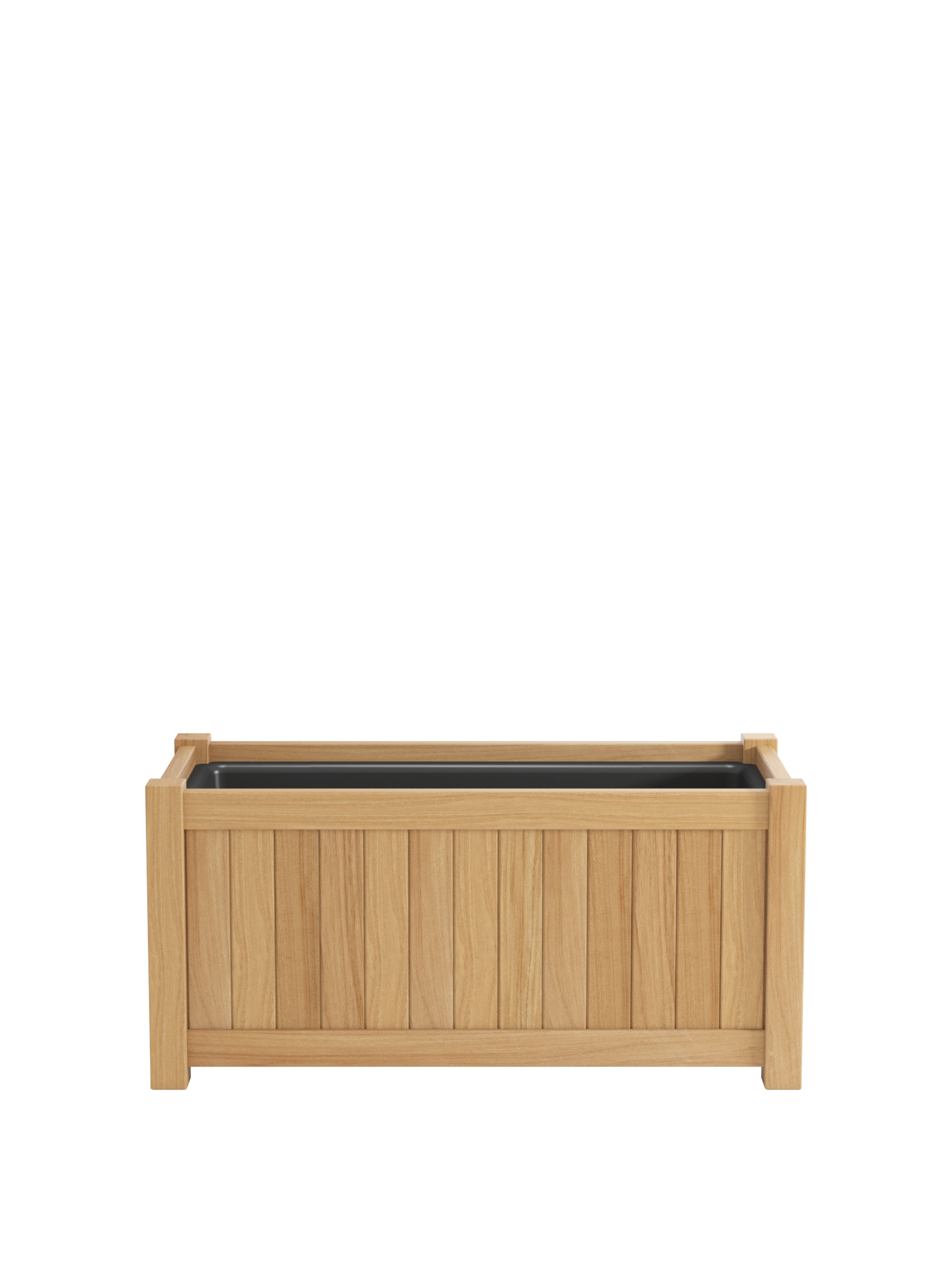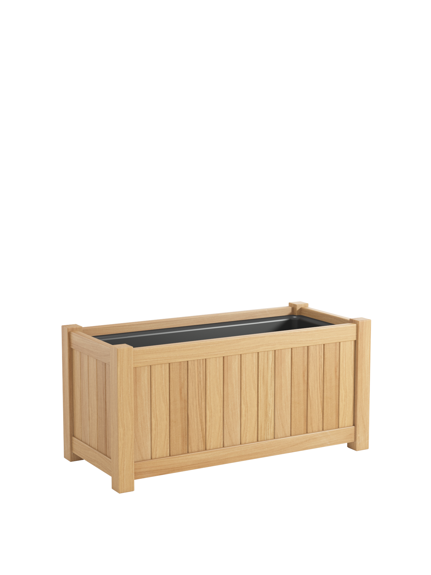 Der Pflanzkübel besteht aus wetterfestem Plantagenteak und setzt besondere Akzente im Garten oder auf der Terrasse. Der schwarze Einsatz besteht aus Fiberglas und hat zwei Abflusslöcher, damit überschüssiges Wasser ablaufen kann. Verstopfungen durch die Erde verhindert das mitgelieferte Drainagevlies. Aufgrund seines zeitlosen Designs passt der Pflanzkübel vor allem zur Torenso Kollektion und empfiehlt sich für stimmige Kombinationen mit ausgewählten Teakmöbeln.