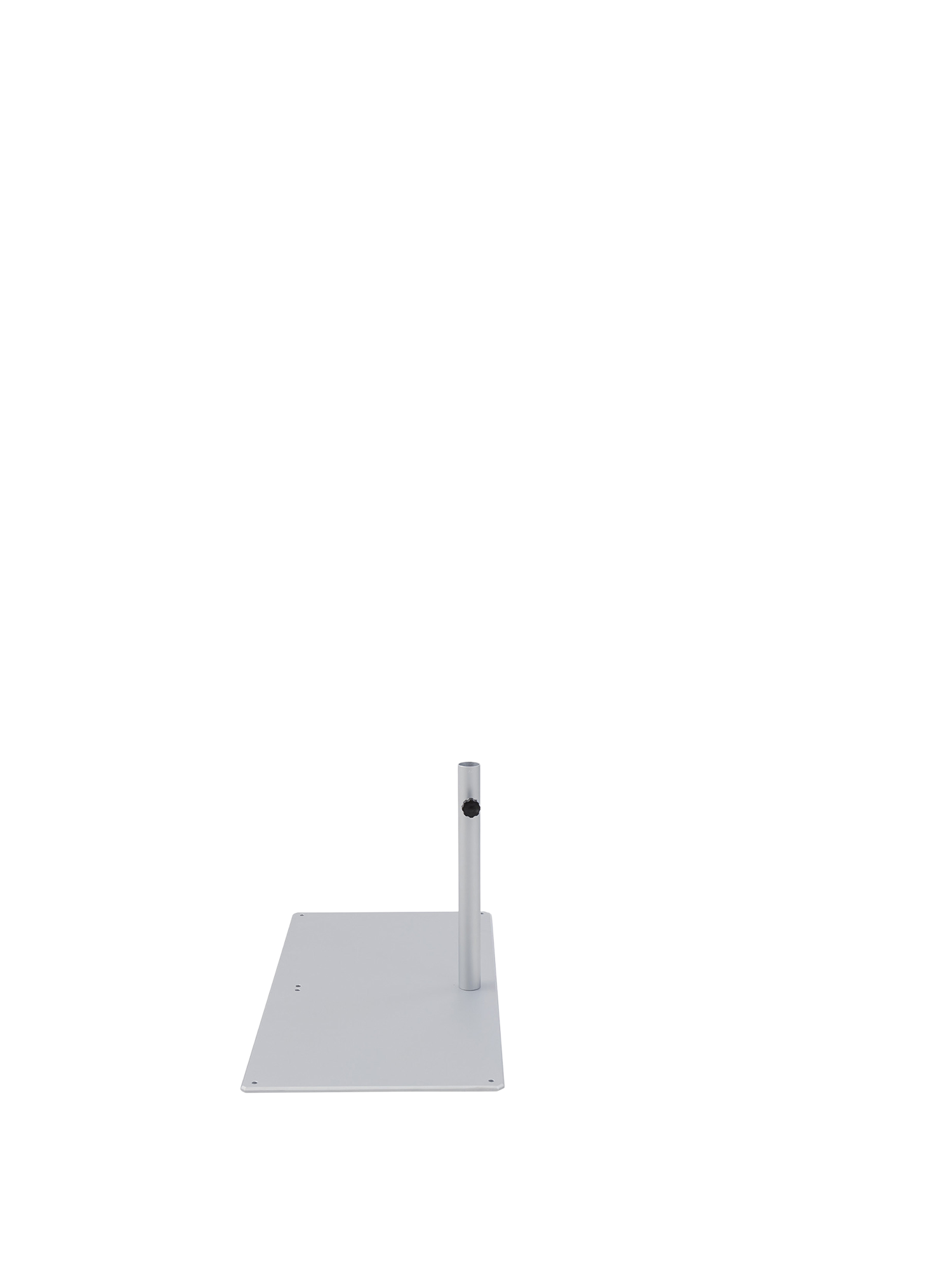 Abmessungen: Breite 100 x Tiefe 50 x Höhe (inklusive Schirmrohr) 50 cm. Stärke der Platte: 10 mm, Gewicht: 41 kg. Alle Schirmständer sind feuerverzinkt.