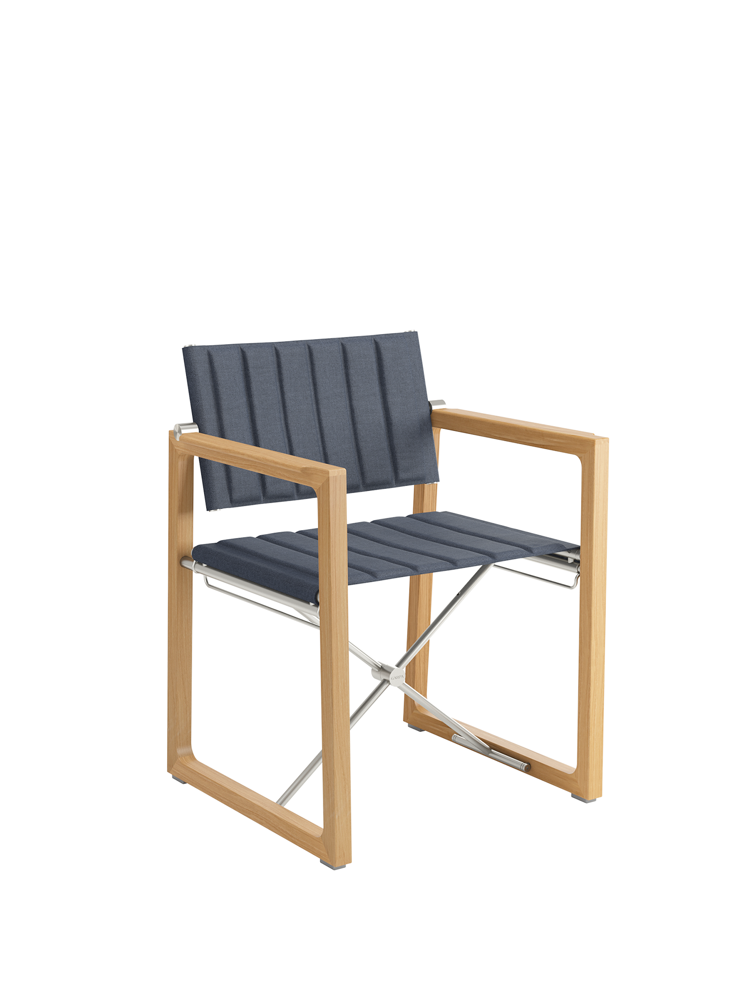 Die modernen Armlehnstühle verbreiten ein unbeschwertes Lebensgefühl. Geradlinige Teakholzwangen rahmen Sitz- und Rückenpolster; ein Edelstahlkreuz verbindet die puristische, dabei äußerst komfortable Konstruktion. Aus satiniertem Edelstahl sind auch die Gelenke, die die Rückenlehne in die bequemste Position bringen.