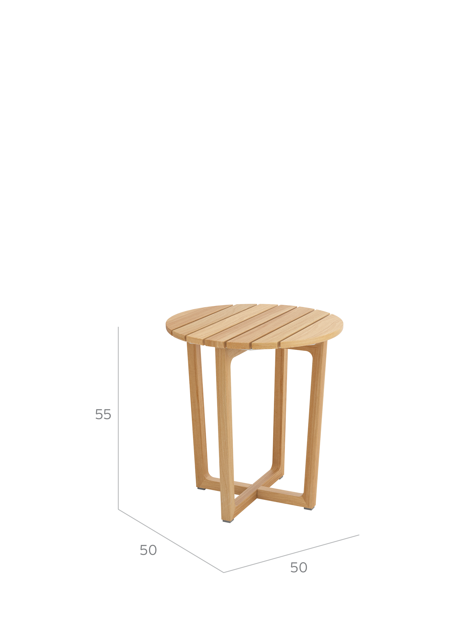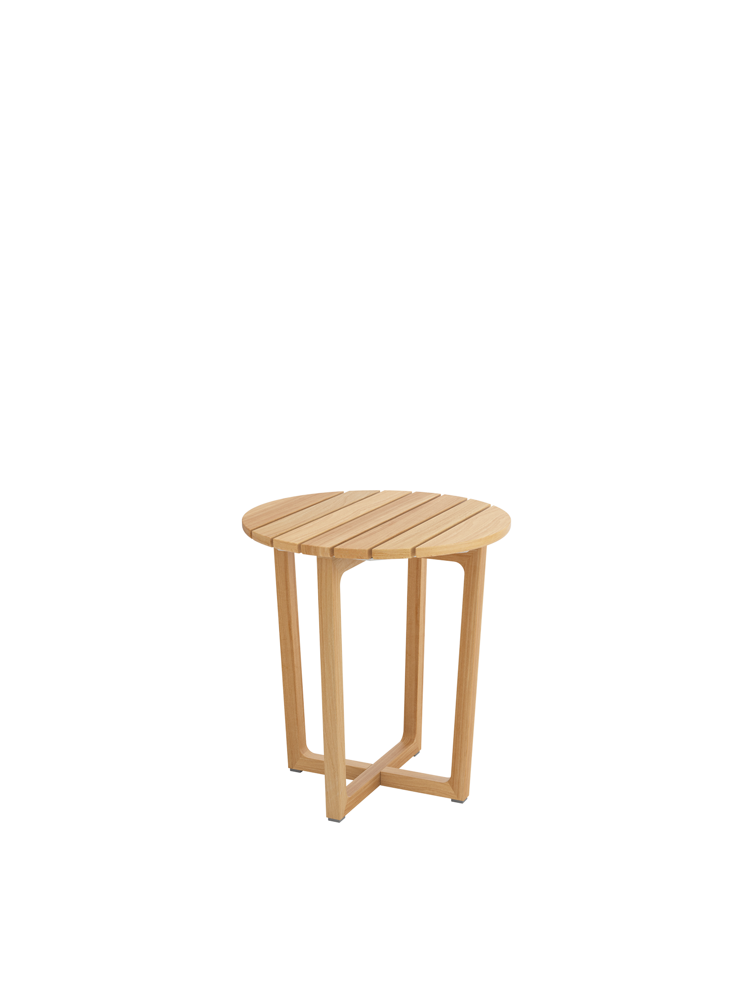 Teakholzwangen und eine an der Unterseite sanft gerundete Platte aus hochwertigen Teakleisten prägen das Design der Benton Beistelltische. Sie sind schnell dazugestellt und halten Snacks und Lektüre direkt neben der Sitzgruppe bereit.
