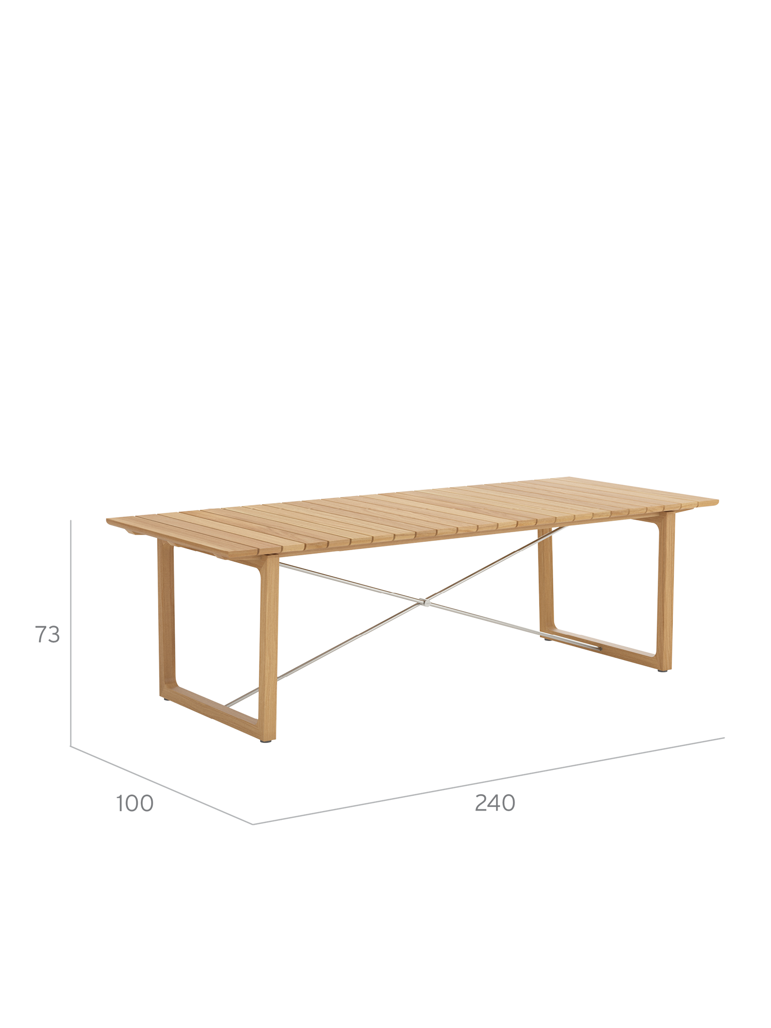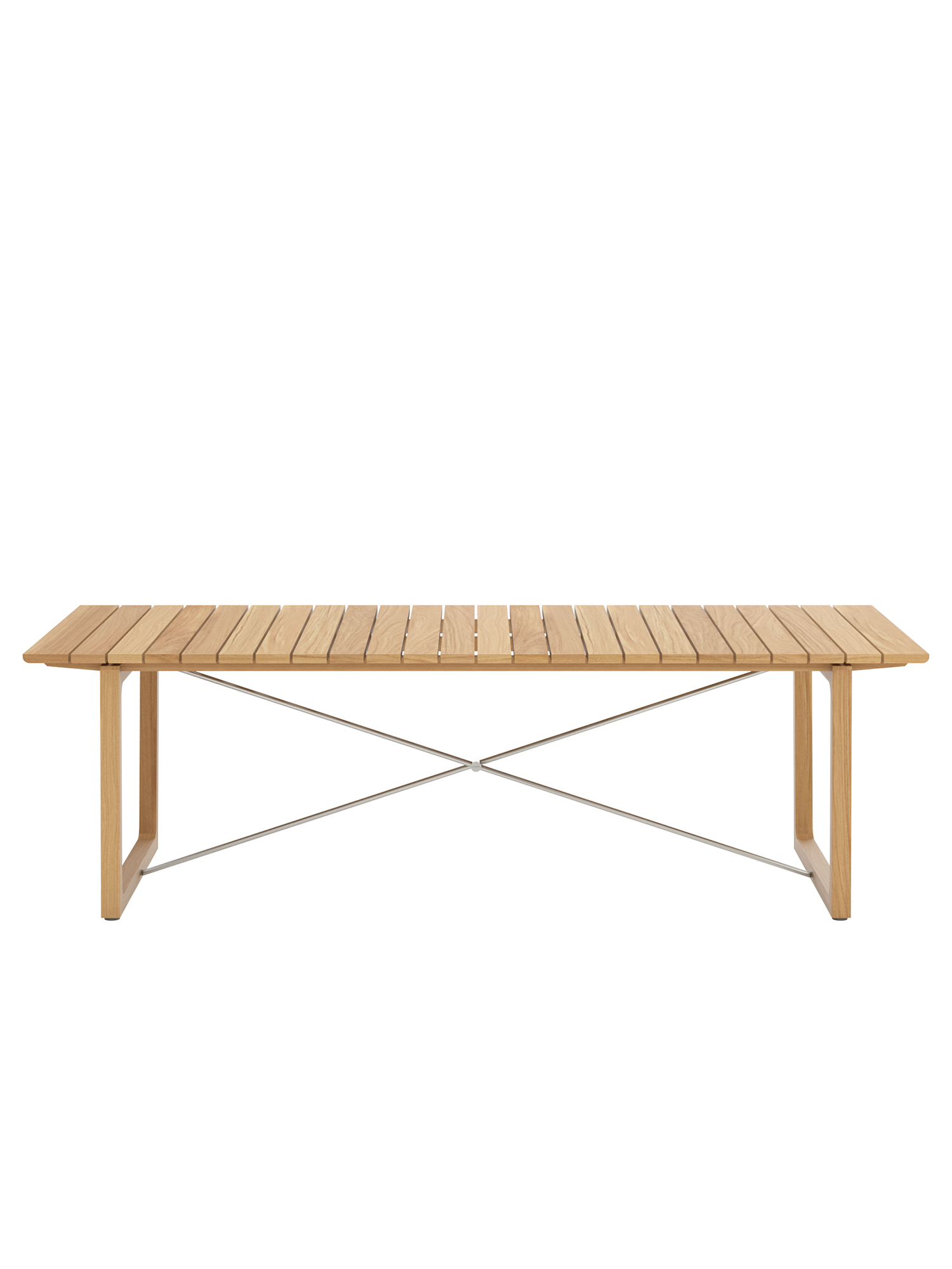 Teakholzwangen und Edelstahlkreuz prägen das Design der rechteckigen Benton Tische, deren Leisten an der Unterseite geschmeidig gerundet sind, was optisch und haptisch für einen angenehmen Effekt sorgt. Die eleganten Tische aus massivem und aufwendig verarbeitetem Plantagenteakholz sind in zwei verschiedenen Größen erhältlich.
