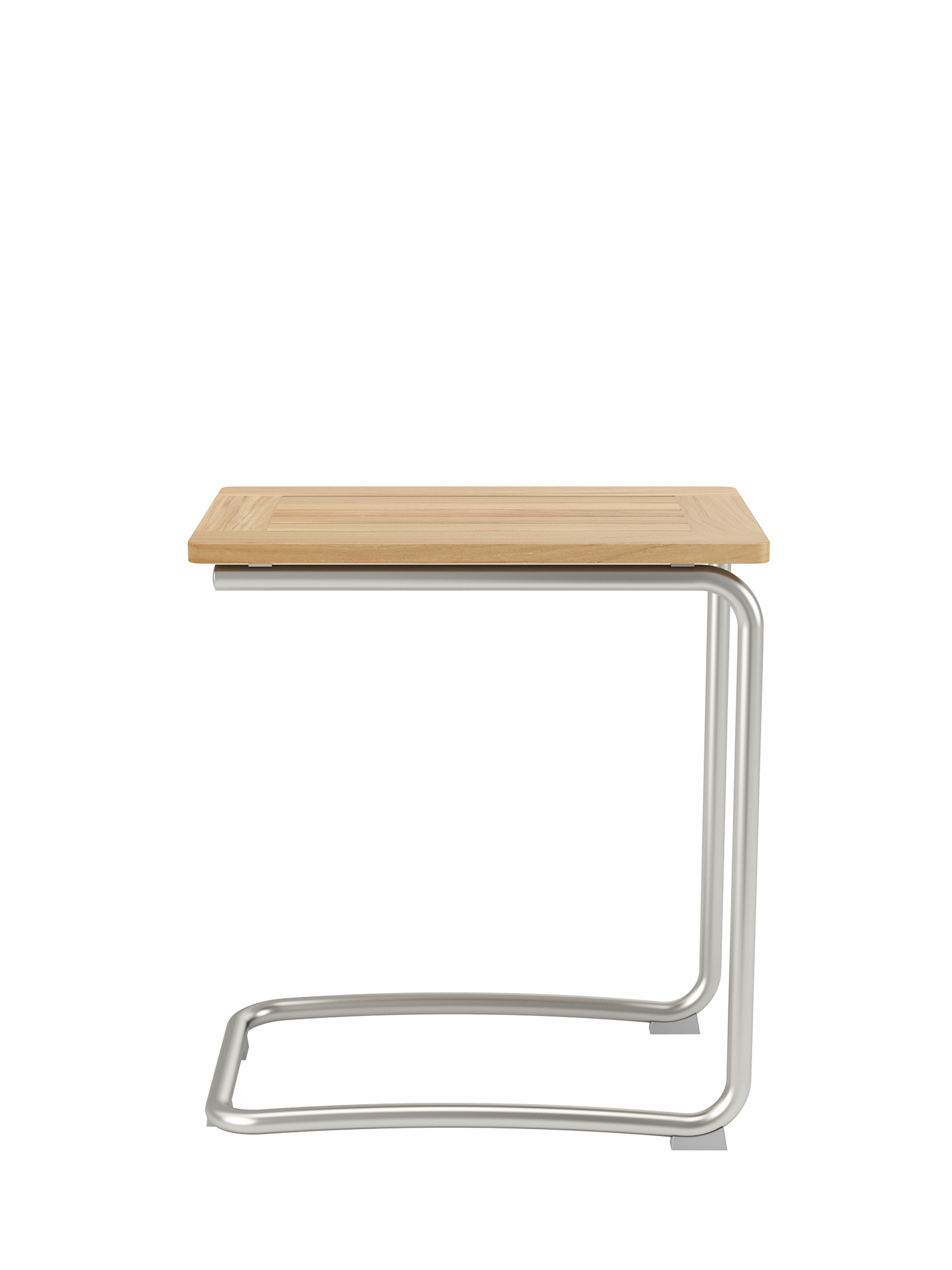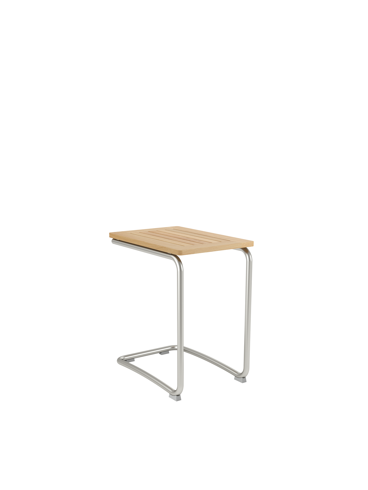 Nah herangerückt, ragt seine Tischplatte wie ein Tablett über Sitz- oder Liegefläche der Bolero Möbel: Die Oberfläche des praktischen Beistelltisches besteht aus Teak, das Rohrgestell aus satiniertem Edelstahl trotzt allen Wetterlaunen. Unter dem Gestell befinden sich auswechselbare Gleiter aus Kunststoff, die empfindliche Böden schützen.
