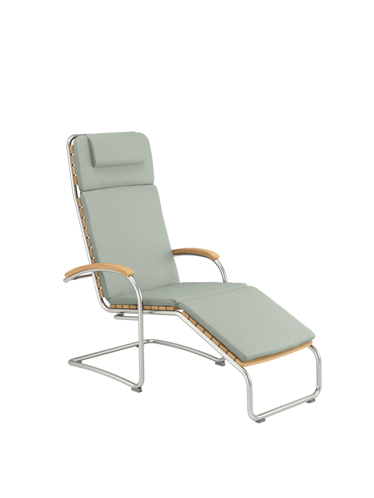 Aufrecht sitzen oder bequem zurücklehnen: Das leichte, wiegende Federn des Edelstahlgestells des Liegesessels entlastet den Rücken und wirkt sehr entspannend. Durch einfache Gewichtsverlagerung gleitet man sanft von der Sitz- in die Liegeposition. Unter dem Gestell befinden sich auswechselbare Gleiter aus Kunststoff, die empfindliche Böden schützen.