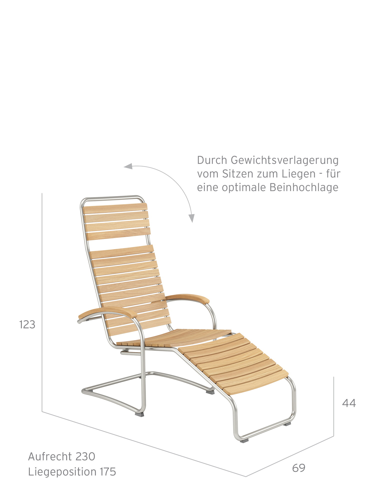 - Liegefläche und Armlehnen aus Plantagenteak