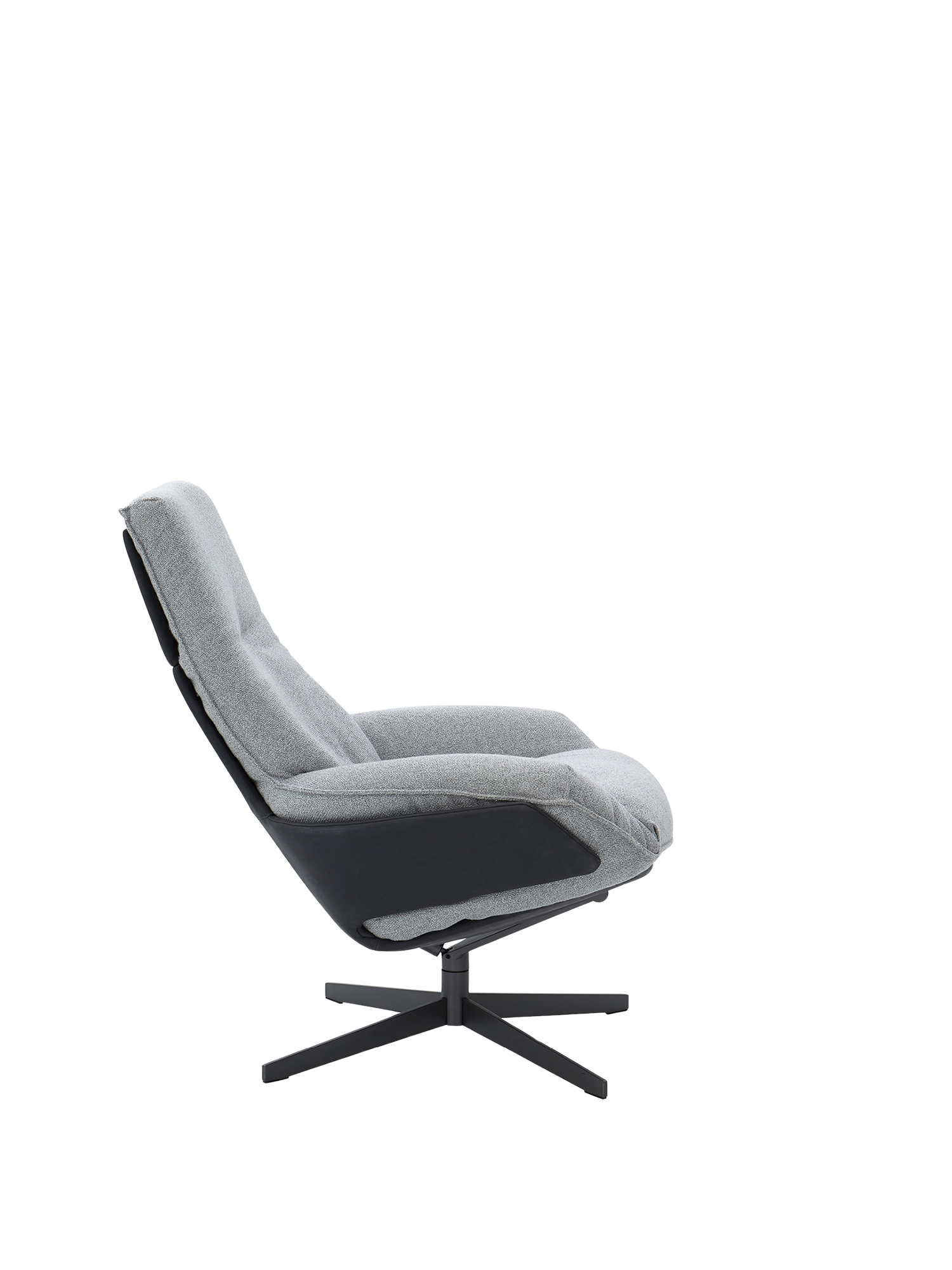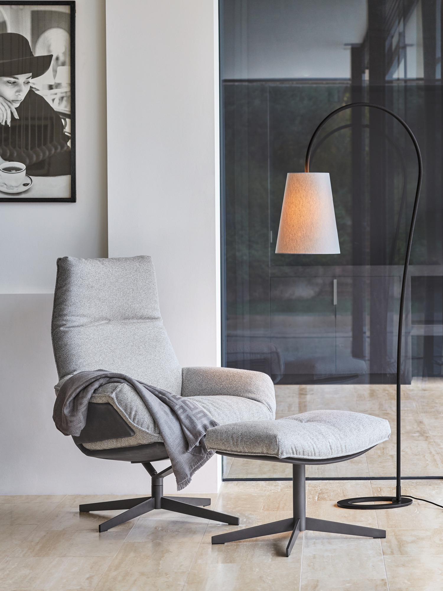 Die markante Sitzschale des Bolton Sessels besteht aus Nubukleder und zeichnet sich durch eine samtige Haptik aus. Für festen Stand sorgt ein metallener Viersternfuß. Die Möglichkeiten, die ideale Sitzposition zu finden, sind dank der stufenlosen Verstellmechanik nahezu unendlich. Der Hebel der Mechanik, die über eine Gasdruckfeder gesteuert wird, ist dezent verdeckt. Als Fußauflage empfehlen wir den separat erhältlichen Bolton Hocker im gleichen Farbton.