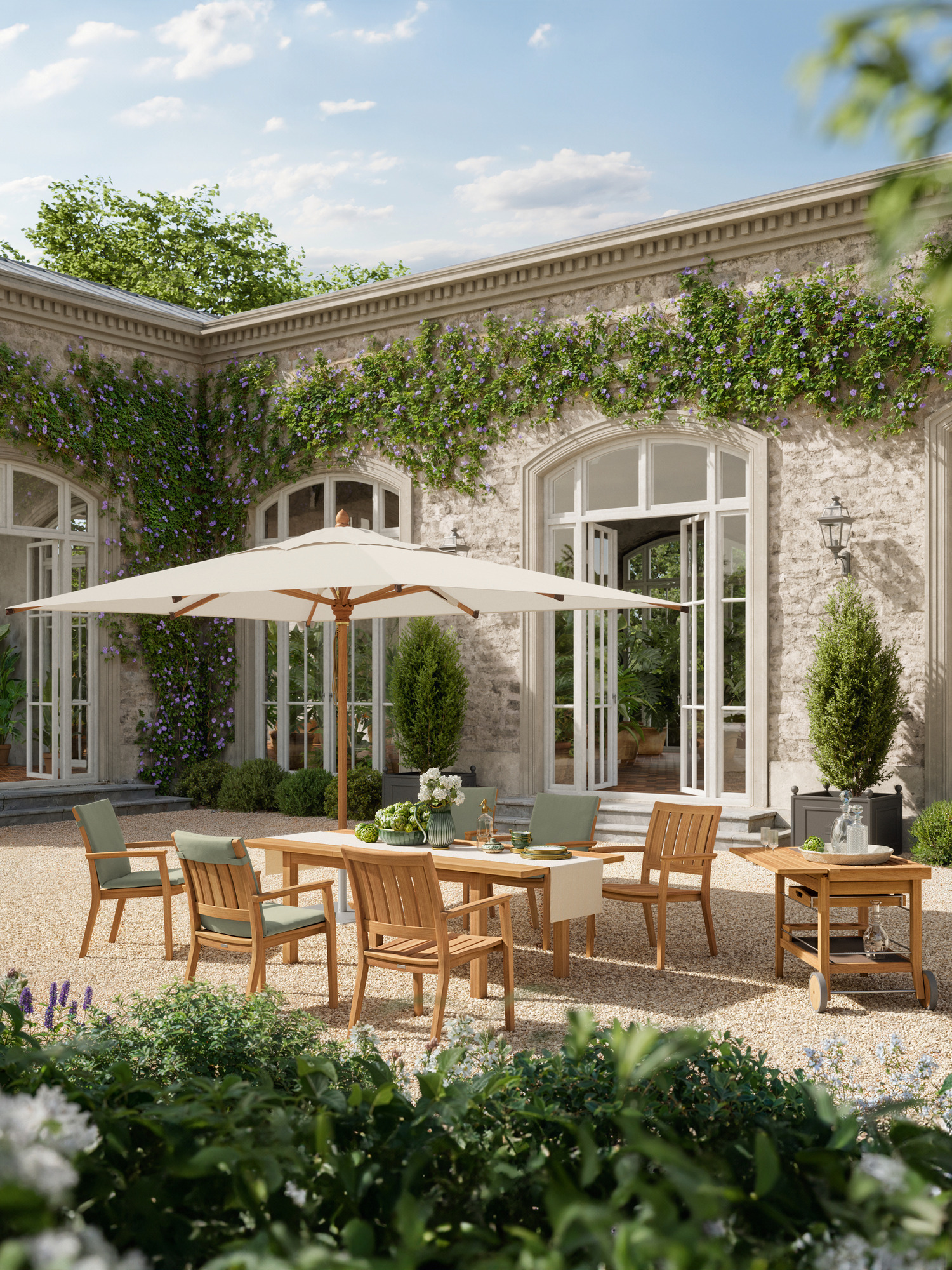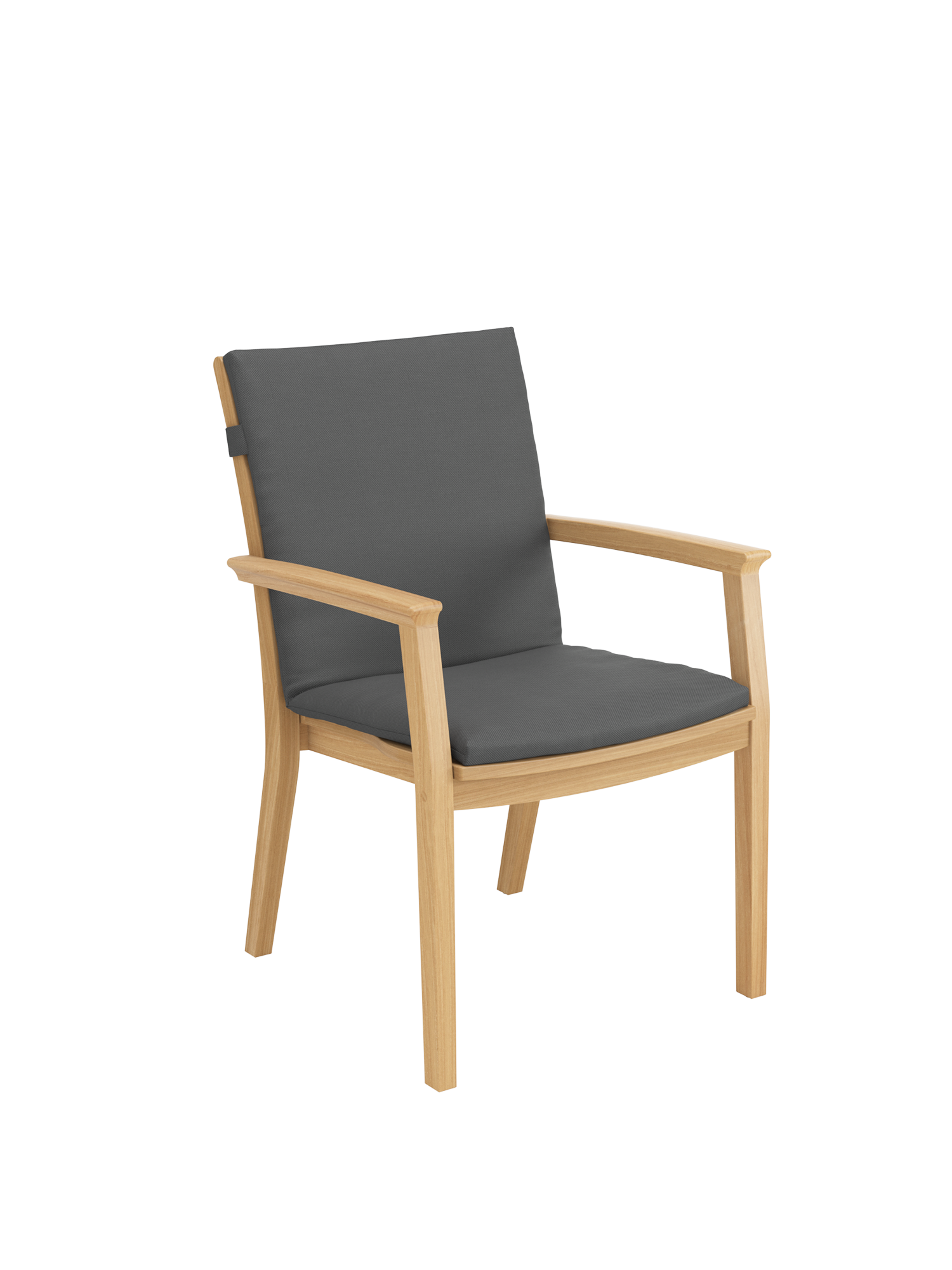 Der Brighton Armlehnstuhl interpretiert klassisches Teakdesign modern und empfiehlt sich für zeitlose Kombinationen unter freiem Himmel.