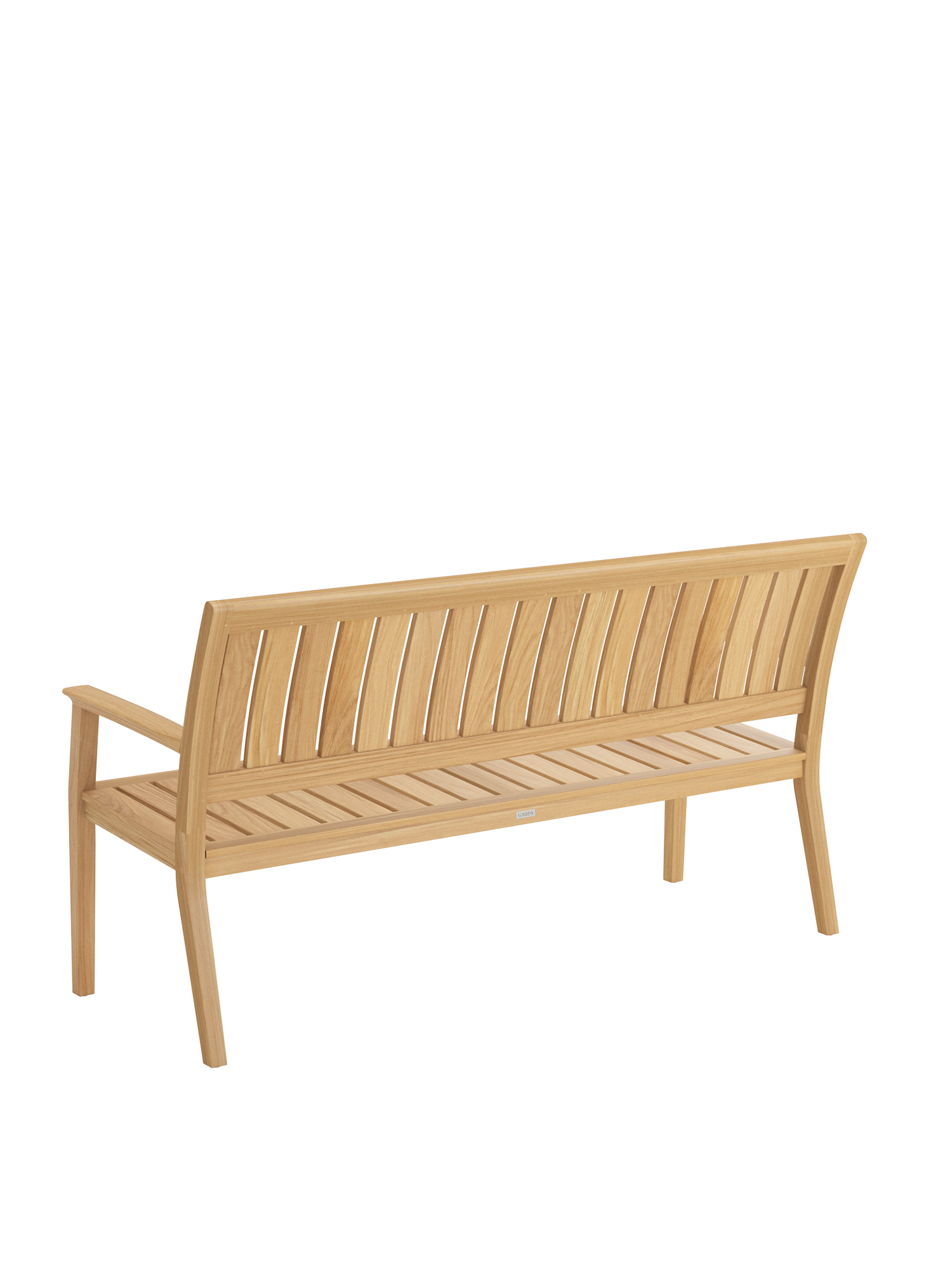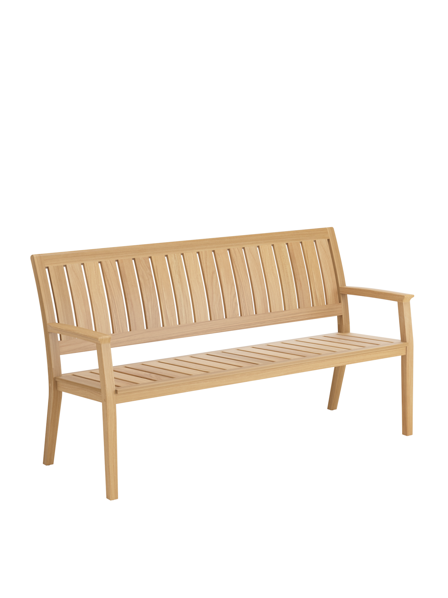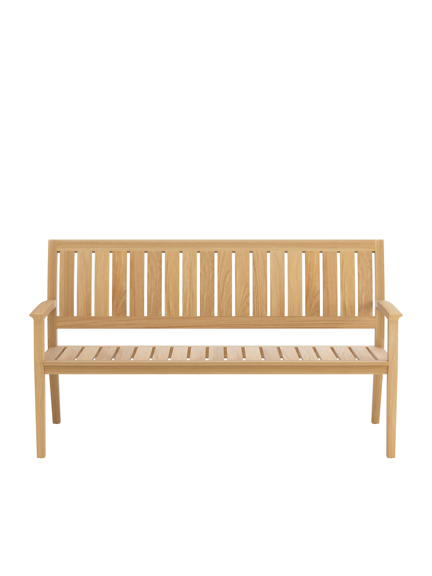 Der ergonomisch modellierte Solitär ist wie geschaffen für einen Stammplatz im Garten oder vor dem Haus. Drei Personen können sich bequem zurücklehnen. Die Bank passt aber auch an die Längsseite eines Esstisches – insbesondere an die Square Modelle – und harmoniert perfekt mit den Armlehnstühlen der Brighton Kollektion.