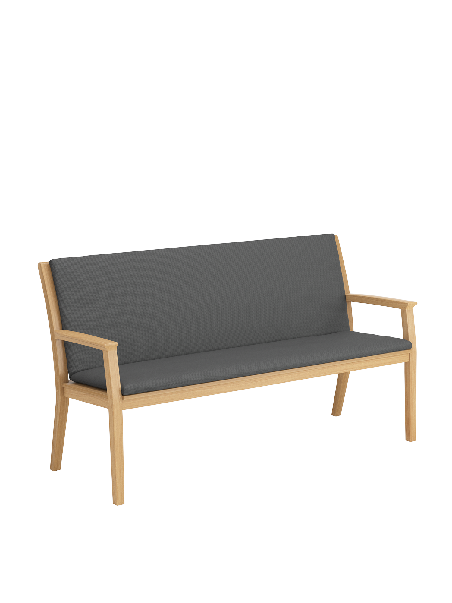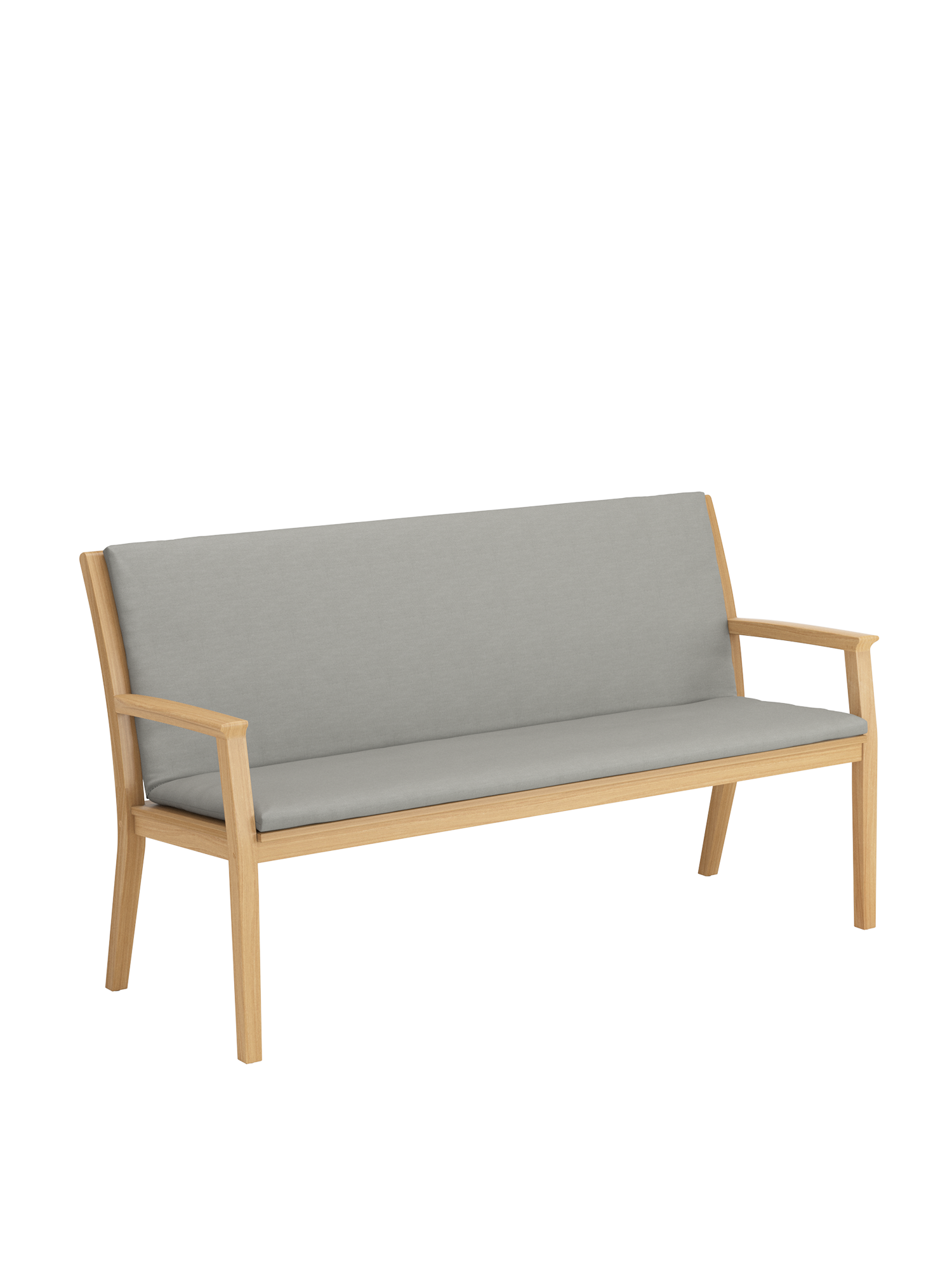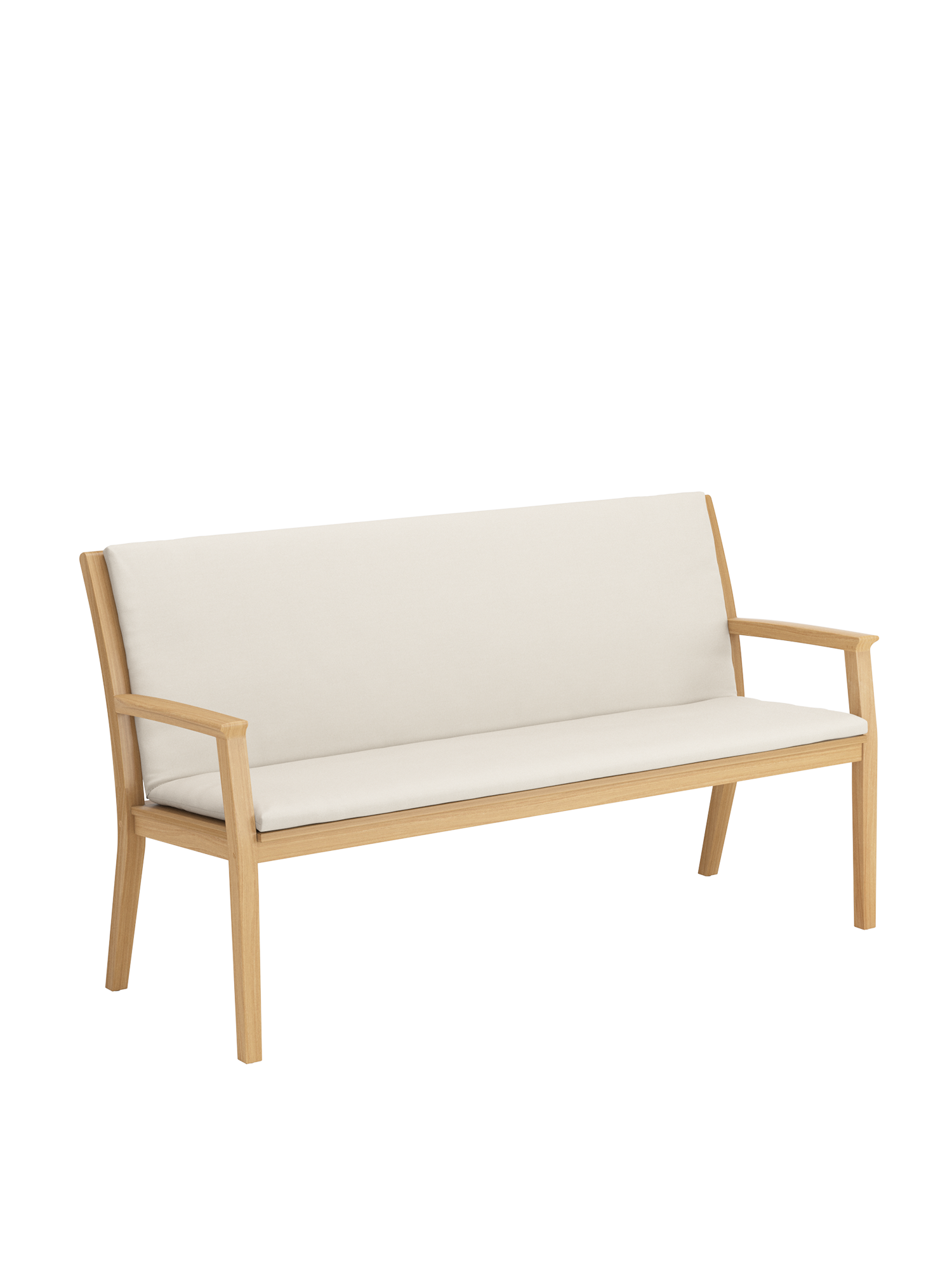 Der ergonomisch modellierte Solitär ist wie geschaffen für einen Stammplatz im Garten oder vor dem Haus. Drei Personen können sich bequem zurücklehnen. Die Bank passt aber auch an die Längsseite eines Esstisches – insbesondere an die Square Modelle – und harmoniert perfekt mit den Armlehnstühlen der Brighton Kollektion.