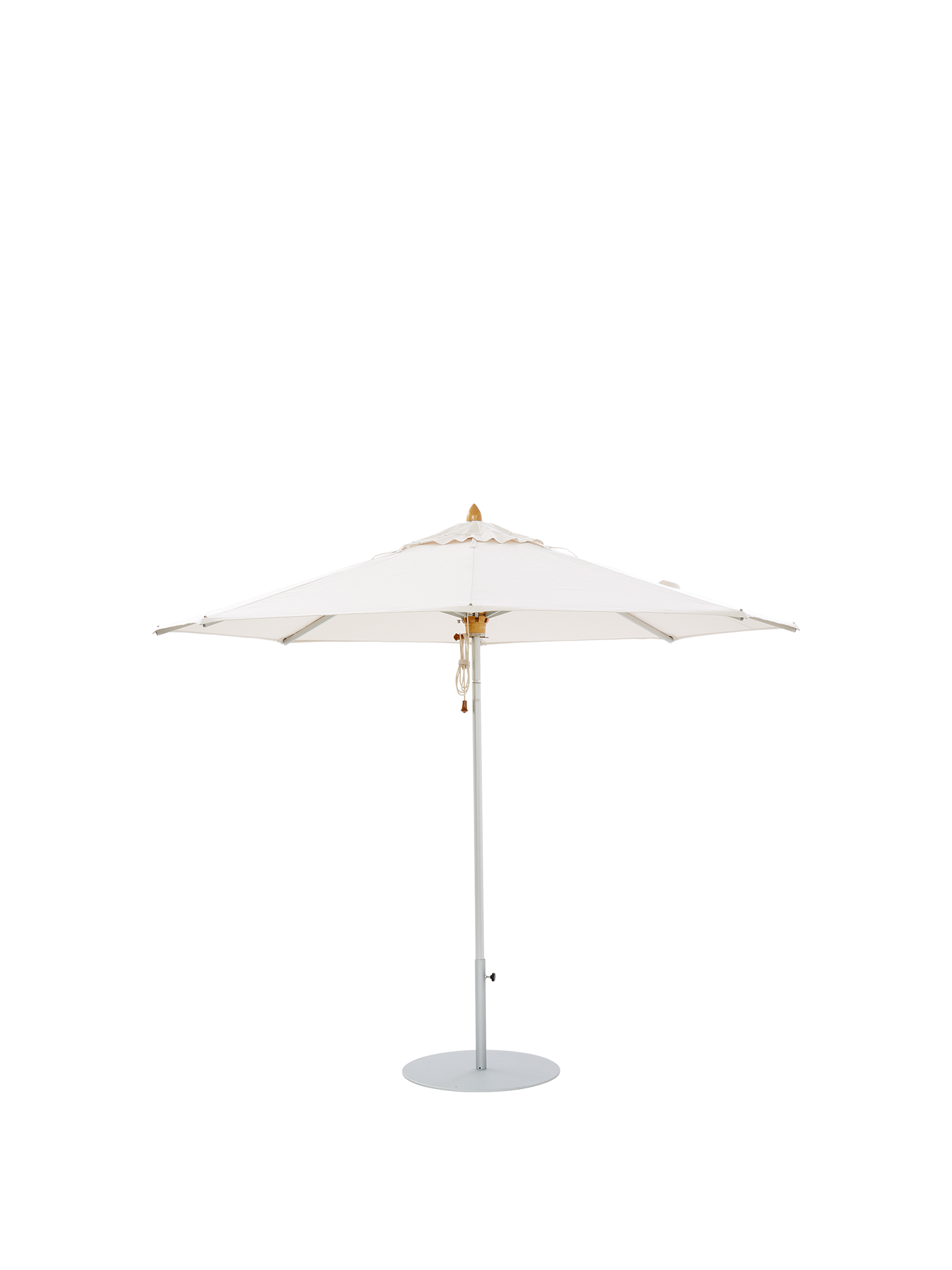 Der runde Schirm hat einen Durchmesser von 2,80 m und eignet sich besonders für kleine Sitzgruppen. Die Kombination aus eloxierten Aluminiumprofilen und einer Mastspitze aus Holz passt sowohl zu klassischen als auch zu modernen Kollektionen. Dank des Flaschenzuges lässt sich Campania leicht öffnen. Eine Schutzhülle aus Polyacrylstoff gehört immer zum Lieferumfang. Der runde Schirmständer sorgt für festen Stand.