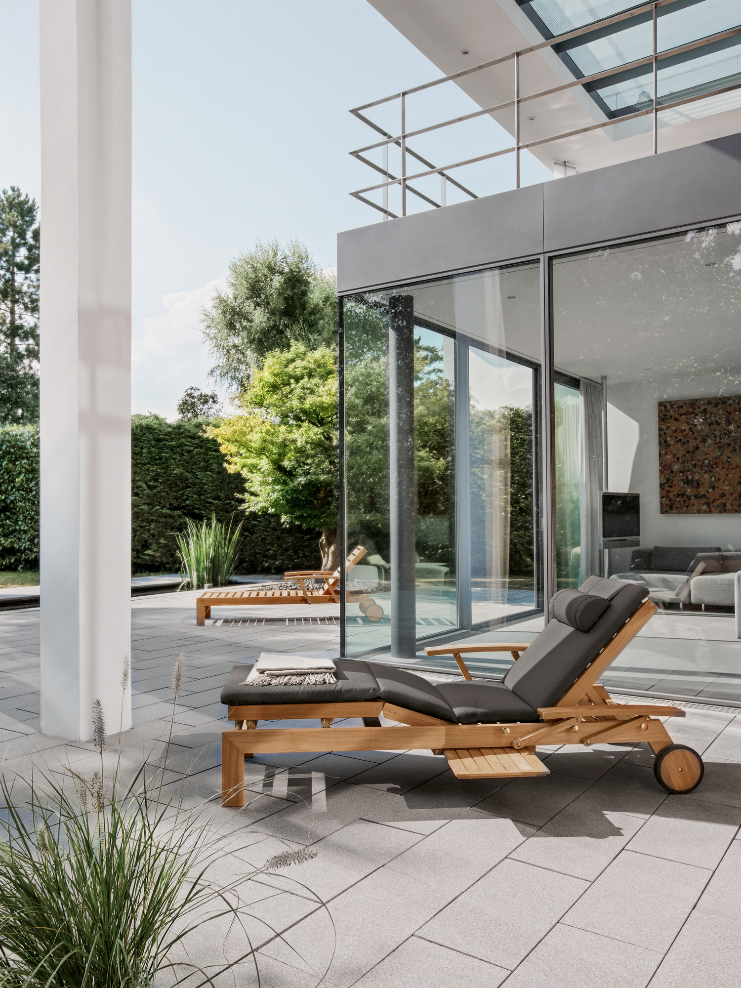 Cap Ferrat bietet Behaglichkeit in jeder Lage. Die Rückenlehne der Liege lässt sich vierfach verstellen, zum Sonnenbaden auch in eine ganz flache Position. Die breiten Armlehnen können zum leichteren Ein- und Ausstieg einfach aus dem Weg geschwenkt werden.
