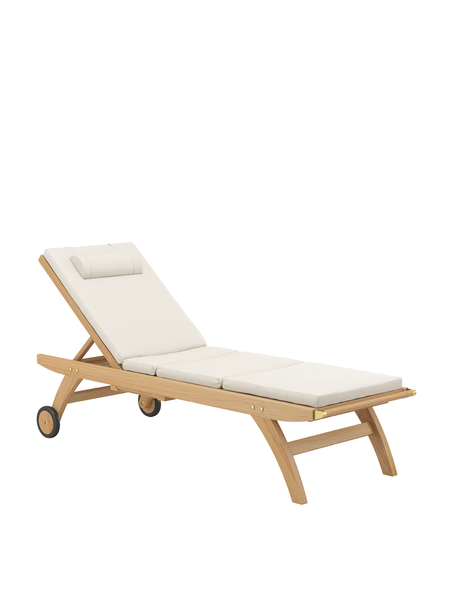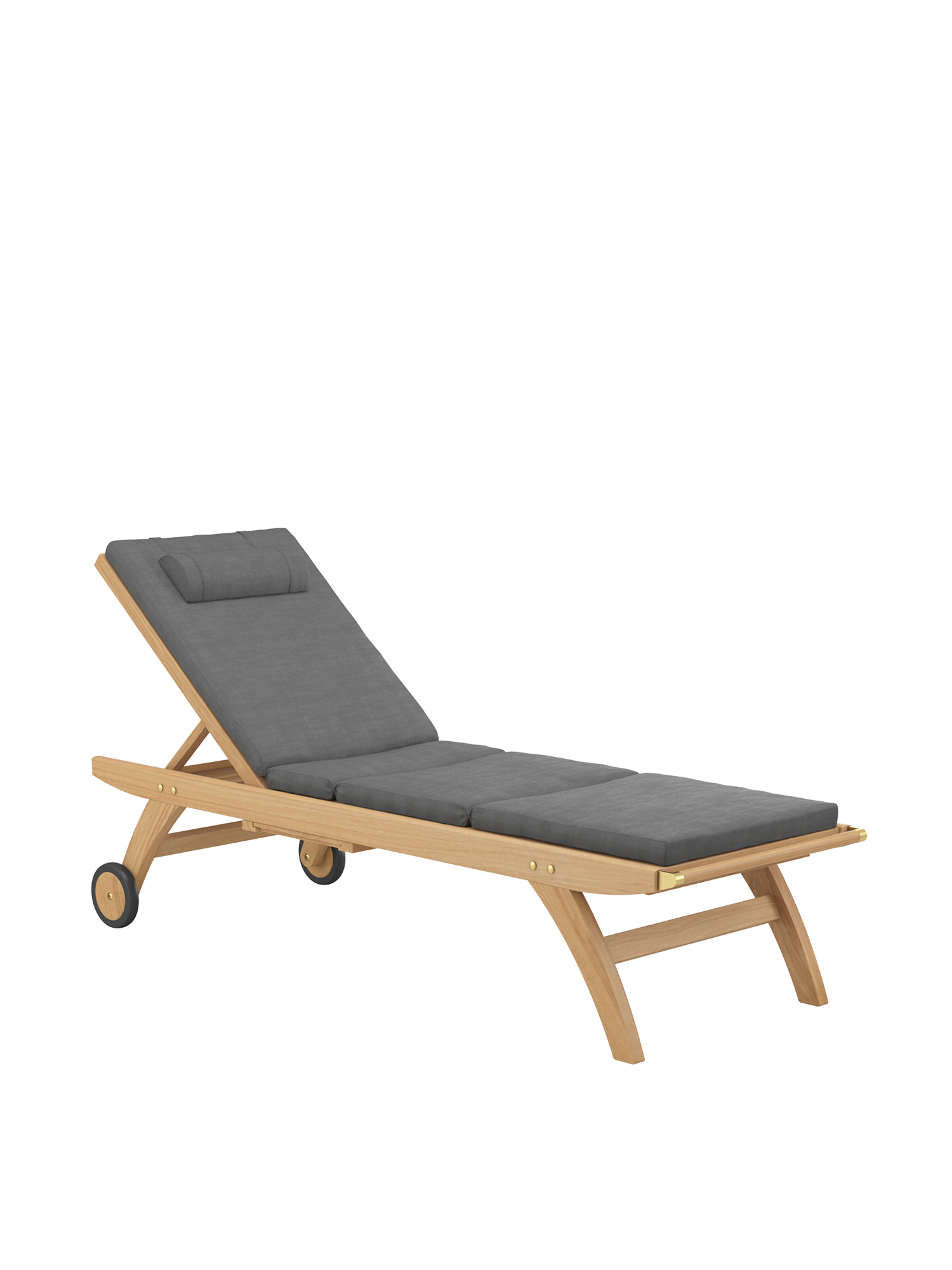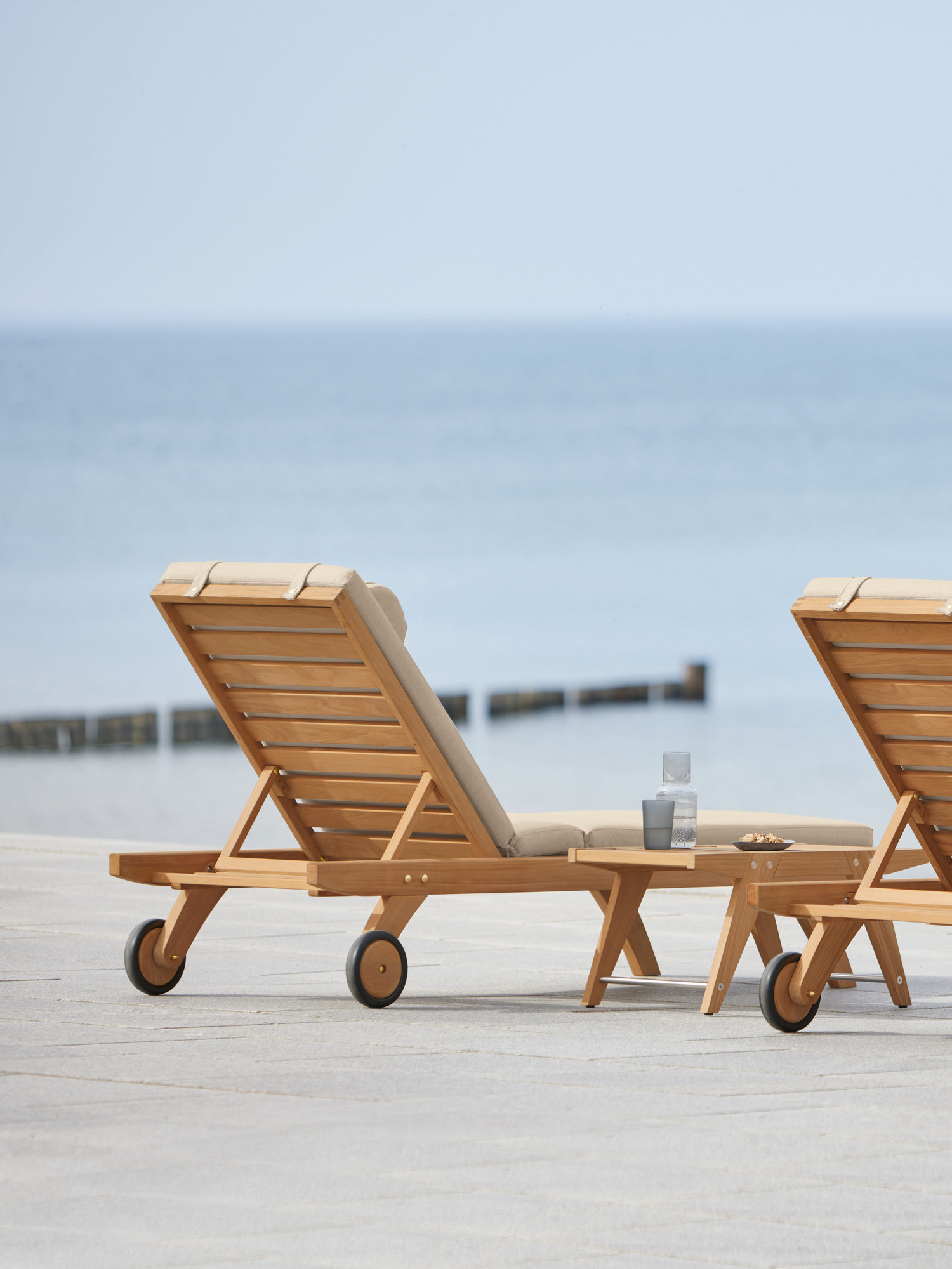 Die Rückenlehne der Liege lässt sich vierfach verstellen, zum Sonnenbaden auch in eine ganz flache Position.