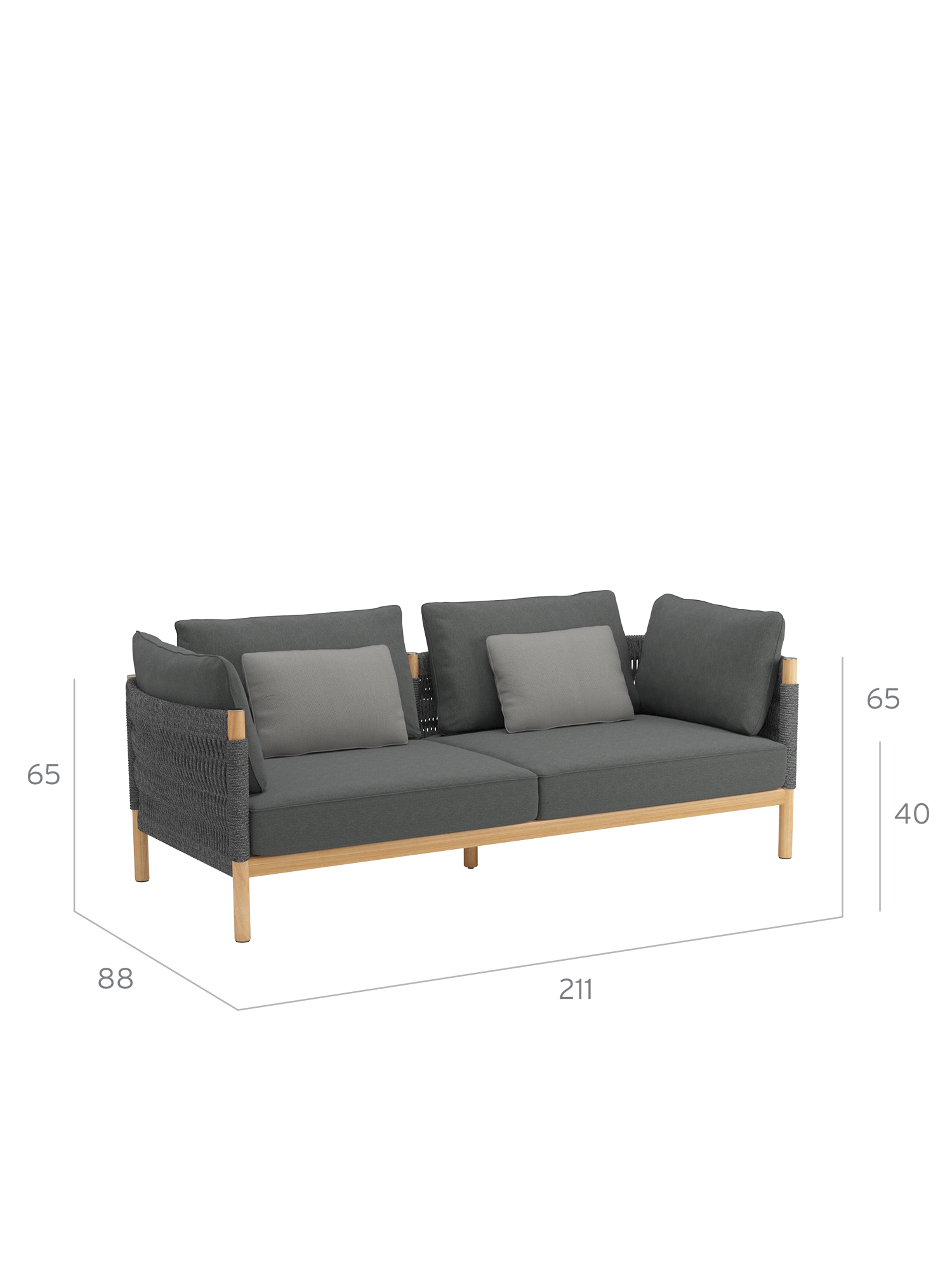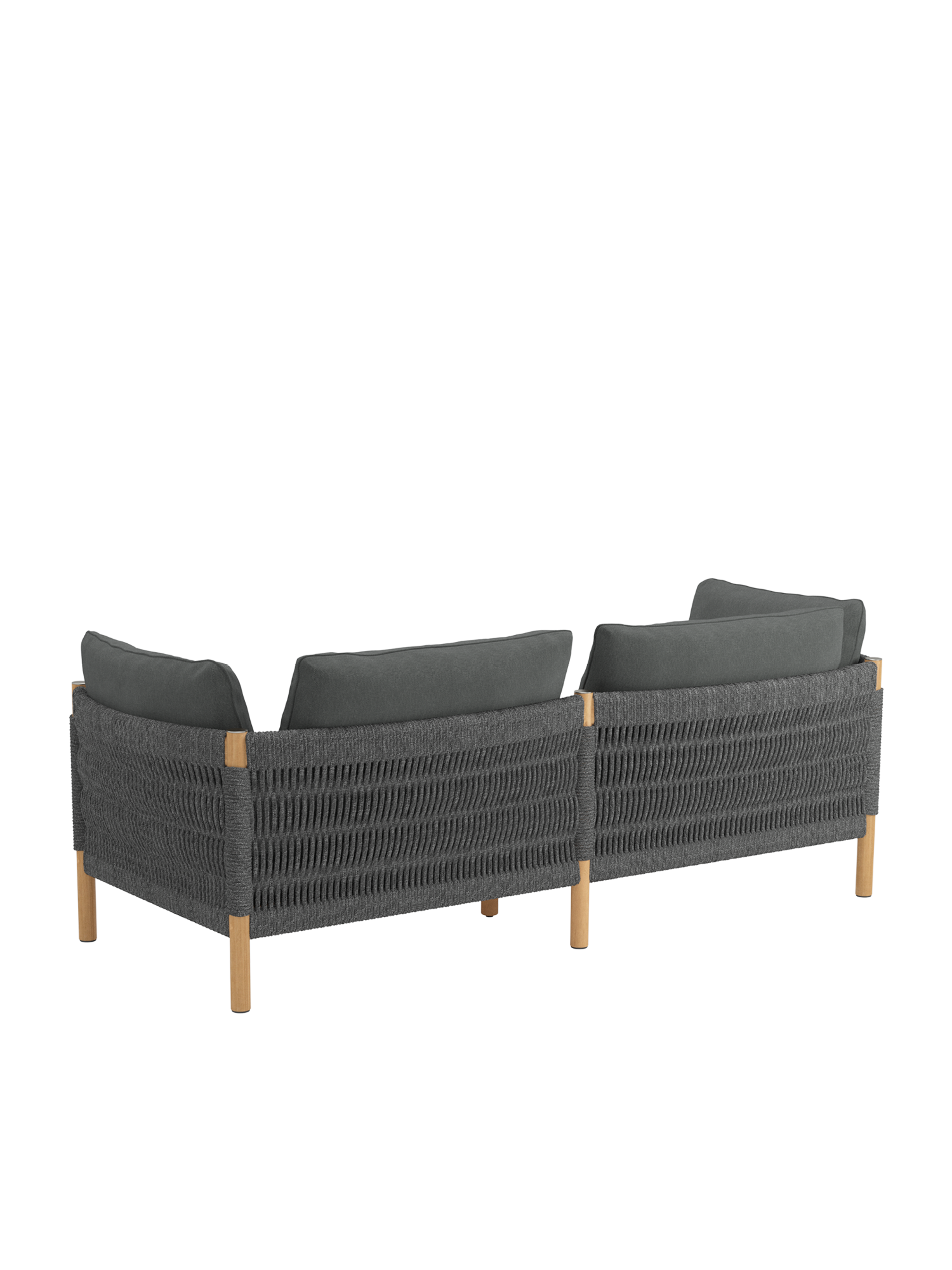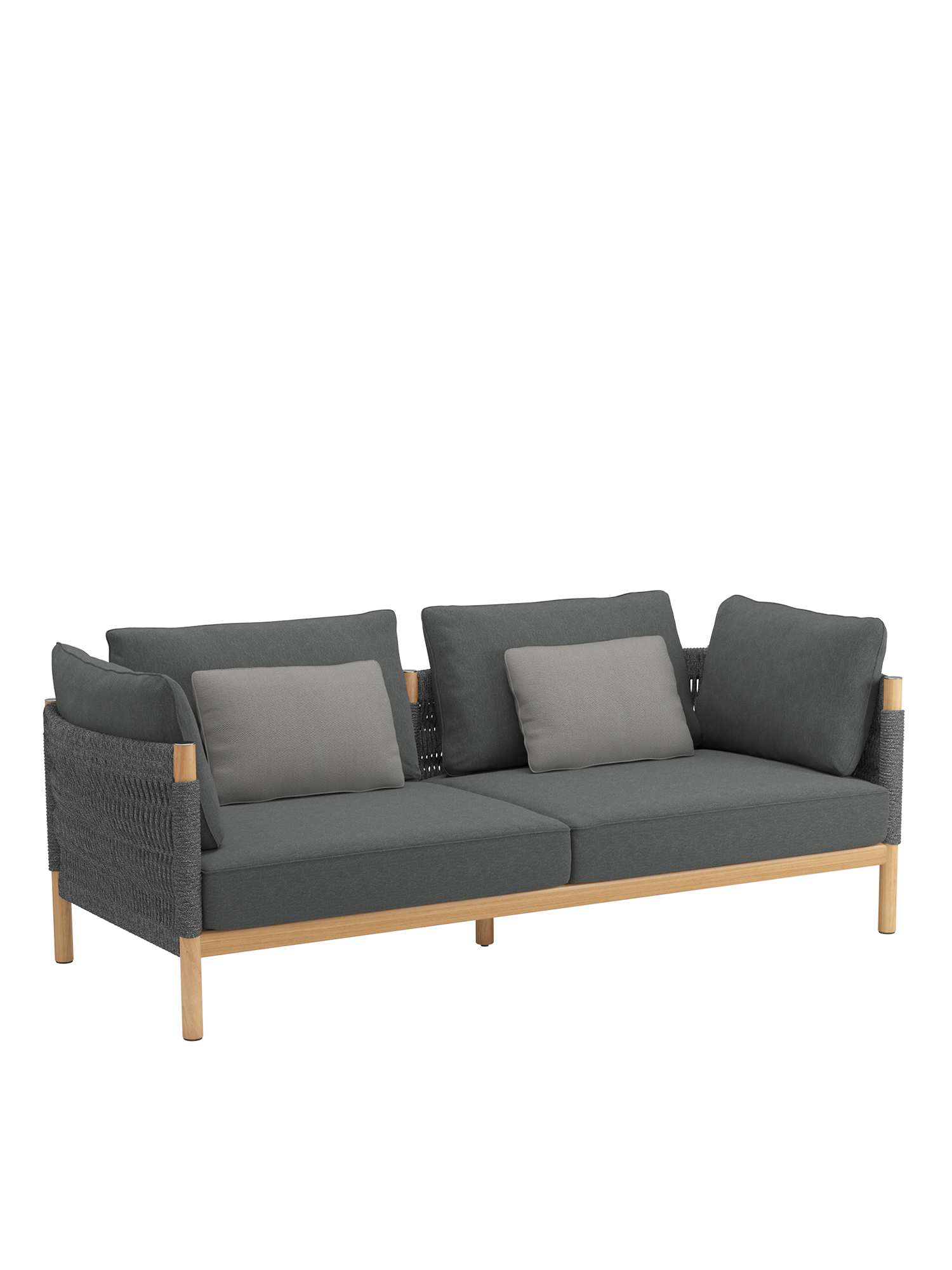 Teakholz übernimmt den klassischen Part in fein gedrechselter Gestalt. Matt gebürstete Edelstahlkappen setzen dazu schlichte Akzente. Eine wetterfeste Kordel in edlem Anthrazit oder Beige, die von Hand zu einem so markanten wie anschmiegsamen Geflecht verarbeitet wird, schafft innovative Eleganz. Das hochwertige Material besteht aus Polypropylen mit einem Polyesterkern.