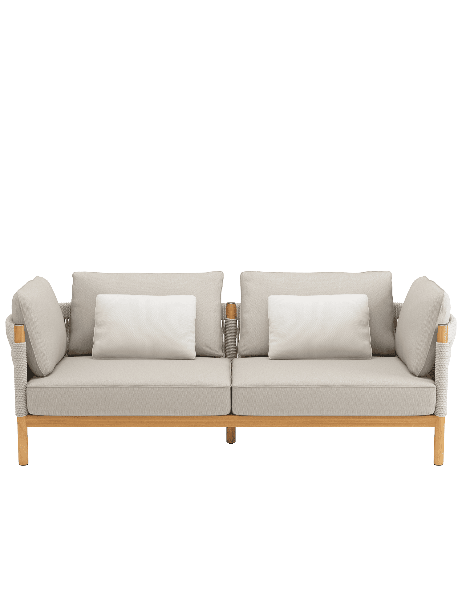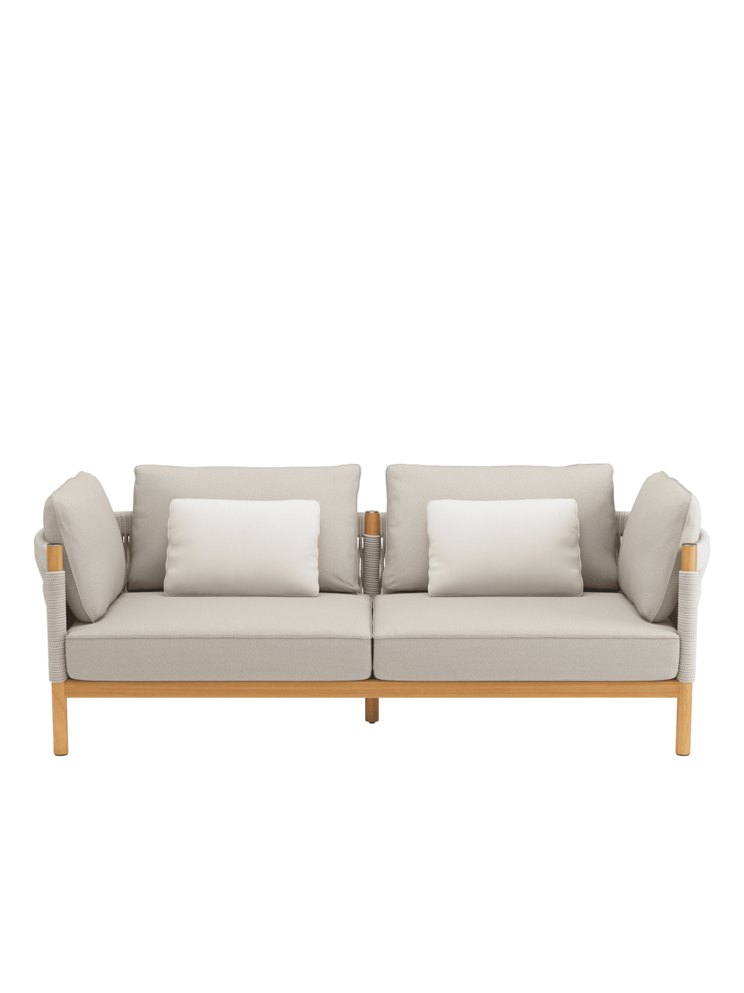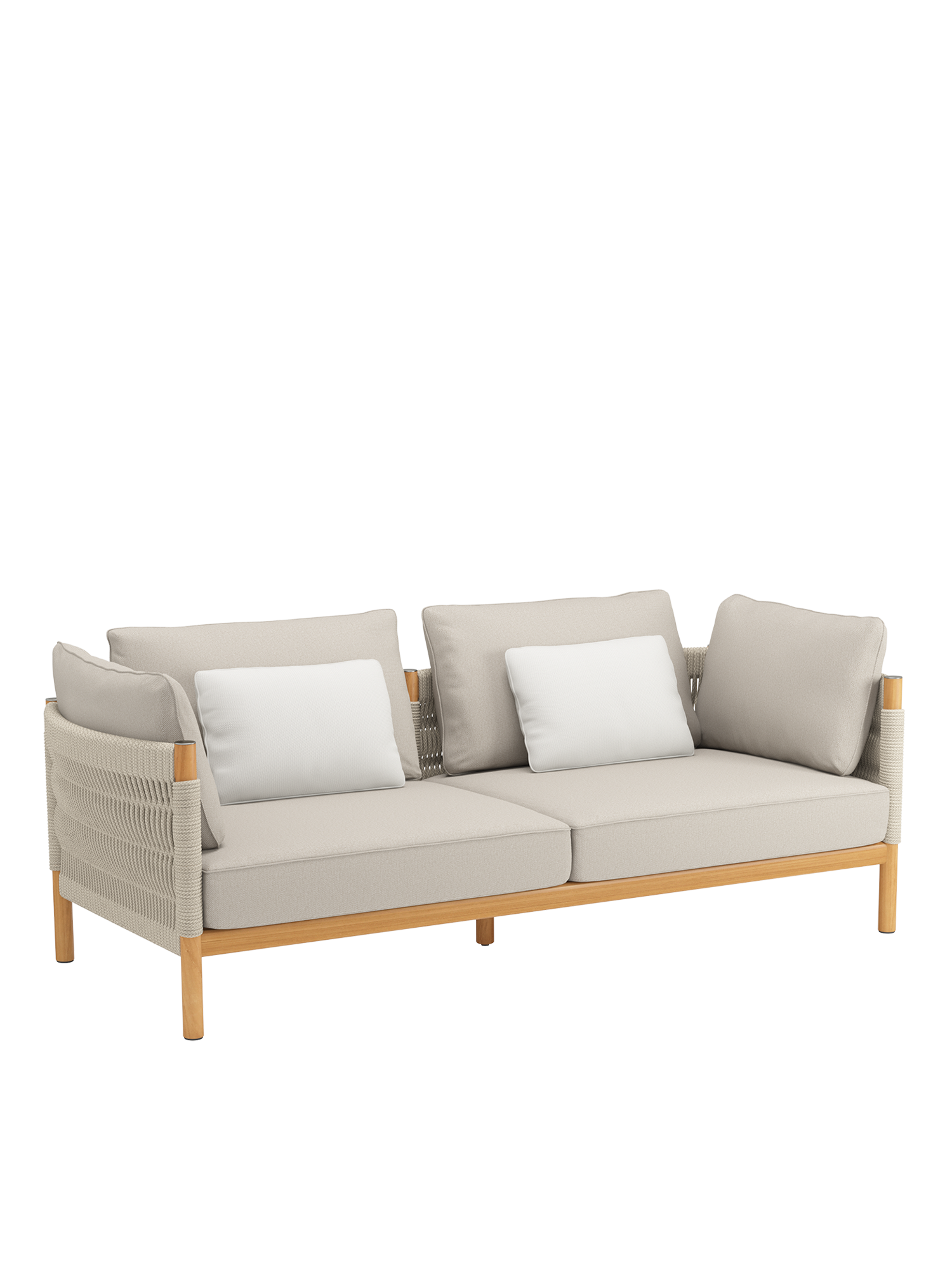Einladend weiche Polster vollenden den Komfort der Möbel. Zum Lieferumfang des großzügigen Sofas der Serie gehören zwei Zusatzkissen im Dessin "Woven Sand" im Format 50 x 35 cm. Optional erhältliche Zierkissen im Format 50 x 45 cm finden Sie unter "Zubehör" weiter unten auf dieser Seite.