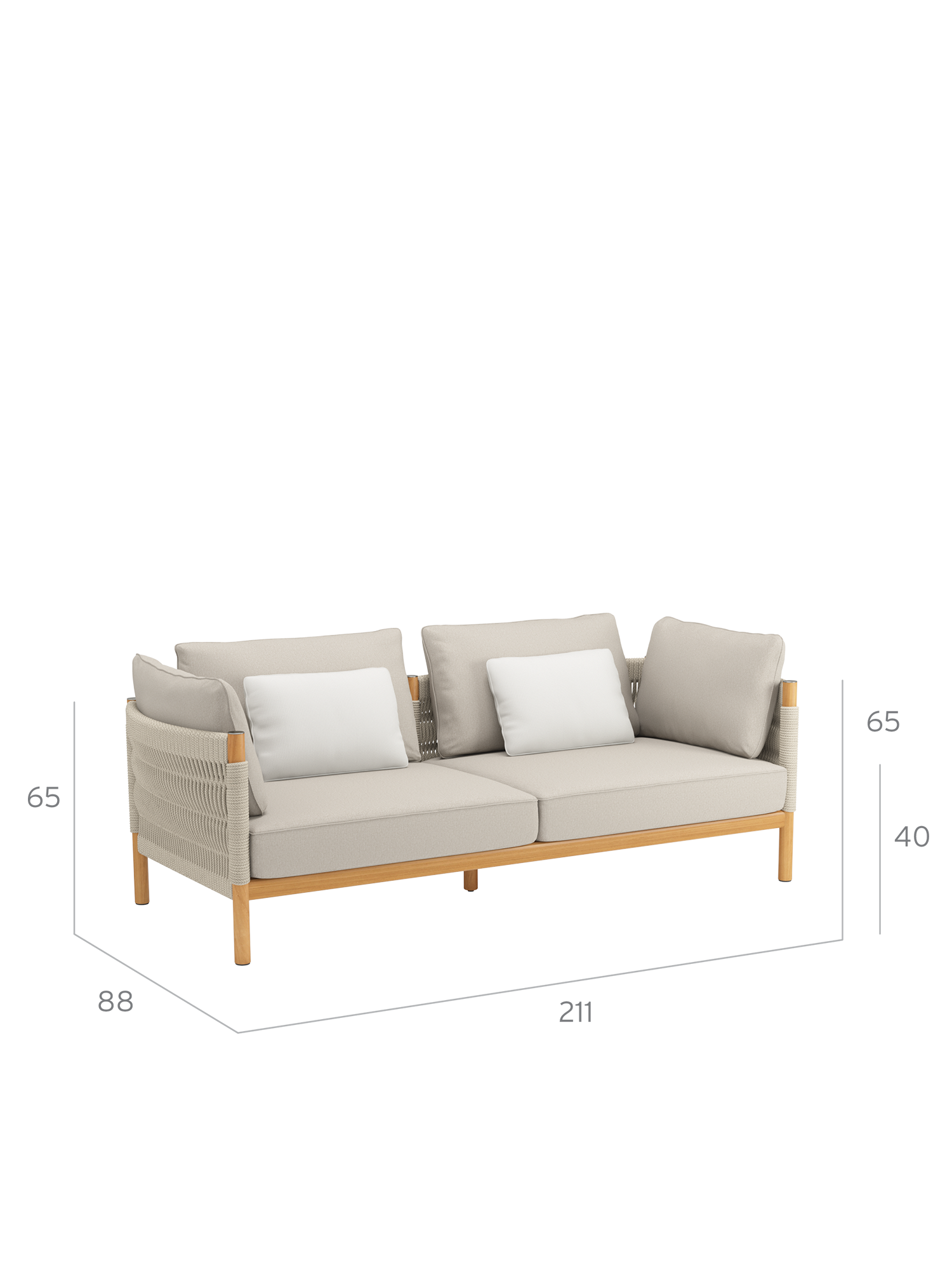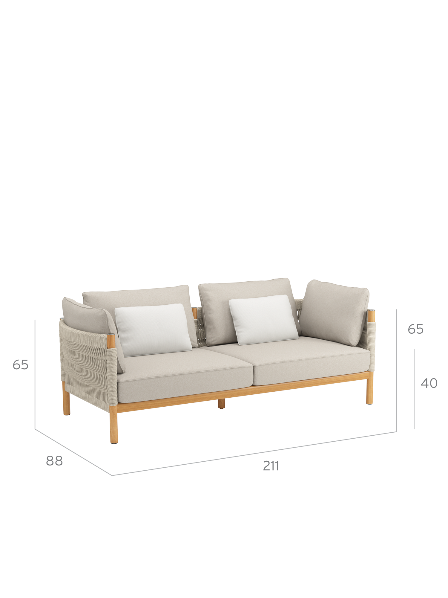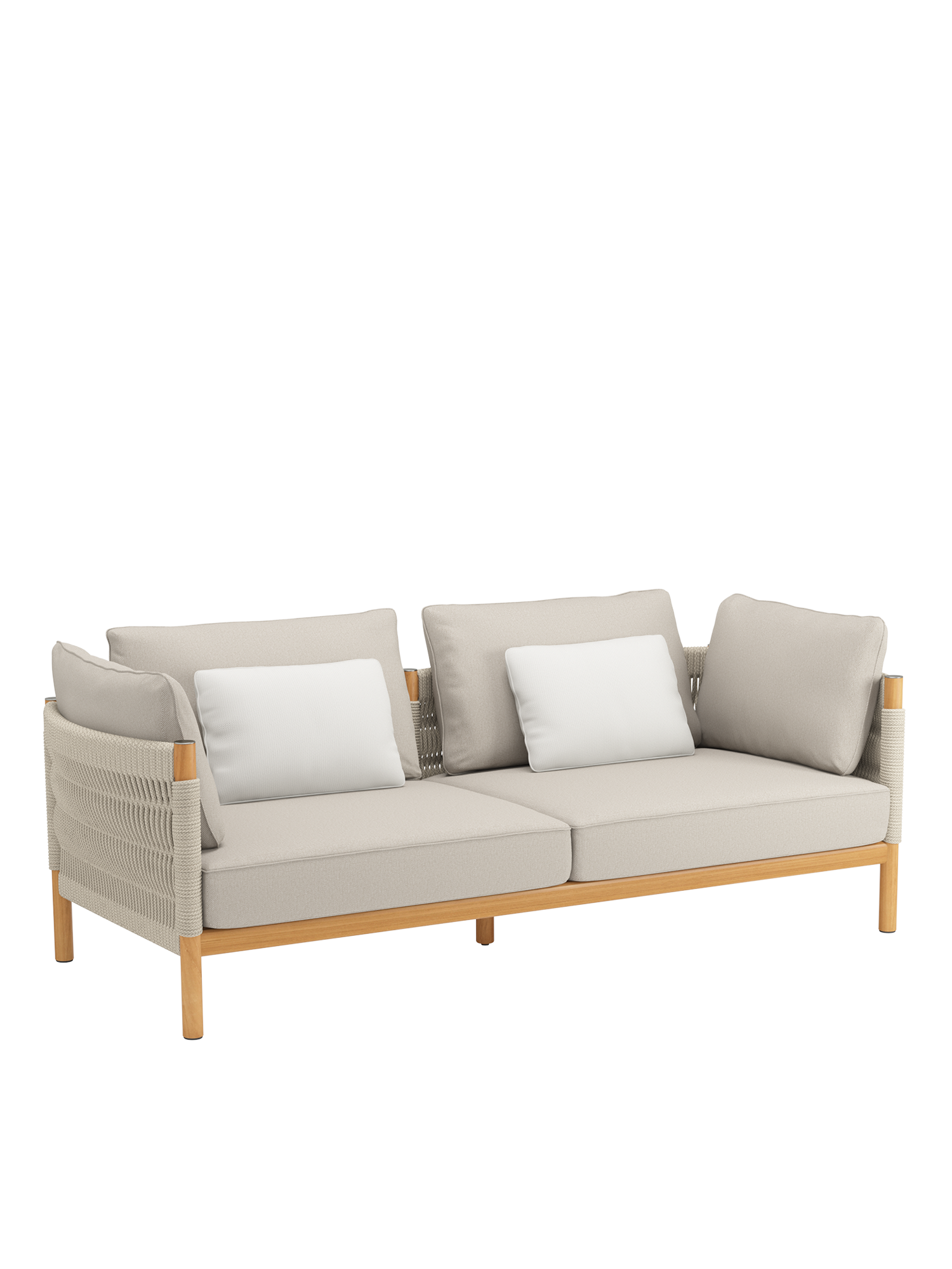 Einladend weiche Polster vollenden den Komfort der Möbel. Zum Lieferumfang des großzügigen Sofas der Serie gehören zwei Zusatzkissen im Dessin "Woven Sand" im Format 50 x 35 cm. Optional erhältliche Zierkissen im Format 50 x 45 cm finden Sie unter "Zubehör" weiter unten auf dieser Seite.