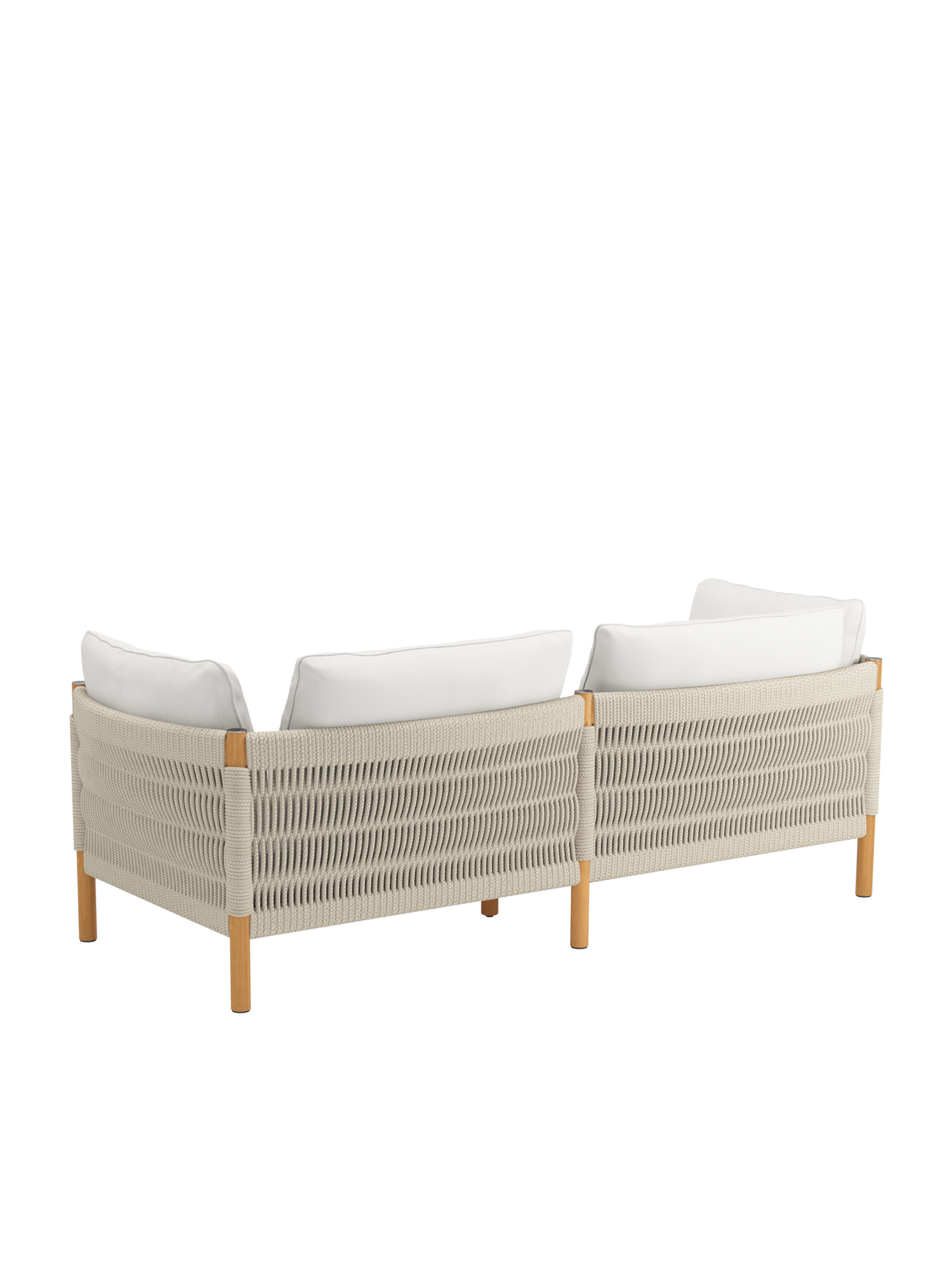 Einladend weiche Polster vollenden den Komfort der Möbel. Zum Lieferumfang des großzügigen Sofas der Serie gehören zwei Zusatzkissen im Dessin "Woven Sand" im Format 50 x 35 cm. Optional erhältliche Zierkissen im Format 50 x 45 cm finden Sie unter "Zubehör" weiter unten auf dieser Seite.