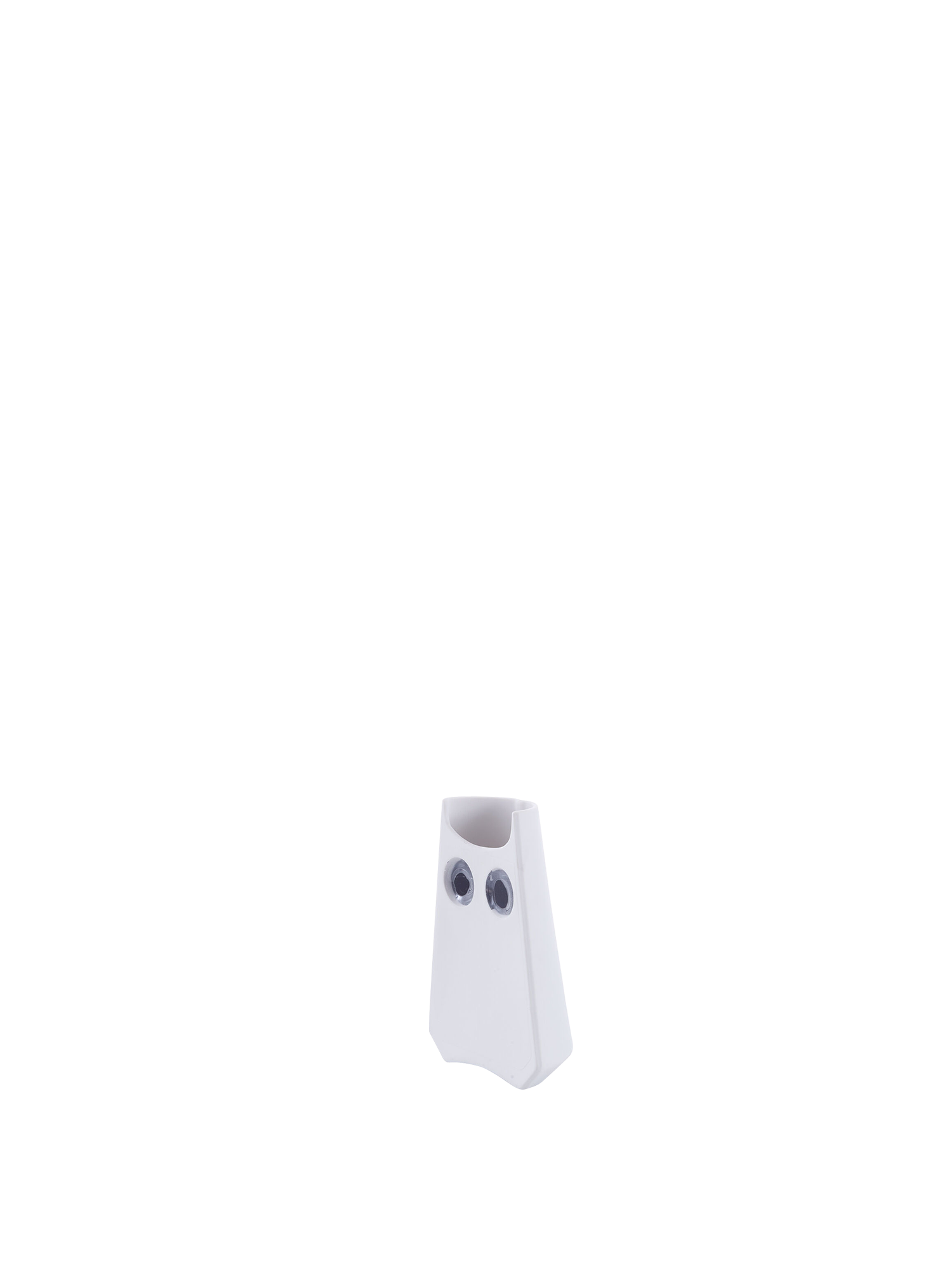 Einige Cendo Vasen sind halbiert und können mit ihrer flachen Rückseite dicht an einem Fascino Spiegel stehen. Mit ihrem Spiegelbild bilden sie ein Ganzes. Magneten an der Vase und hinter dem Spiegel geben Halt.