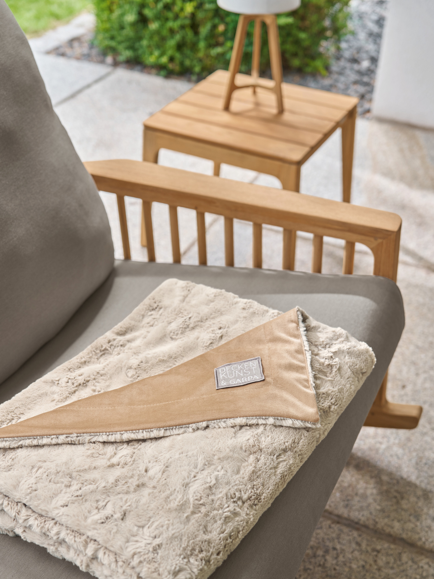 Das besonders anschmiegsame Plaid aus Fellimitat im großzügigen Format wärmt an kühlen Herbstabenden im Freien ebenso wie auf dem Sofa im Wohnzimmer.