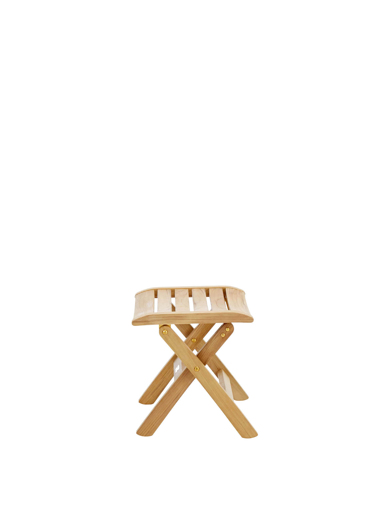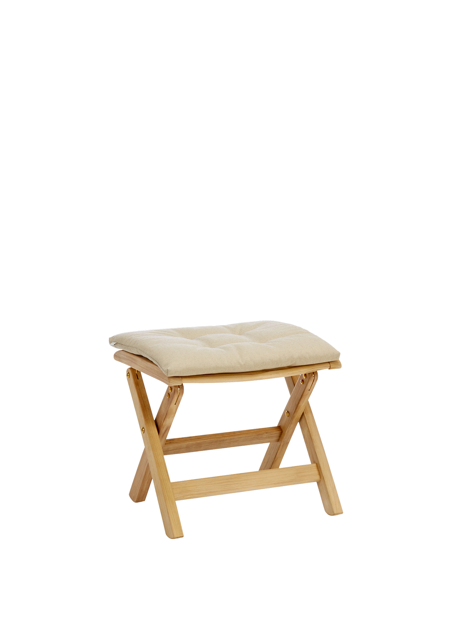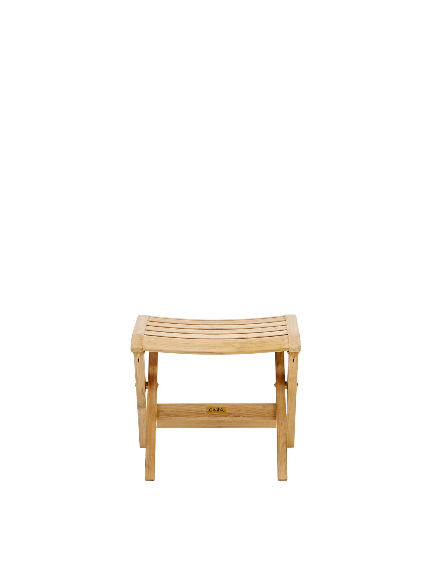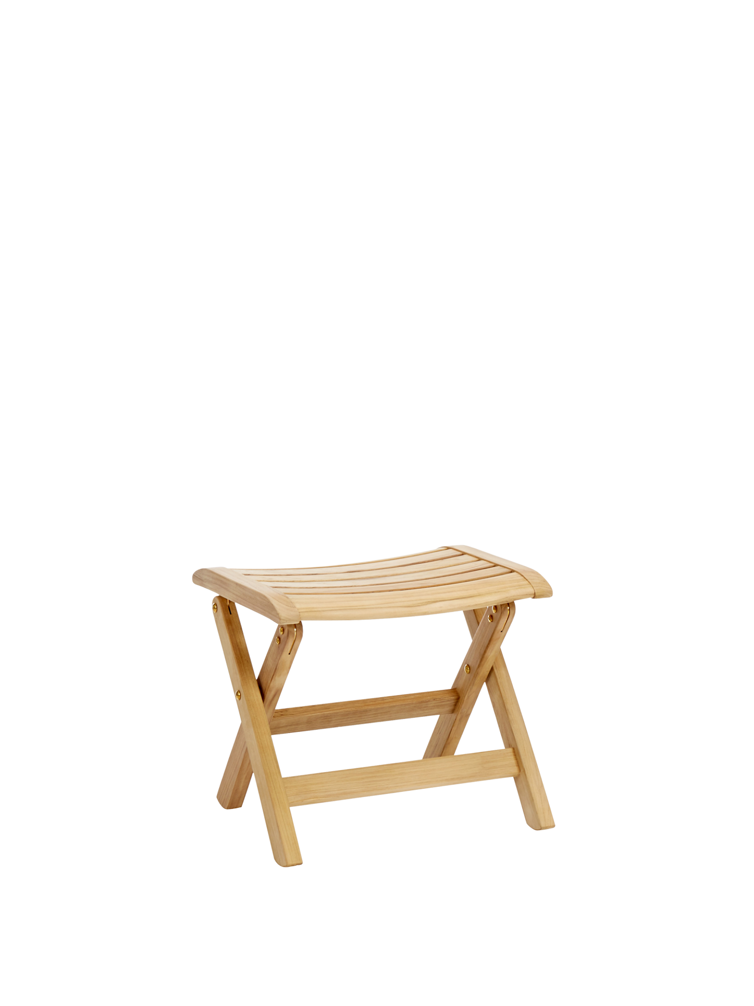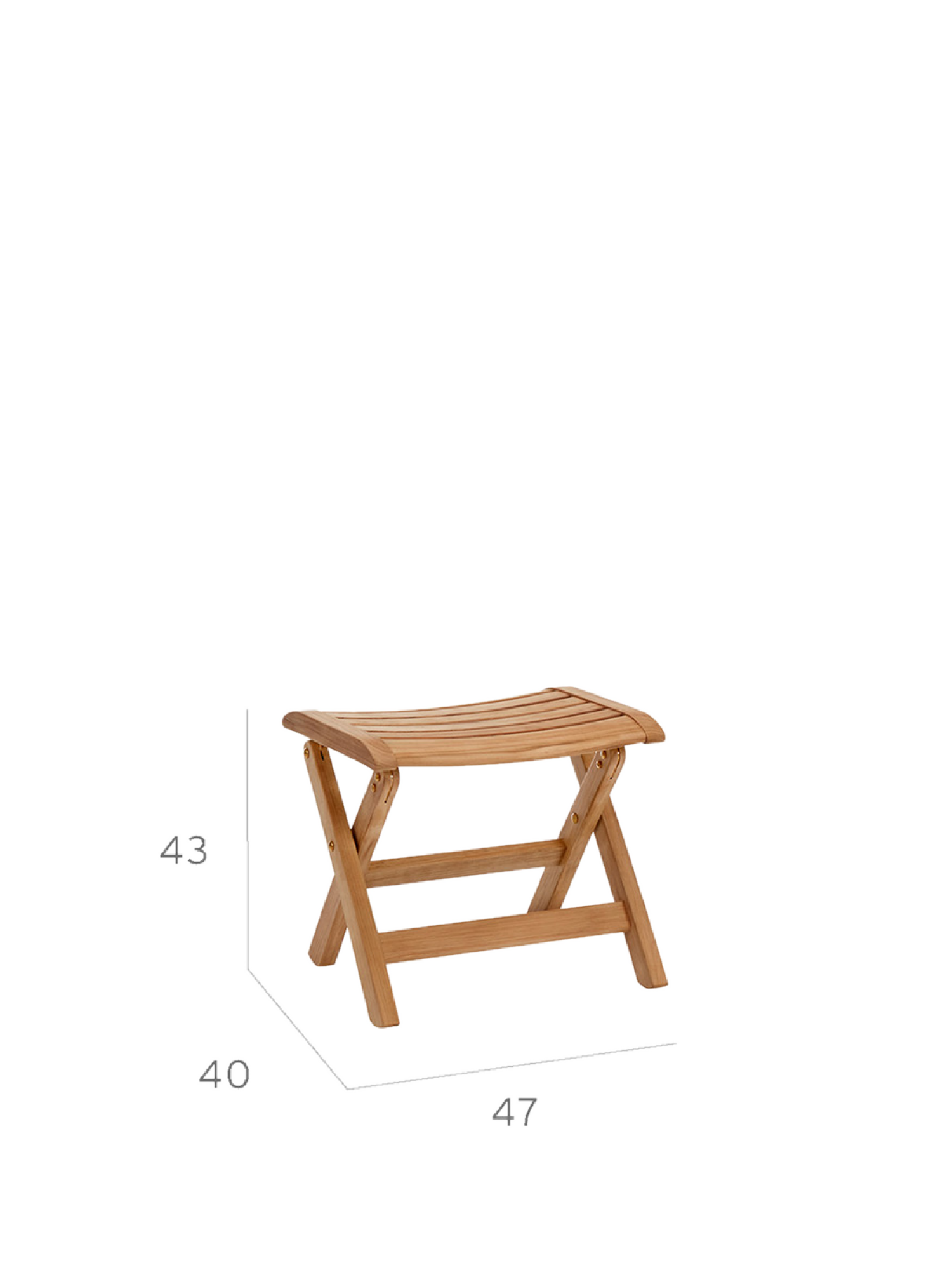 Der klappbare Hocker besteht aus wetterfestem Teak mit Beschlägen aus massivem Messing. Er passt in der Höhe zu allen Classic Foldables.