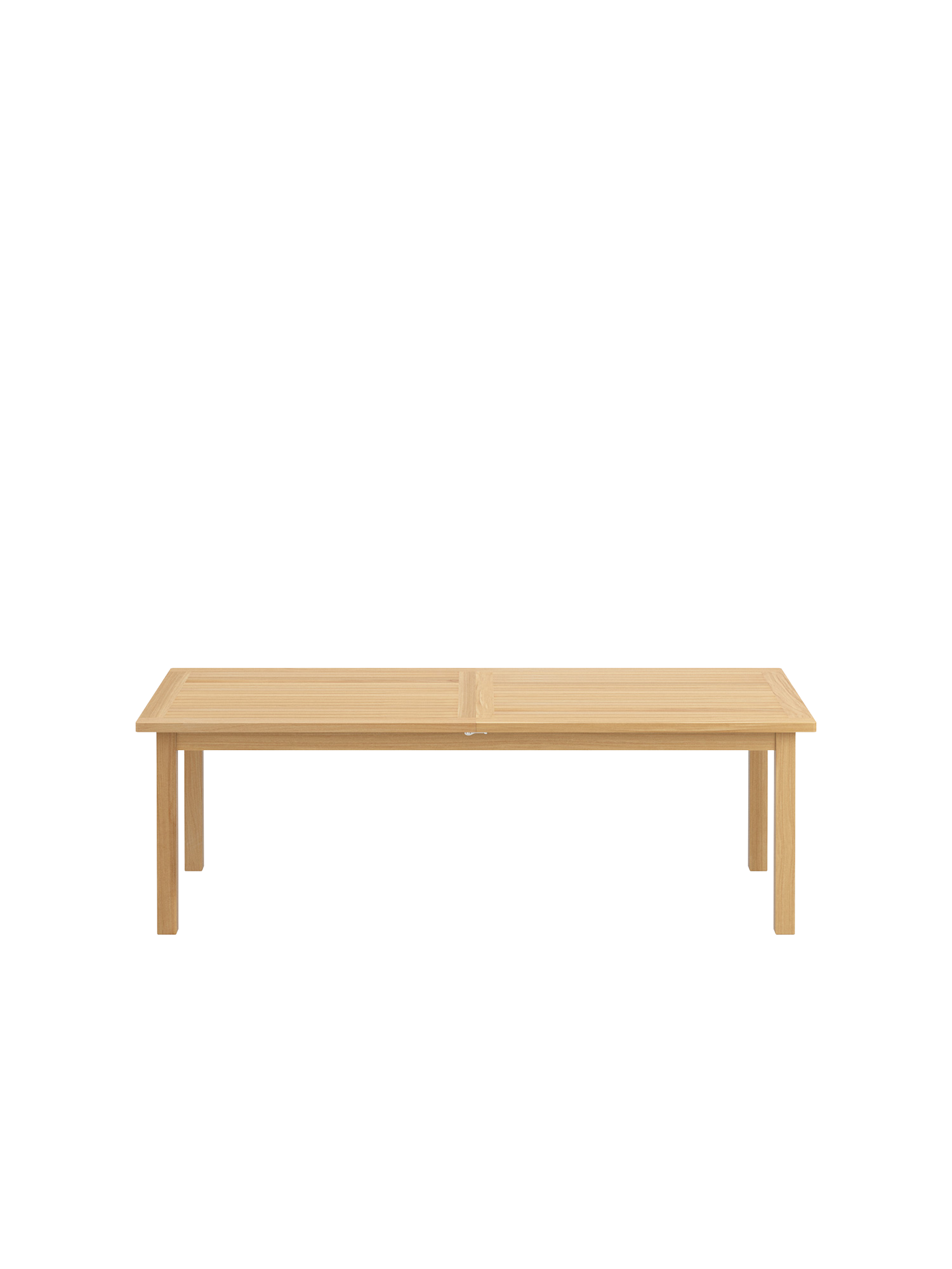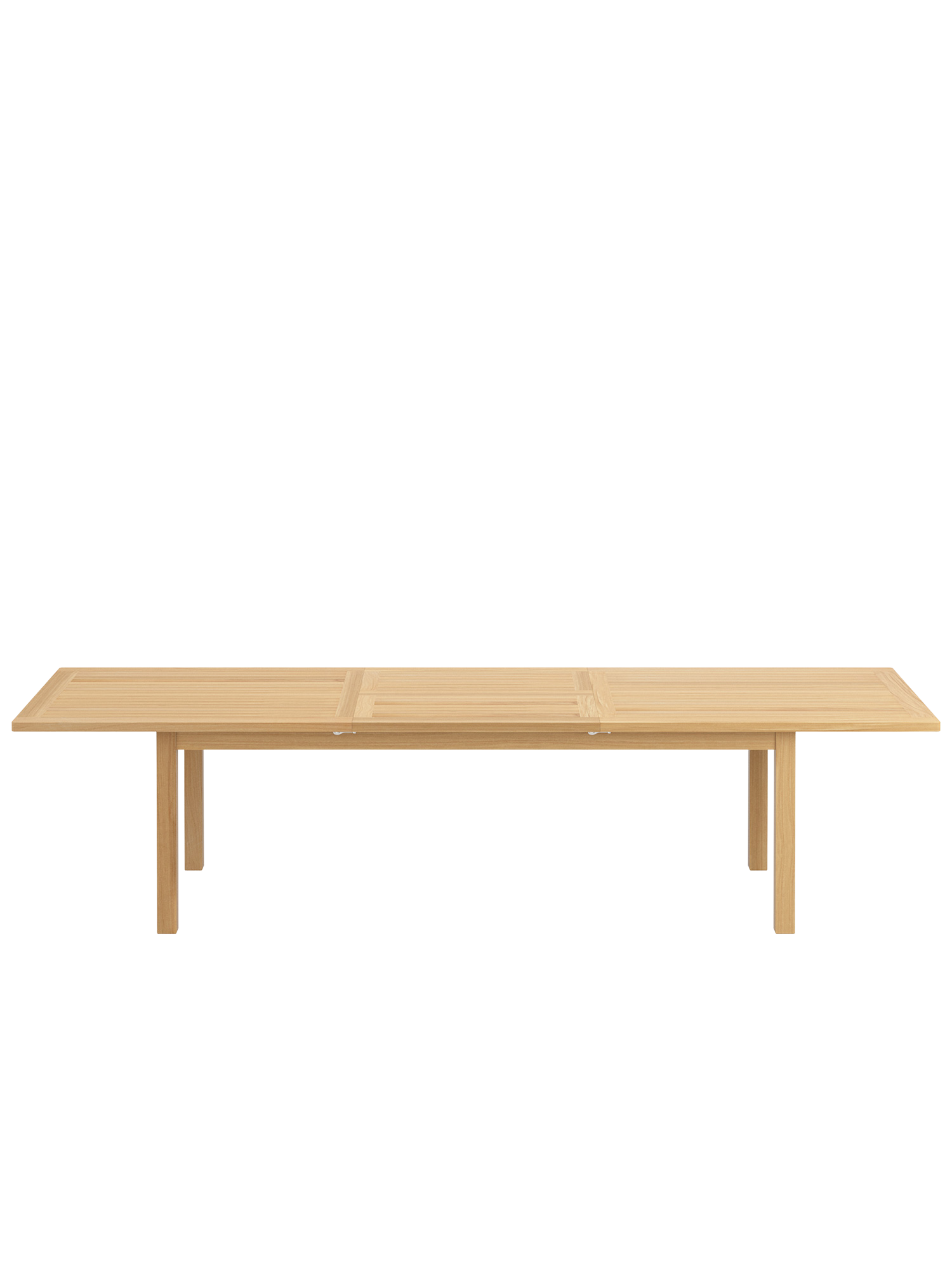Bei allen Teak Ausziehtischen lässt sich das Mittelteil leichtgängig klappen. Wird es nicht benötigt, lagert es im Tisch. Beim Cornwall Tisch sind wartungsfreie Aluminiumteile aufwändig in das massive Teakholz eingearbeitet und halten so den Mechanismus zuverlässig in Form.