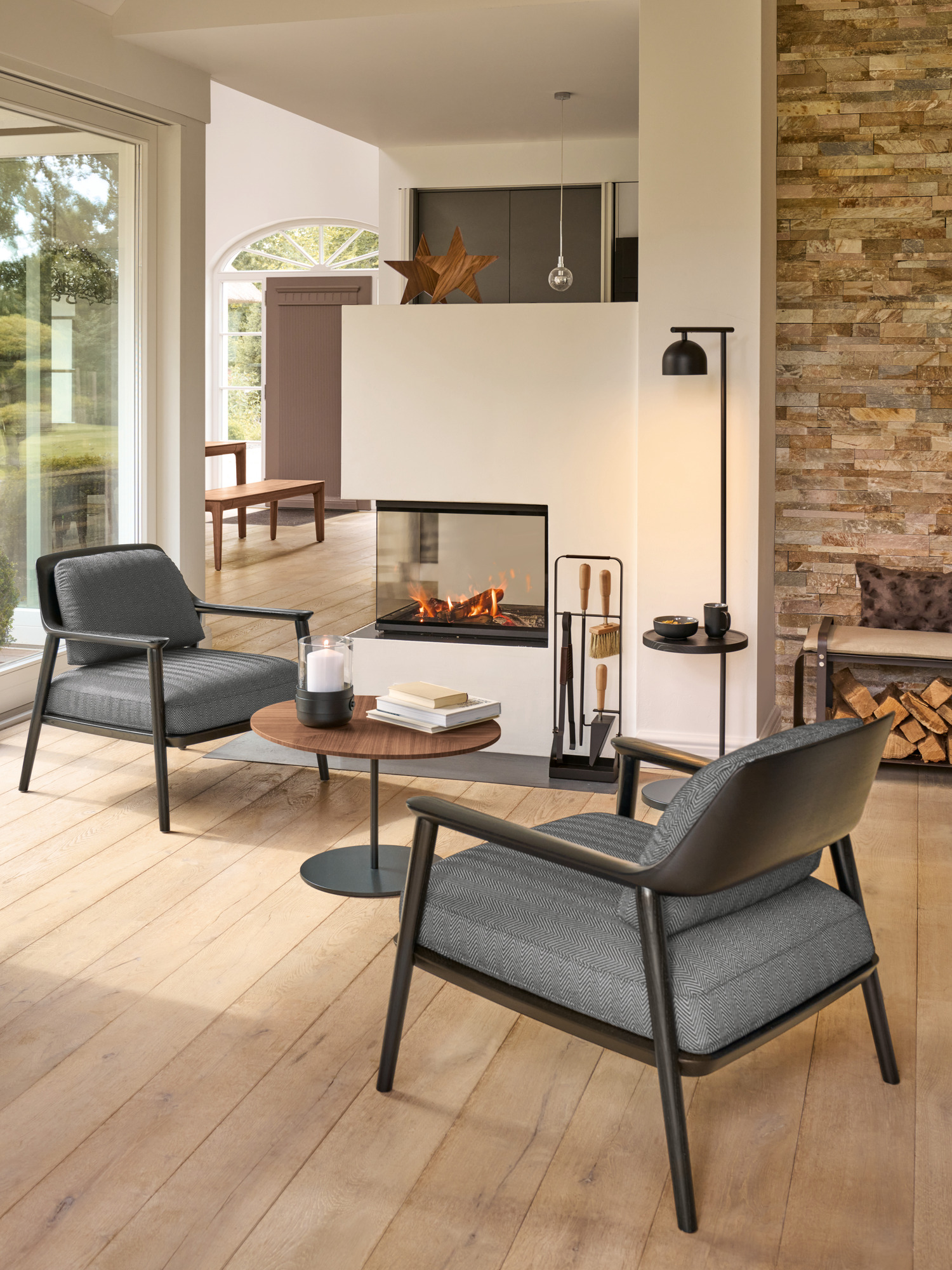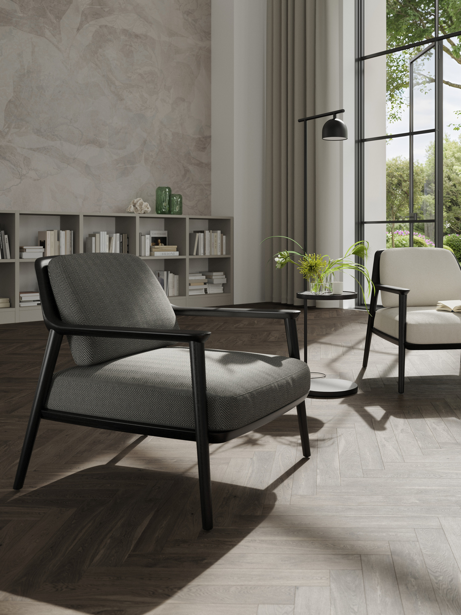 Die puristische Damio Stehleuchte glänzt in Doppelfunktion und setzt den Lieblingsplatz raffiniert in Szene.