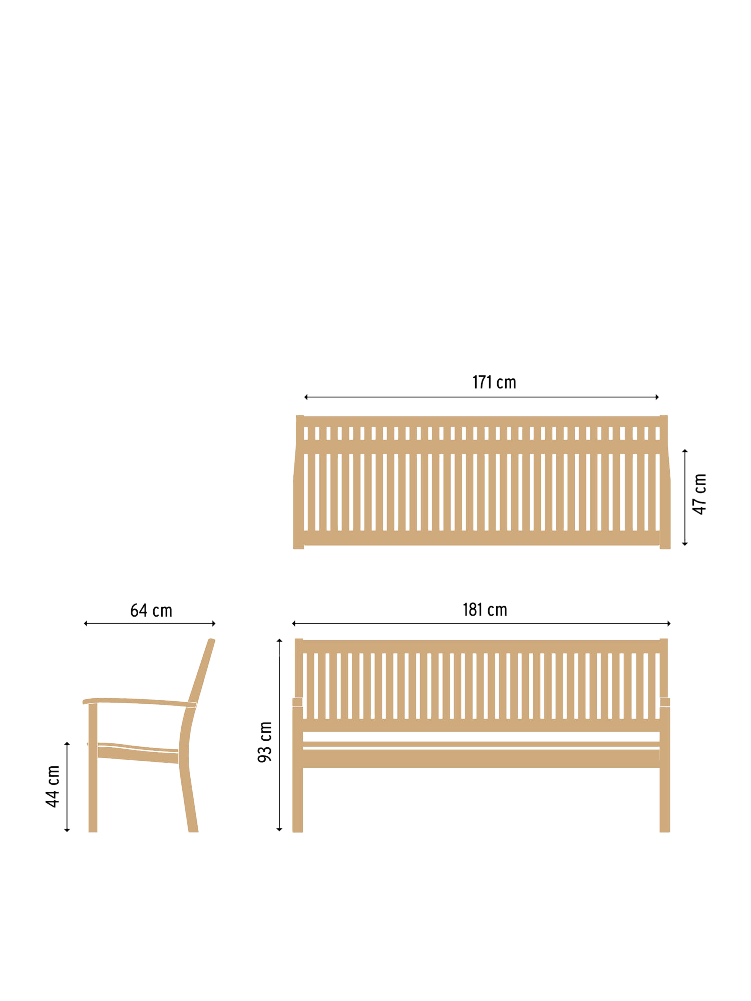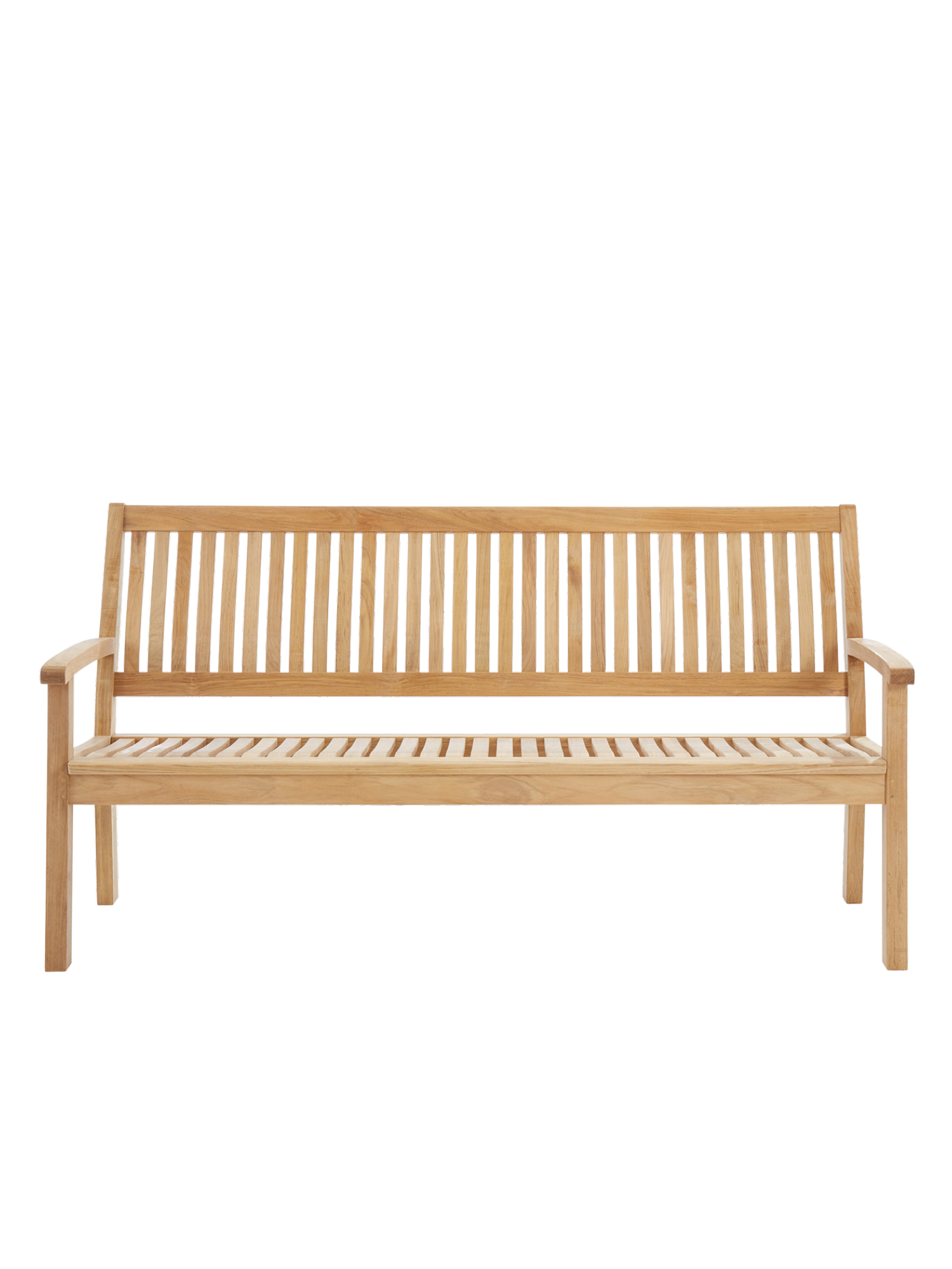 Die elegante Bank aus massivem Teak kann getrost jedem Wetter ausgesetzt werden. Ihre großzügige Sitzfläche sowie die hohe Rückenlehne sind ergonomisch geformt und sorgen für eine entspannte Haltung. Die Armlehnen mit ihren gerundeten Knäufen schmeicheln den Händen.