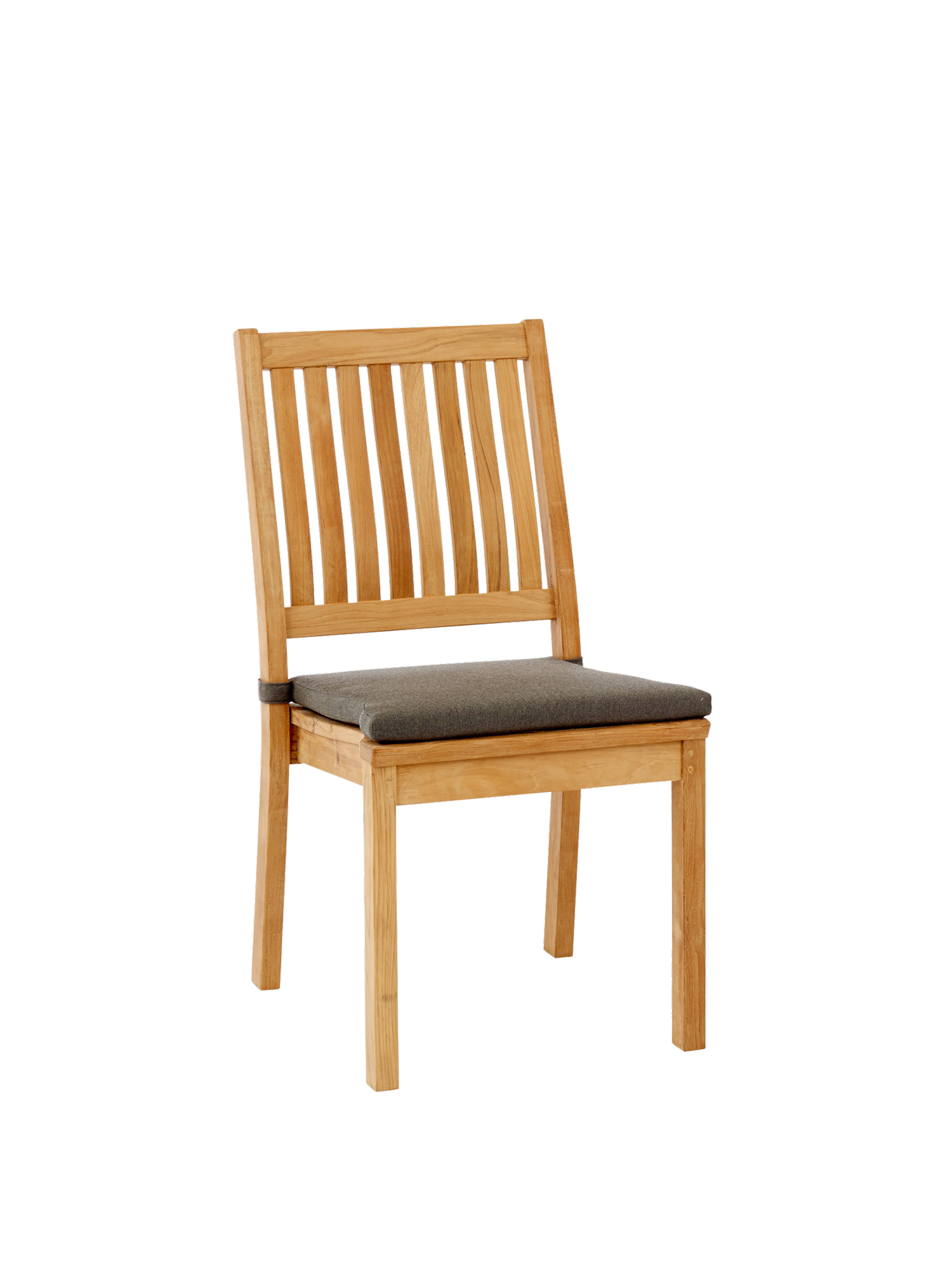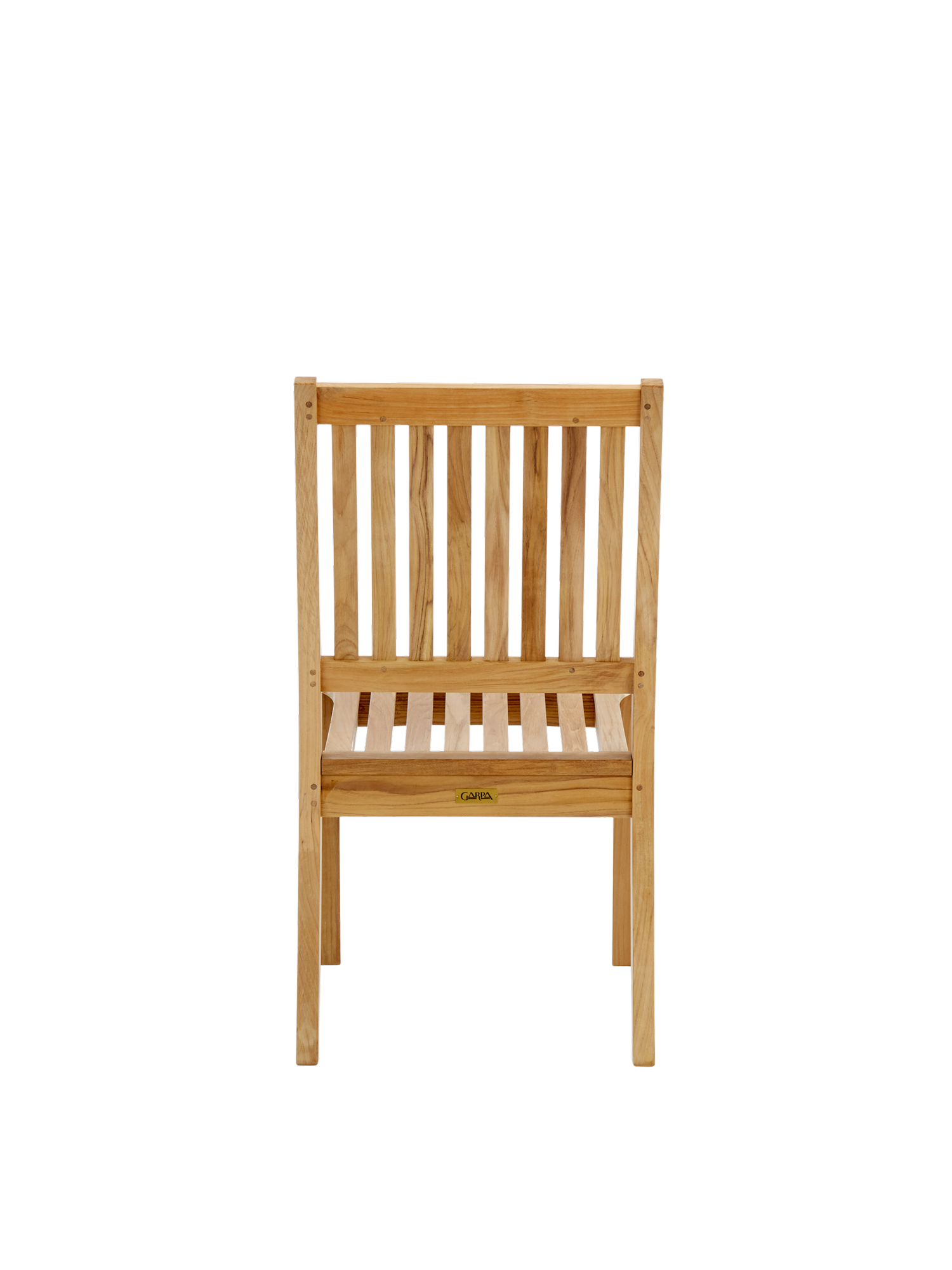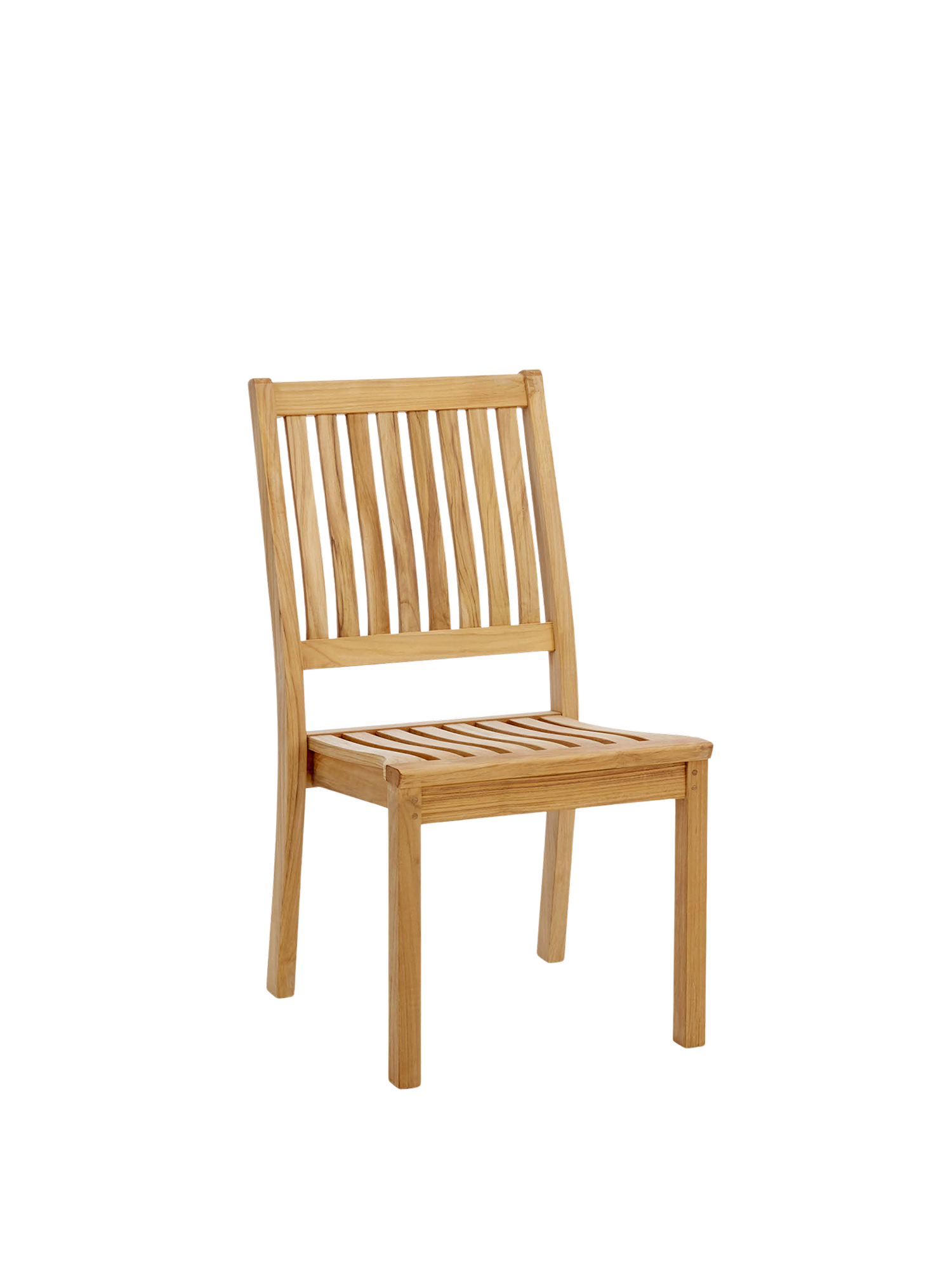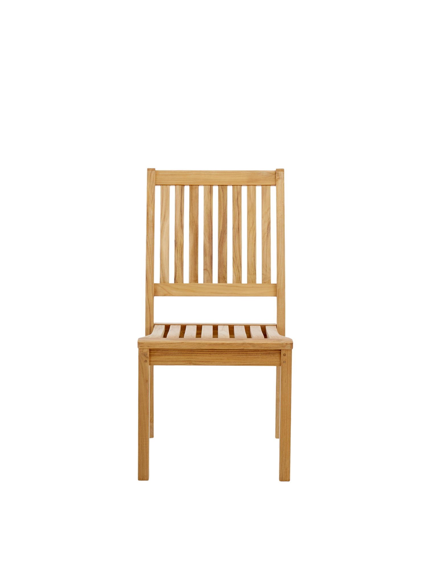 Der elegante Stuhl aus massivem Teak kann getrost jedem Wetter ausgesetzt werden. Seine Sitzfläche sowie die hohe Rückenlehne sind ergonomisch geformt und sorgen für eine entspannte Haltung. Er lässt sich bequem und platzsparend stapeln.