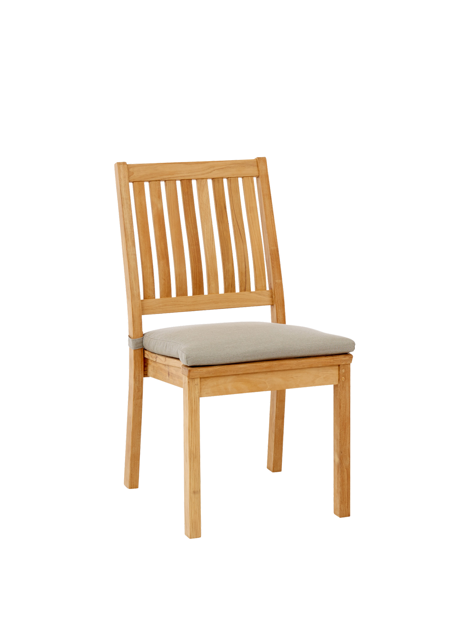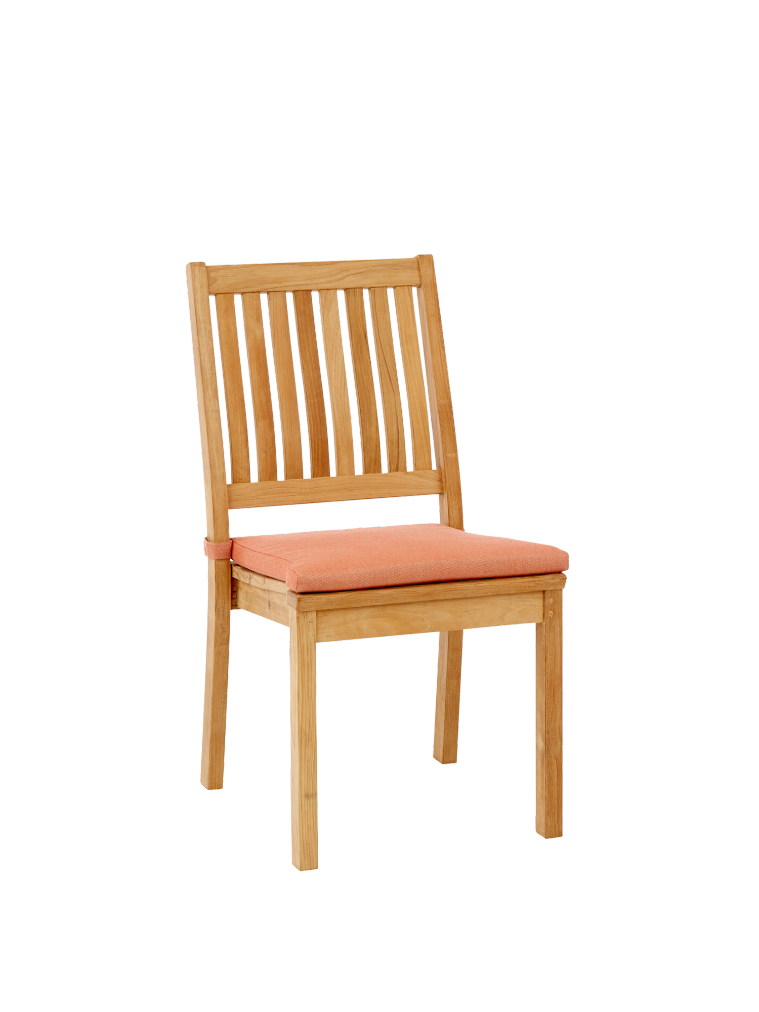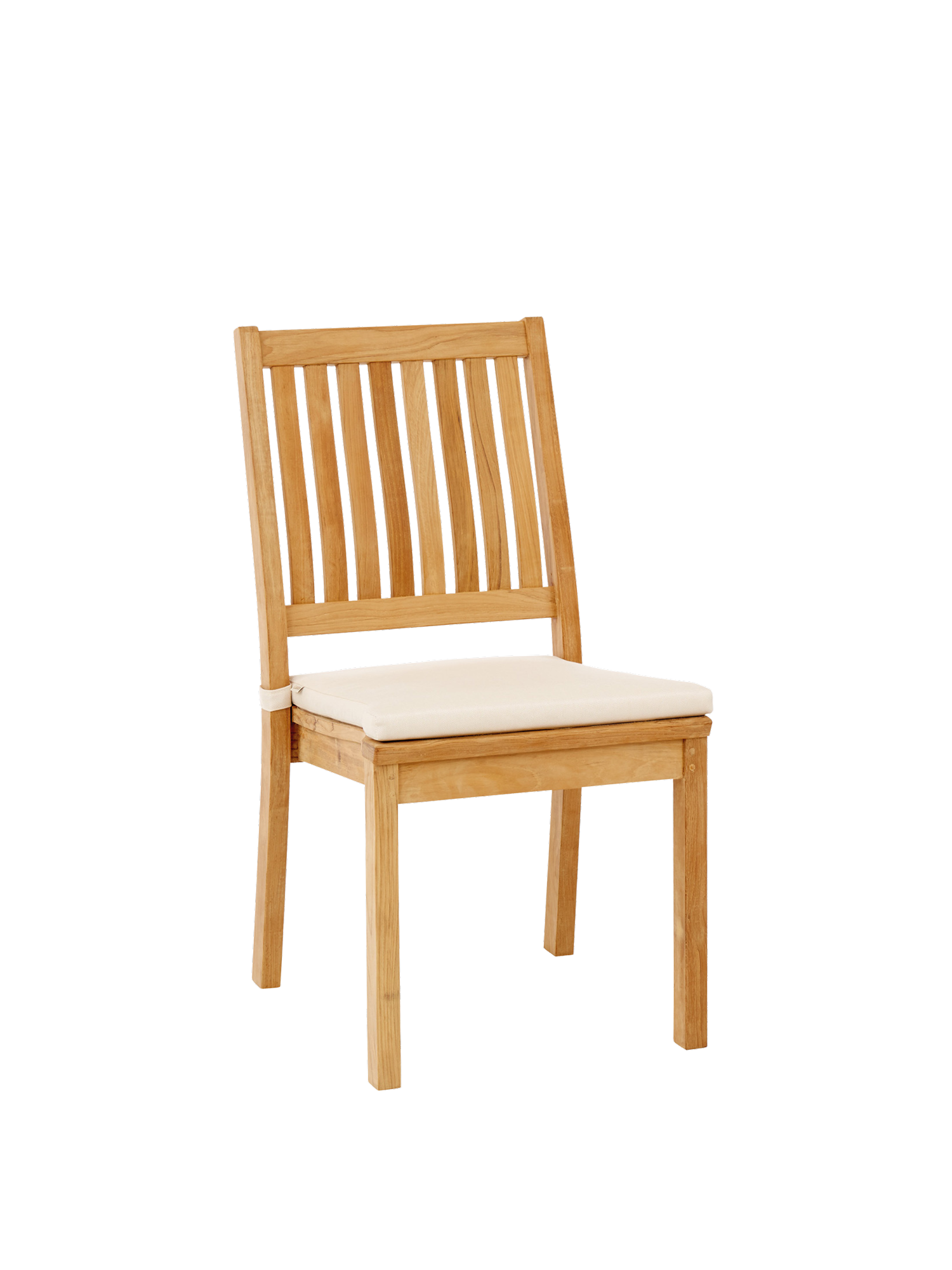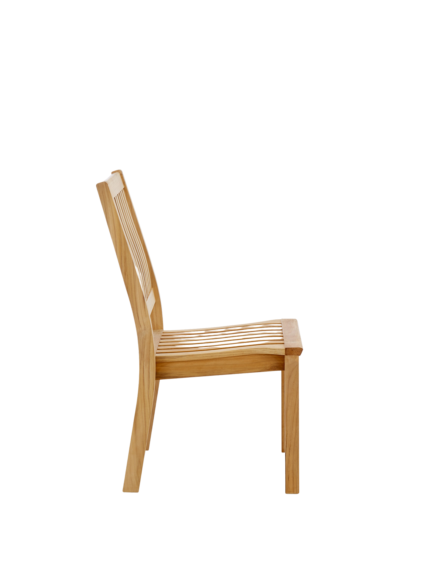 Der elegante Stuhl aus massivem Teak kann getrost jedem Wetter ausgesetzt werden. Seine Sitzfläche sowie die hohe Rückenlehne sind ergonomisch geformt und sorgen für eine entspannte Haltung. Er lässt sich bequem und platzsparend stapeln.