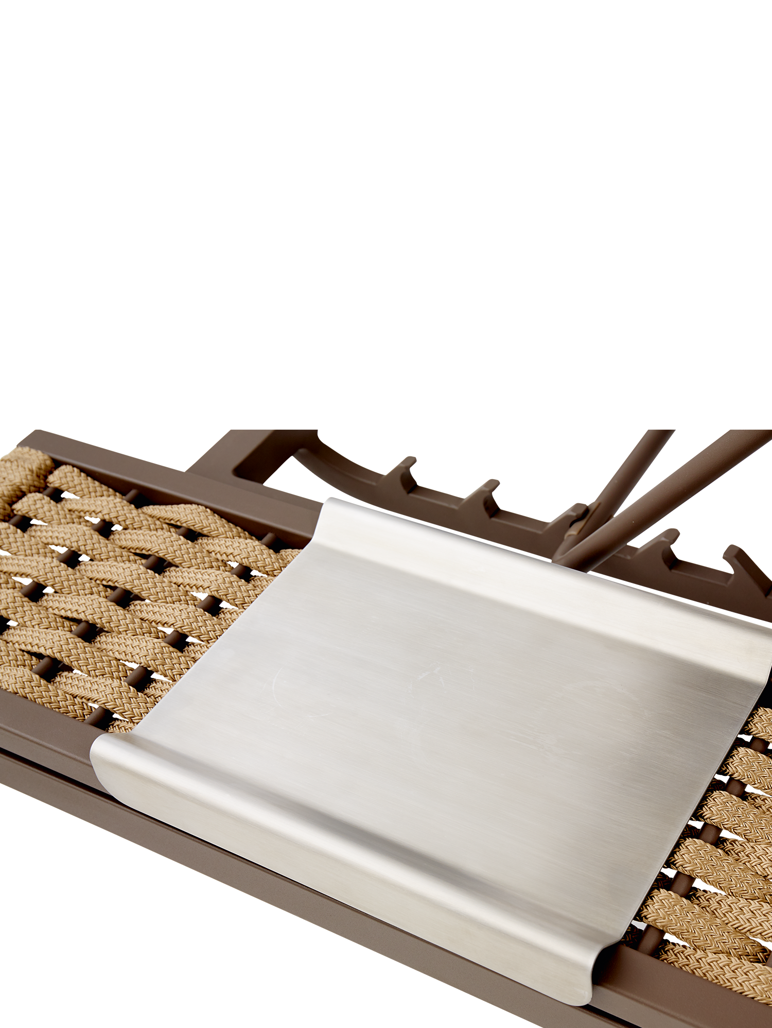 Buch, Sonnenbrille und Erfrischung bleiben auf dem passgenauen Edelstahltablett immer griffbereit.