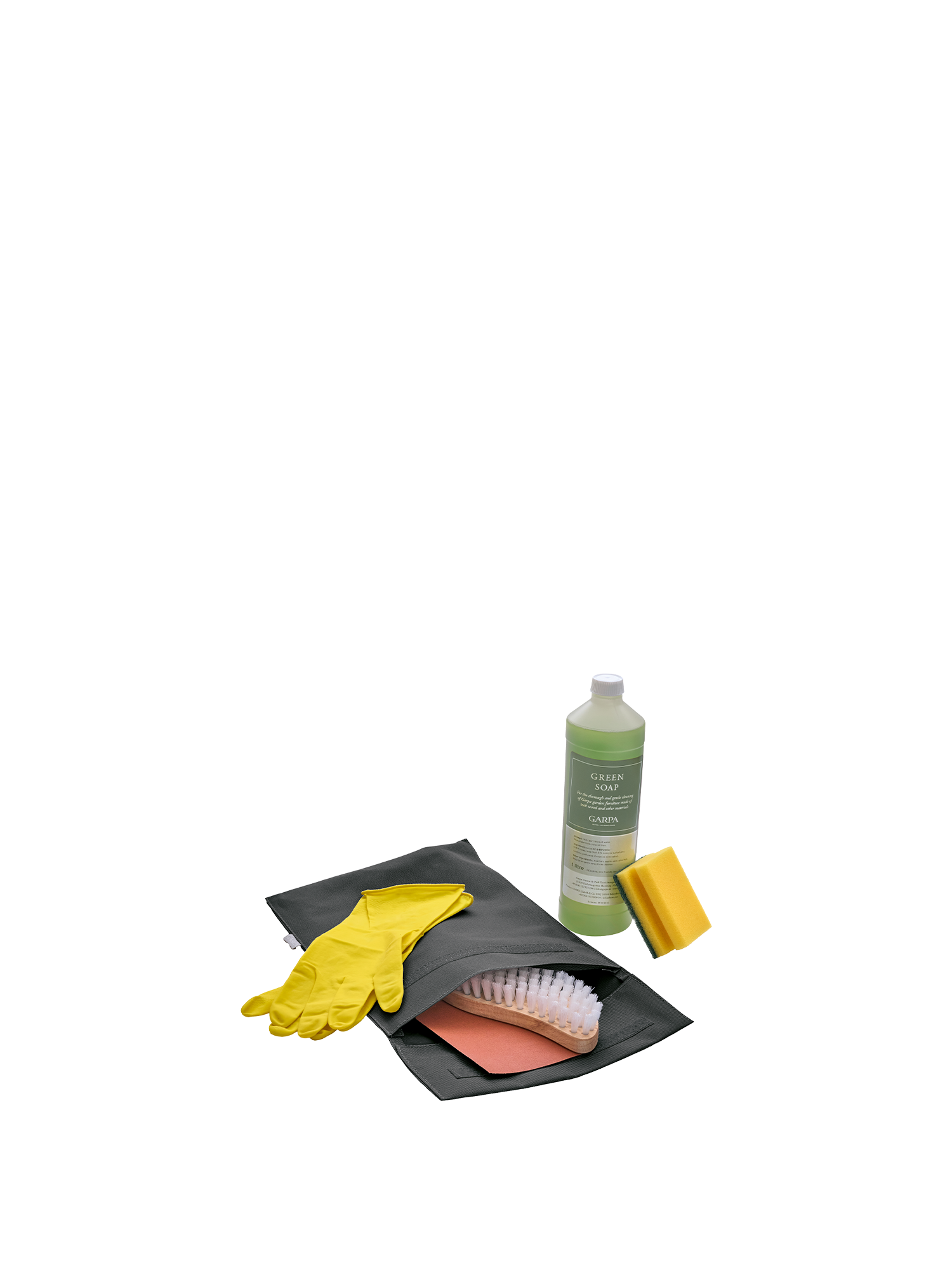 The care set is ideal as a basic kit for maintaining Garpa furniture made from teak and other materials. The green soap is free from microplastics and 100% biodegradable.