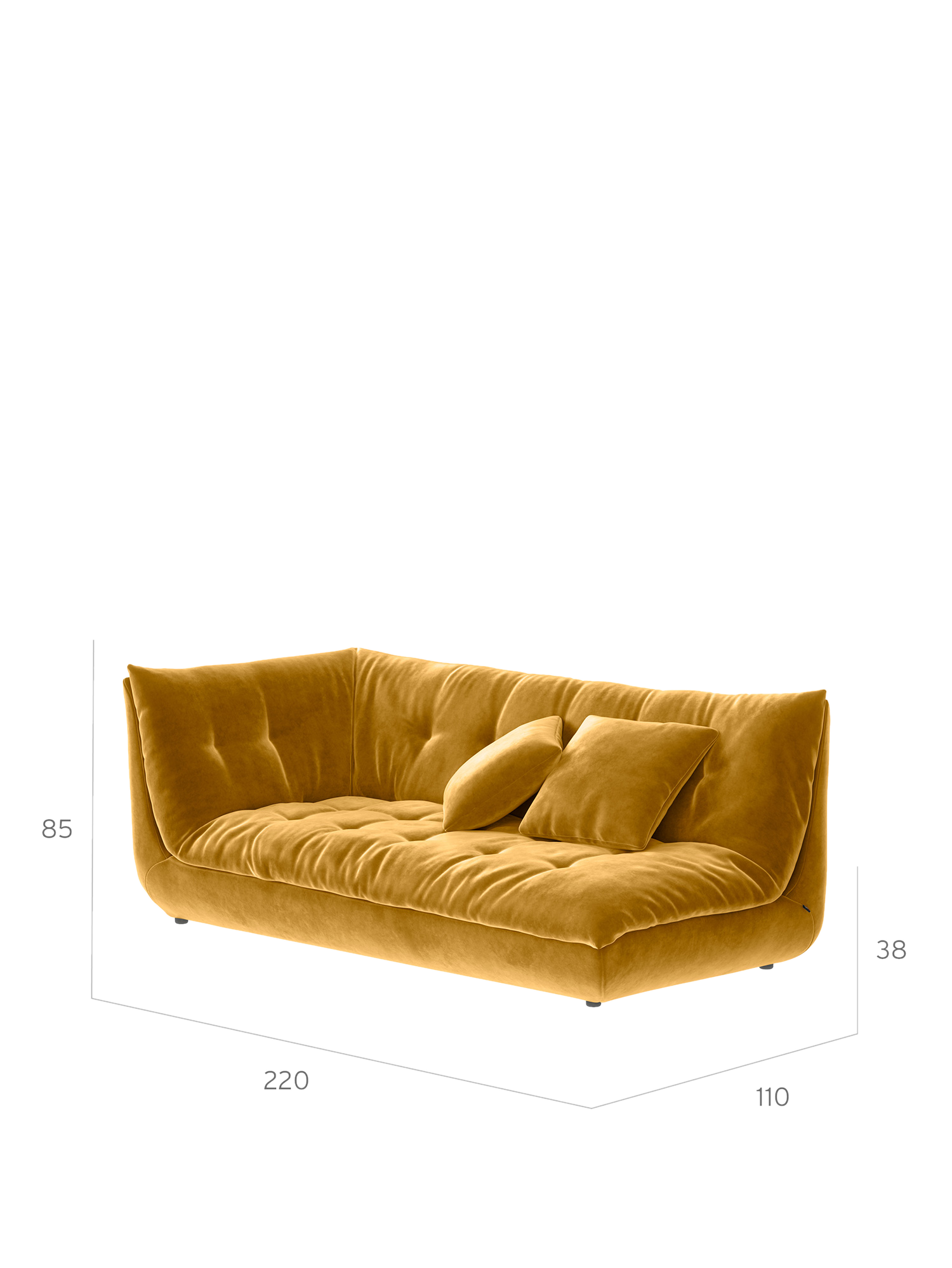 A luxuriously soft reclining surface designed to fulfil your dreams. The harmonious interplay of concave and convex shapes is soothing to the back while the sumptuous cushions ensure maximum comfort in both sitting and reclining positions.