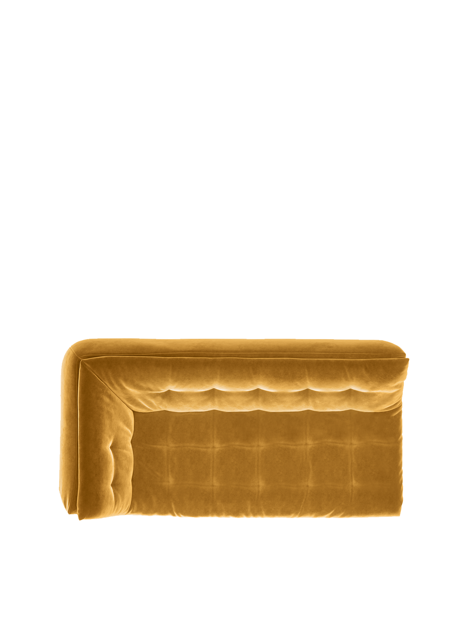 The larger Sandvig end module is equipped with a frame made of solid ash wood and comes in a choice of three beautiful shades of Aquamarine, Amber and Quartz. The armrest is on the left when seated.