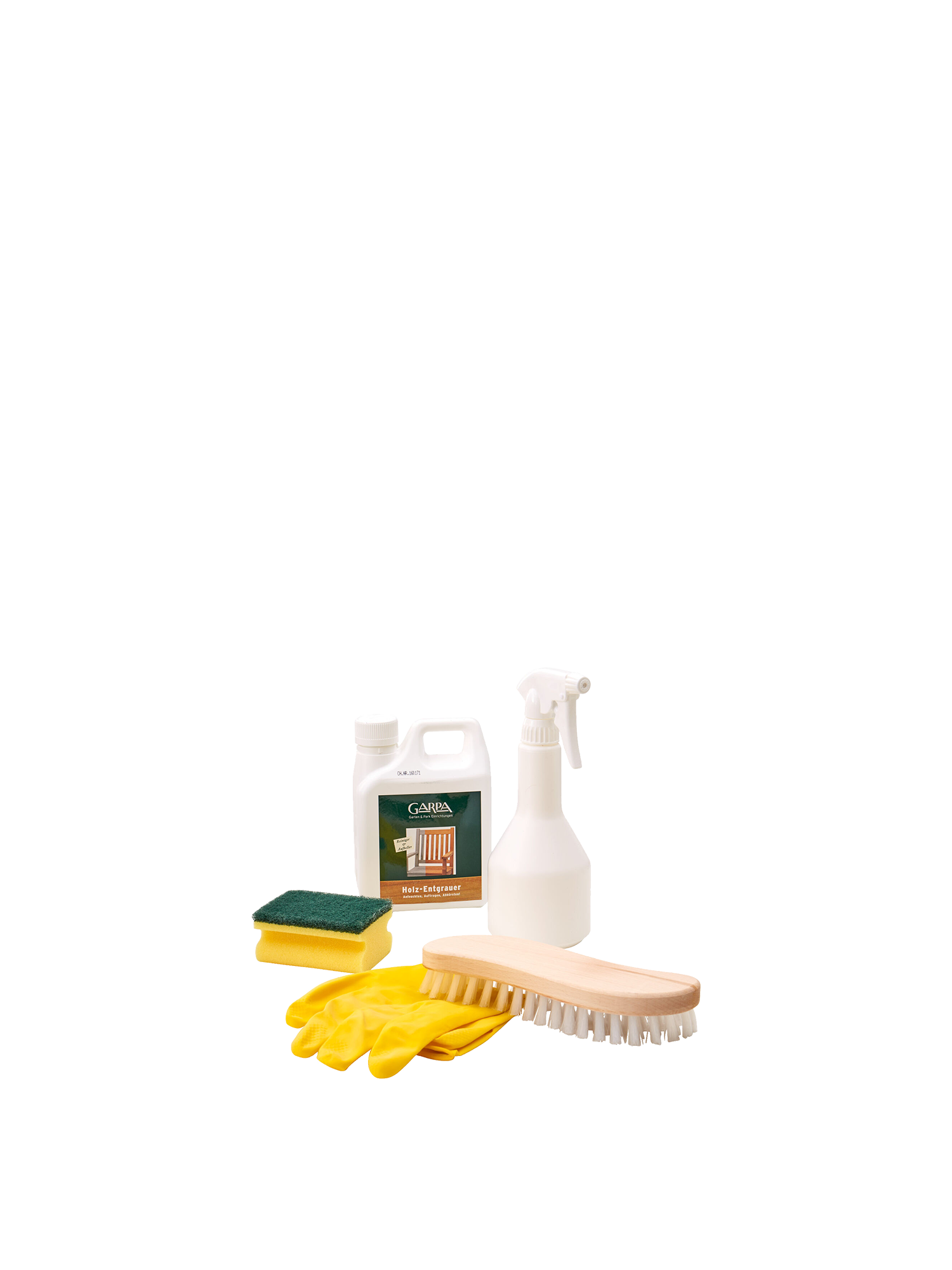 - Contains: Teak Restorer (1 l), bottle (0.5 l) with spray head, scrubbing brush, sponge and latex gloves (size L)
