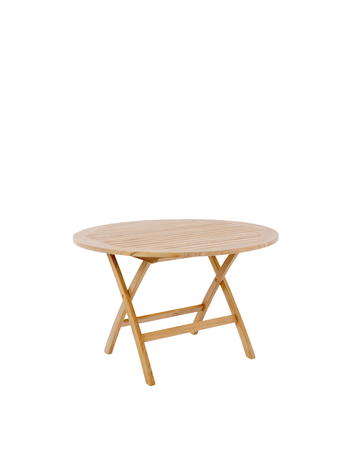 Der Folding Table aus hochwertigem Teakholz ist der ideale Tisch für mittelgroße Runden. Bis zu sechs Personen finden Platz an der runden Platte – zum Essen, zum Spielen, zum heiteren Beisammensein.