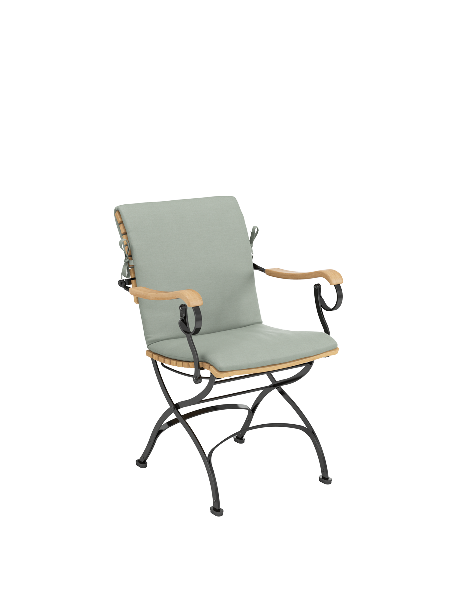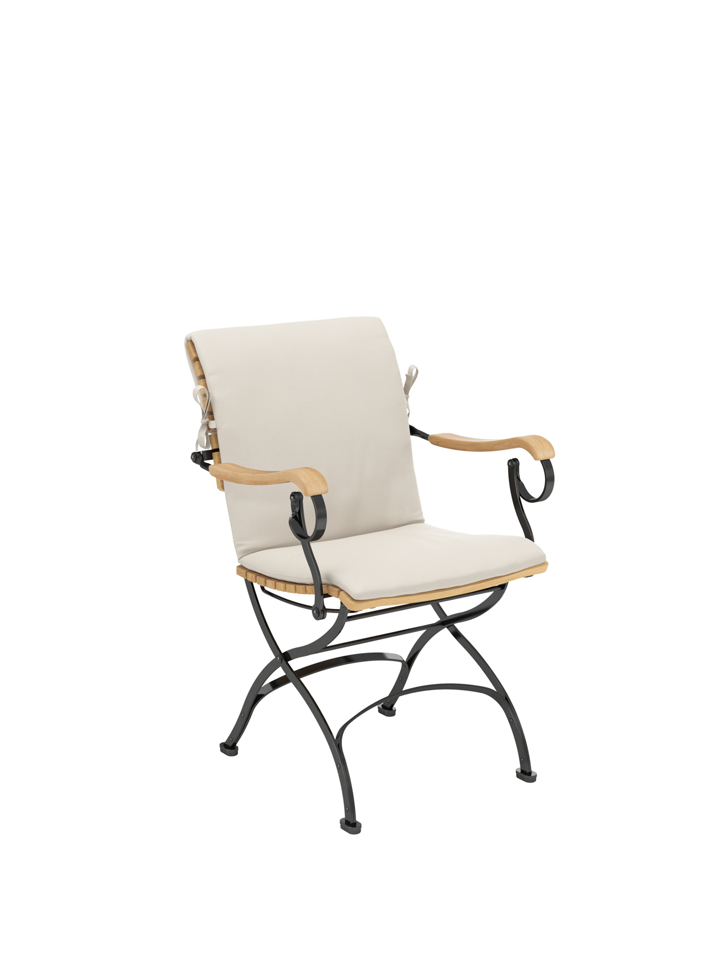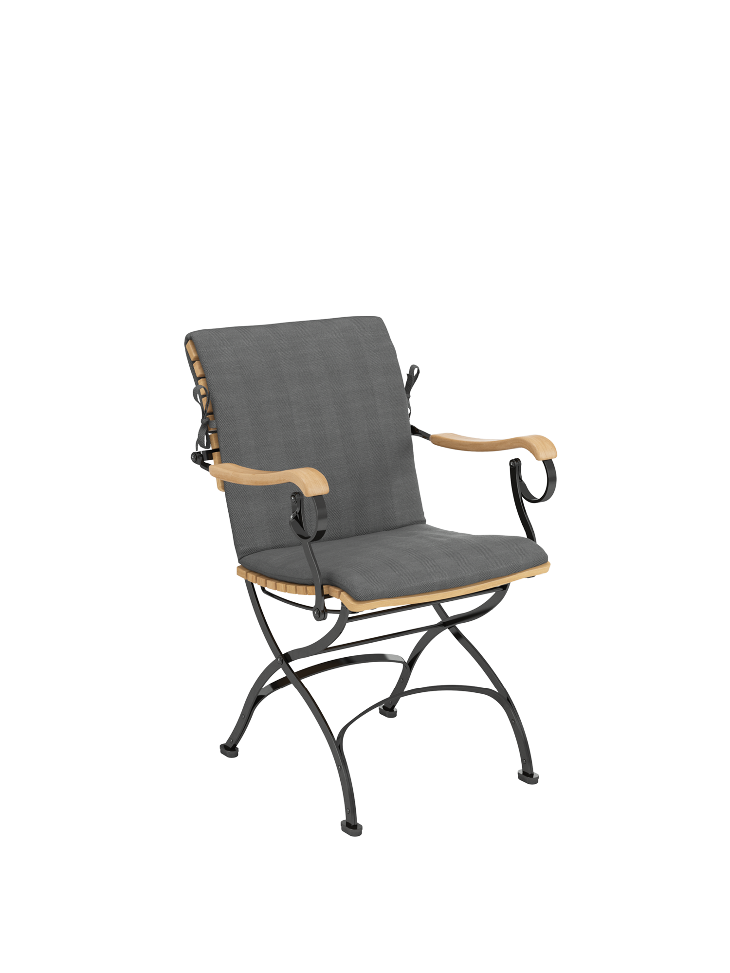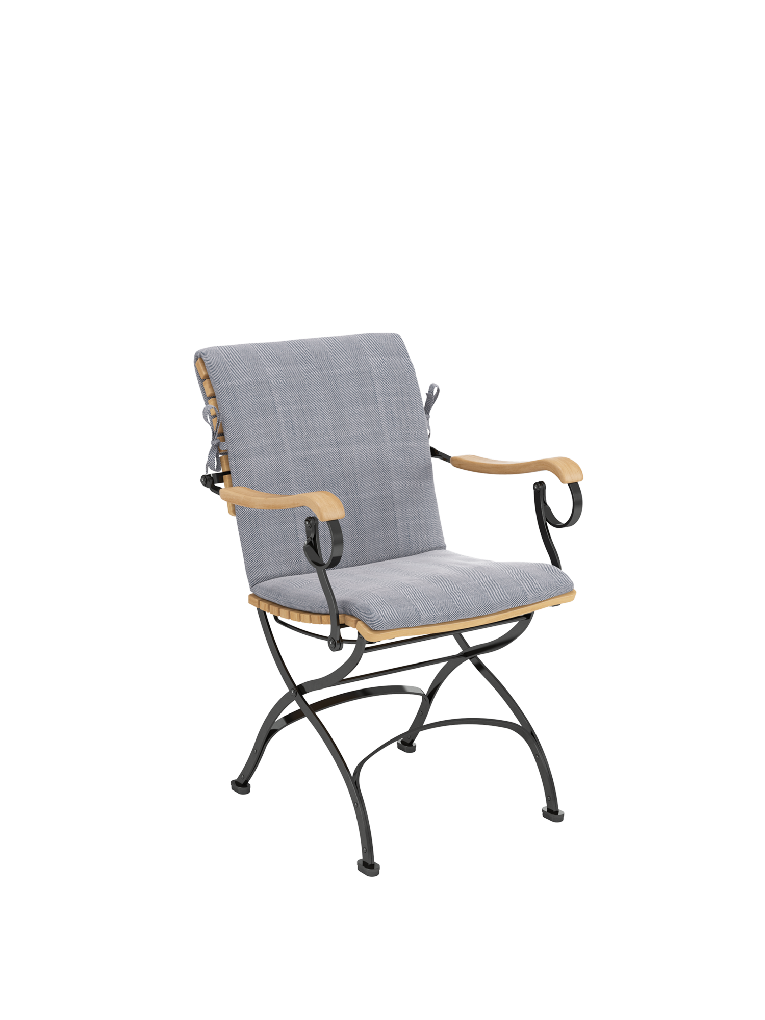 Er gilt als Prototyp des Gartenstuhls, nur sitzt man heutzutage ungleich bequemer. Garpa hat das Original aus Teak und Stahl für höchste Ansprüche perfektioniert. Die massiven Teakleisten von Sitz und Rückenlehne wurden so modelliert, dass sie der Anatomie des Körpers folgen. Armlehnen aus Plantagenteak schmeicheln der Hand und entlasten den Körper. Die große Sitzfläche aus Teak ist dreidimensional geformt, sodass sie sich dem Körper anschmiegt. Vorn ist sie zur besseren Schenkelauflage abgerundet. Auflagen in verschiedenen Farbtönen erhöhen noch die Bequemlichkeit der Möbel und setzen feine Akzente.