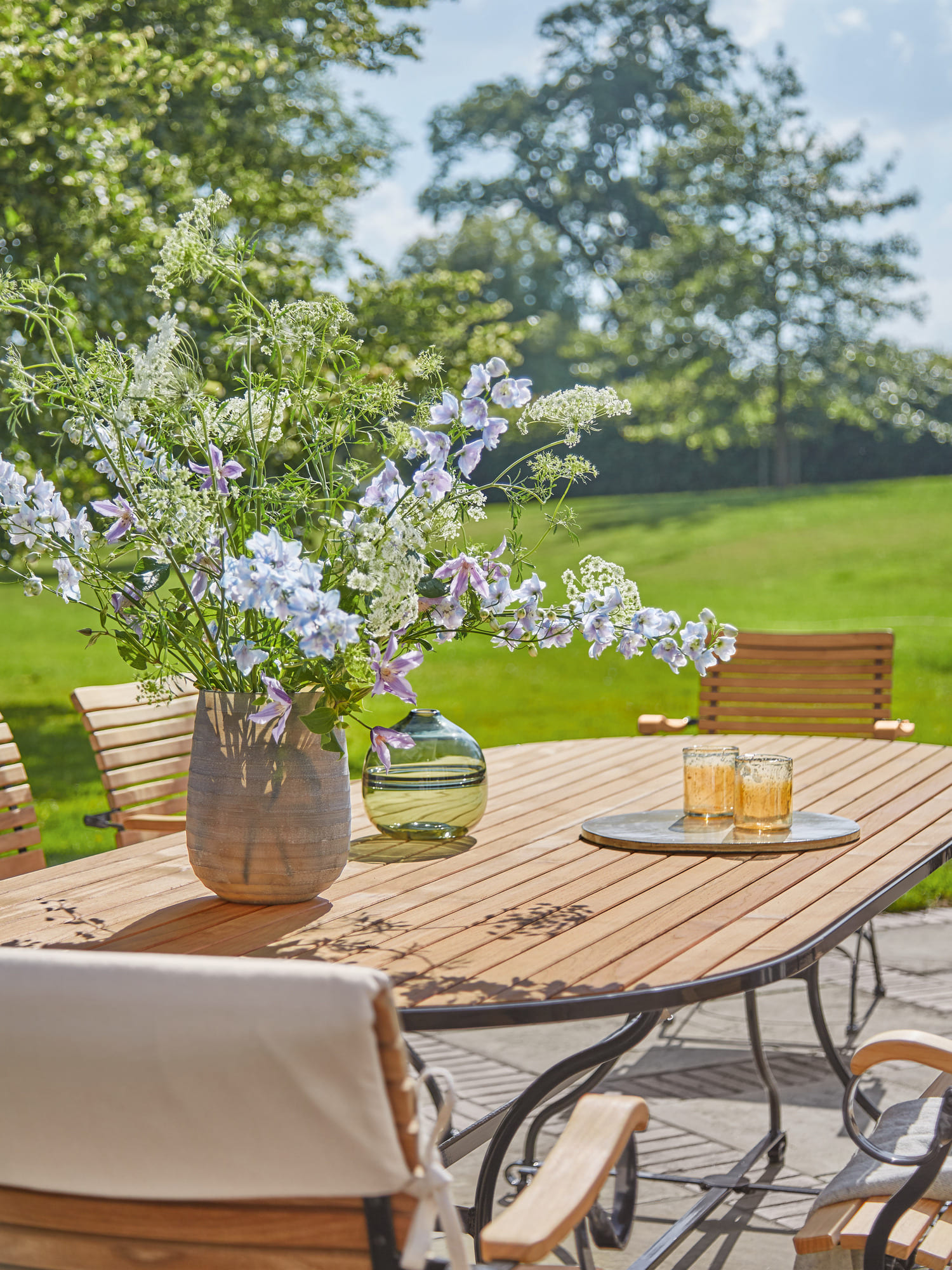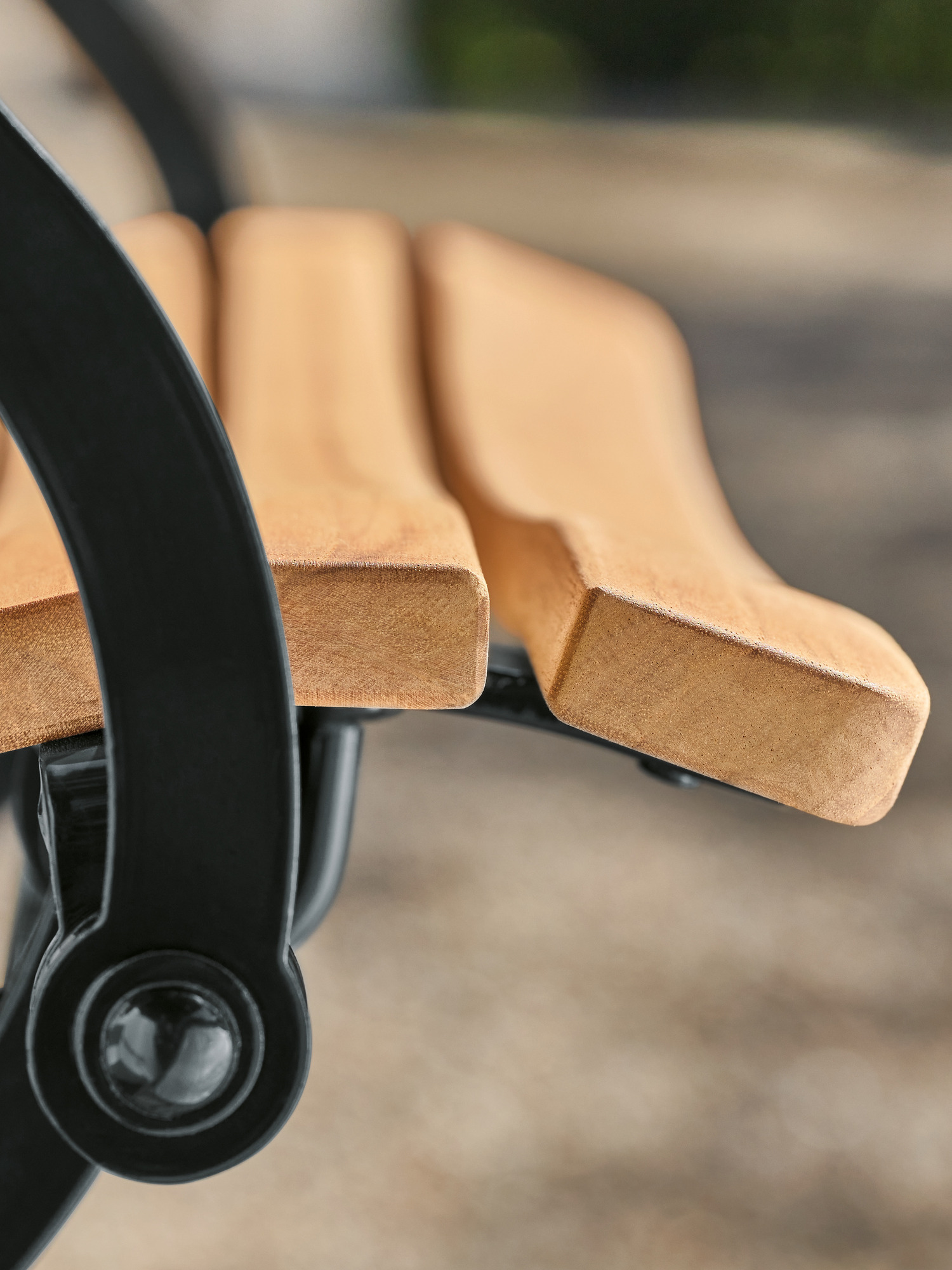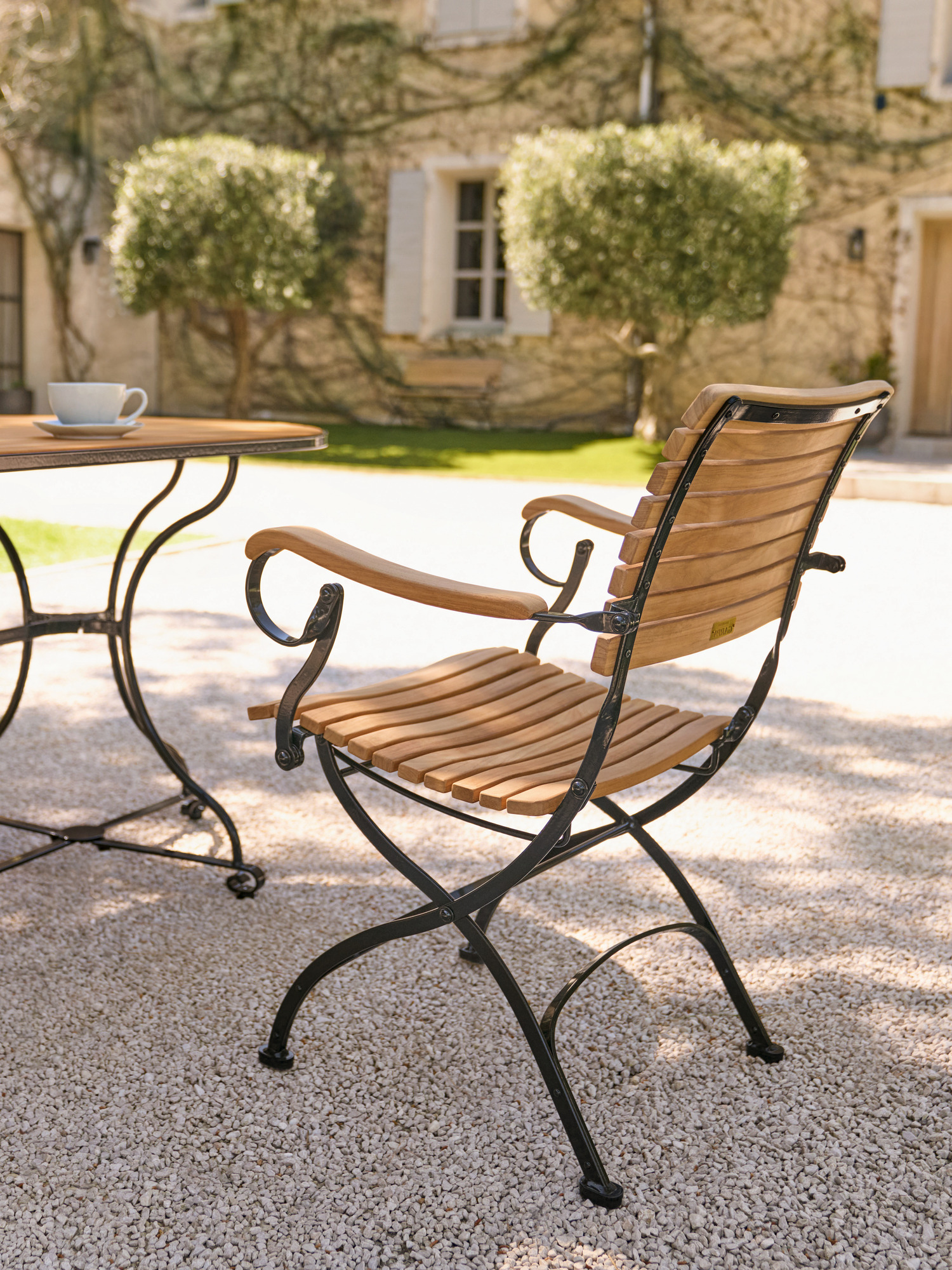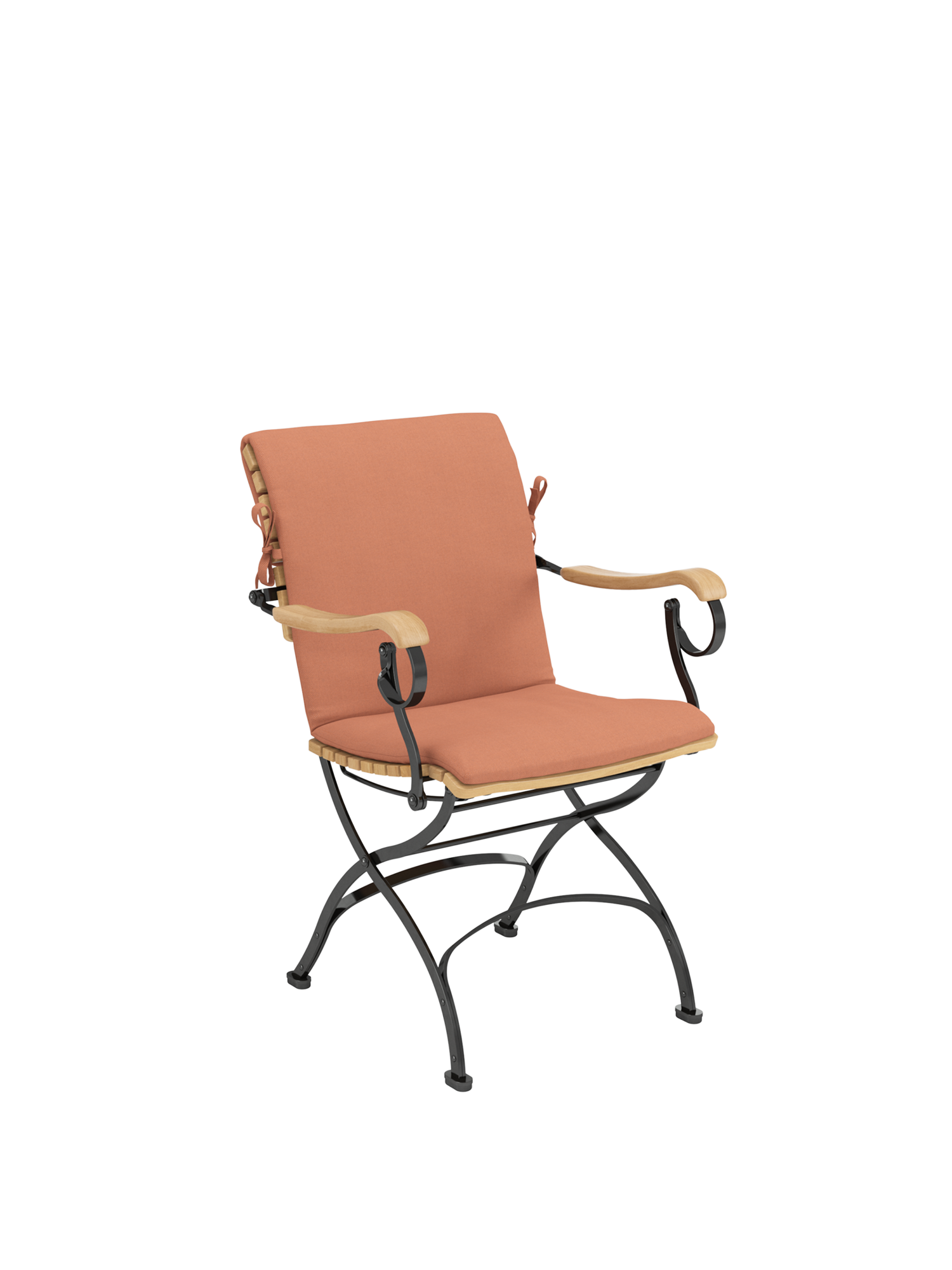 Er gilt als Prototyp des Gartenstuhls, nur sitzt man heutzutage ungleich bequemer. Garpa hat das Original aus Teak und Stahl für höchste Ansprüche perfektioniert. Die massiven Teakleisten von Sitz und Rückenlehne wurden so modelliert, dass sie der Anatomie des Körpers folgen. Armlehnen aus Plantagenteak schmeicheln der Hand und entlasten den Körper. Die große Sitzfläche aus Teak ist dreidimensional geformt, sodass sie sich dem Körper anschmiegt. Vorn ist sie zur besseren Schenkelauflage abgerundet. Auflagen in verschiedenen Farbtönen erhöhen noch die Bequemlichkeit der Möbel und setzen feine Akzente.
