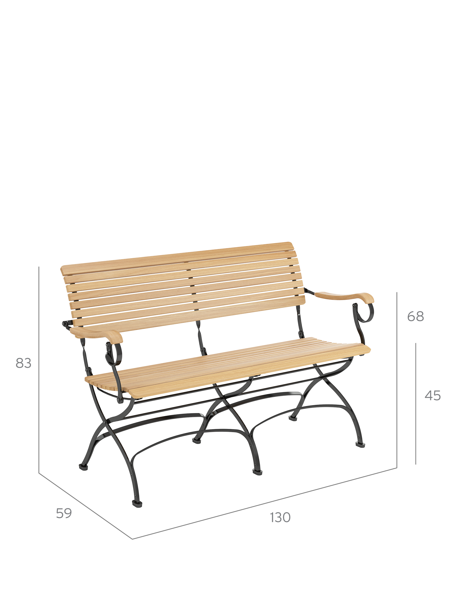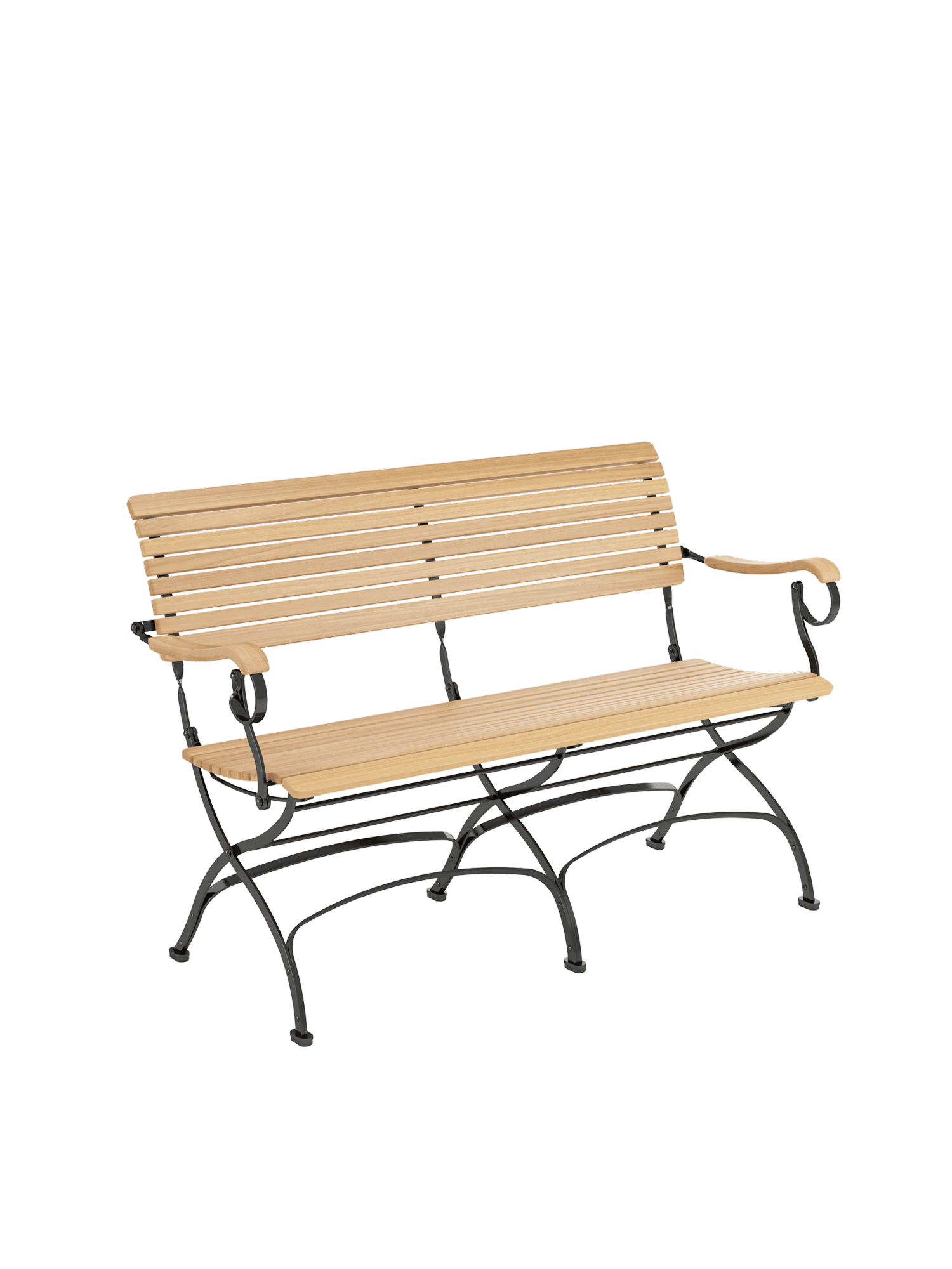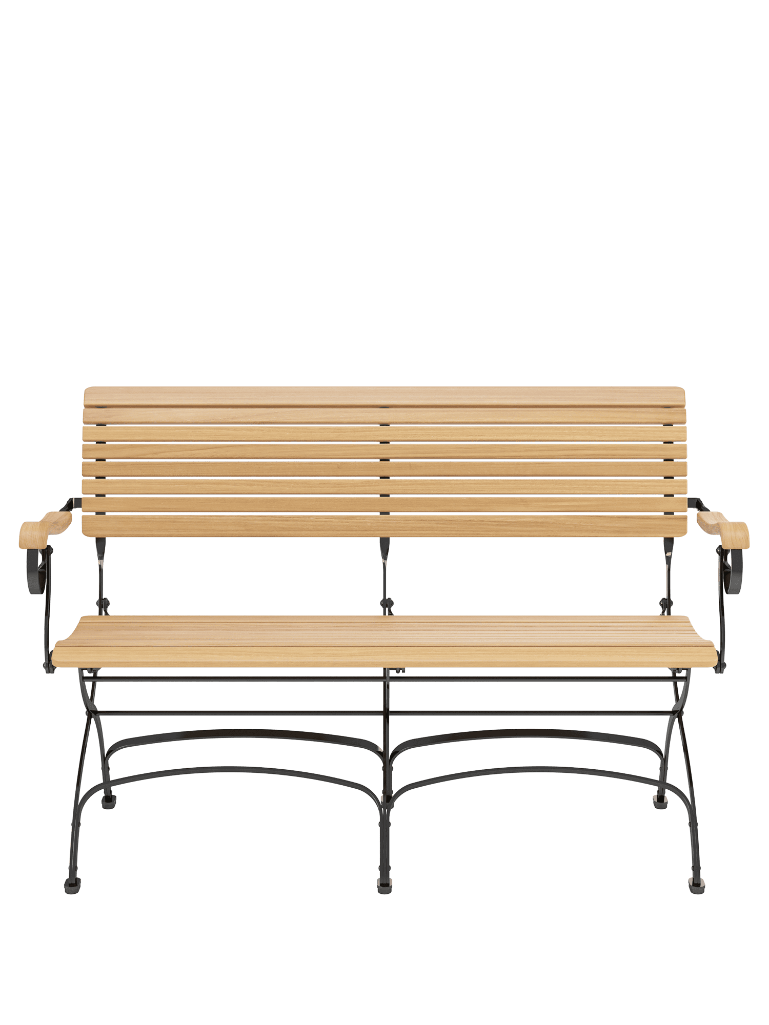 Die Bank im unverwechselbaren Fontenay Design begeistert als Solitär oder lädt bis zu zwei Personen an den Tisch. Sie ist klappbar und lässt sich platzsparend verstauen.