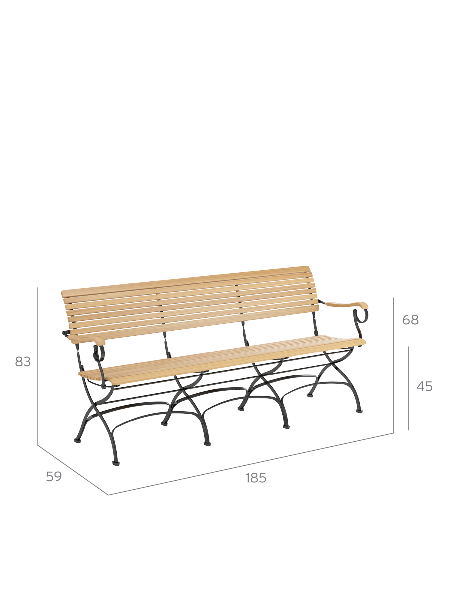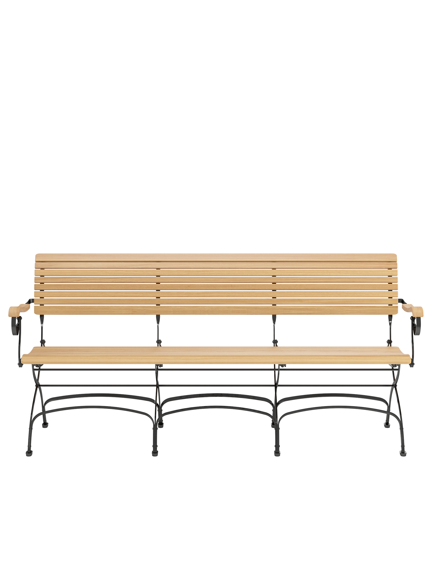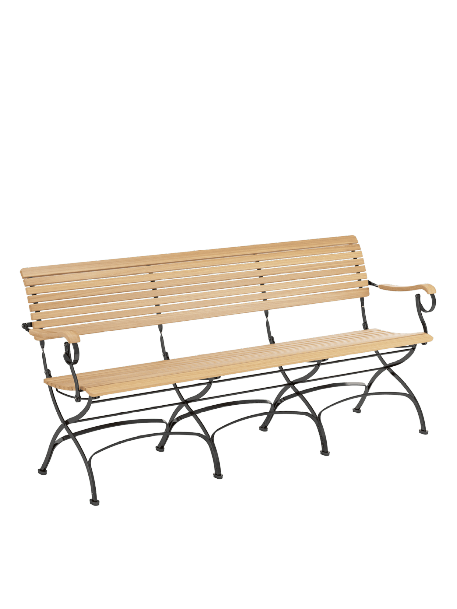 Die Bank im unverwechselbaren Fontenay Design begeistert als Solitär oder lädt bis zu zwei Personen an den Tisch. Sie ist klappbar und lässt sich platzsparend verstauen.