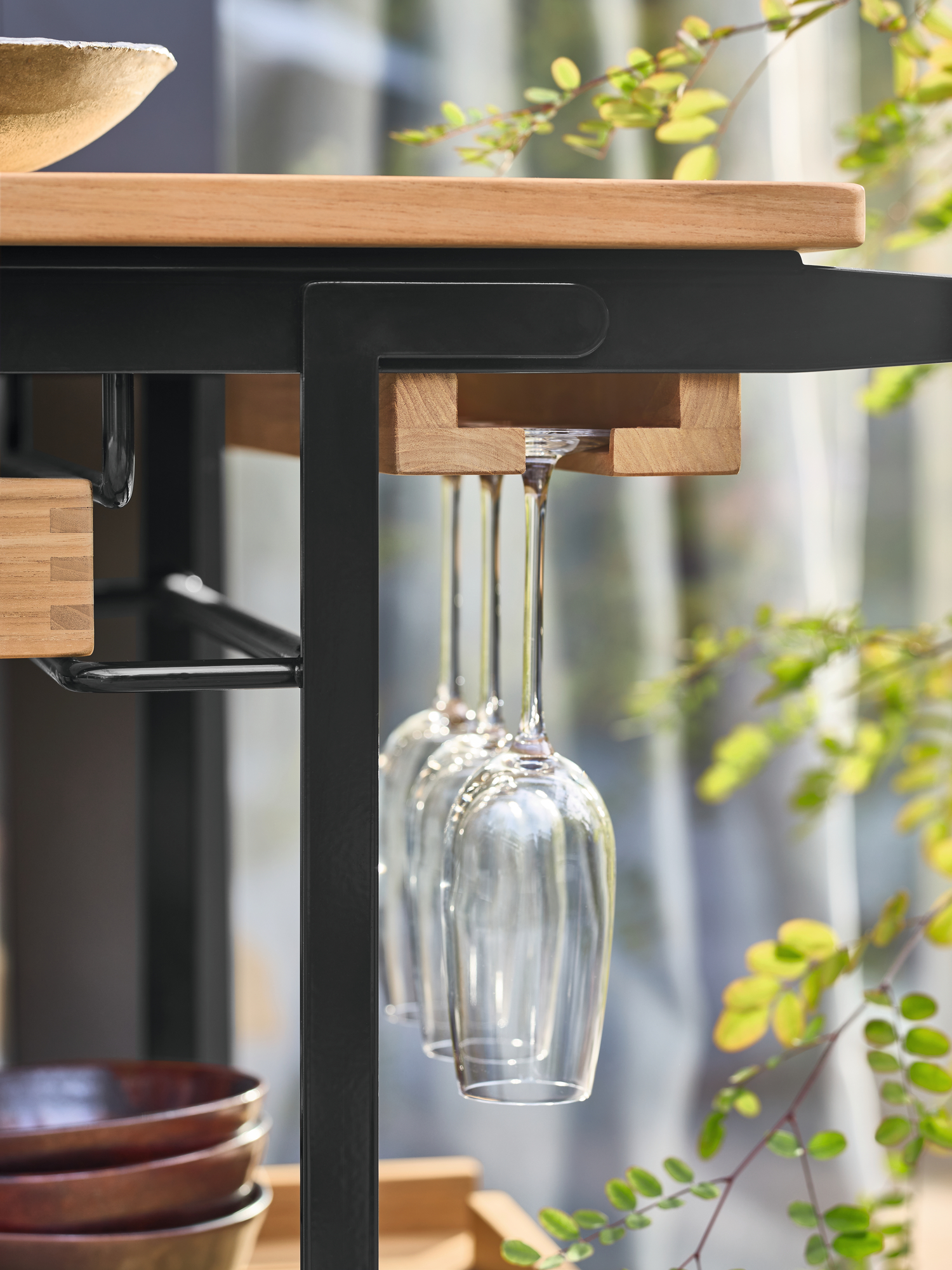 - Arbeits- und Ablageflächen aus wetterfestem Plantagenteak