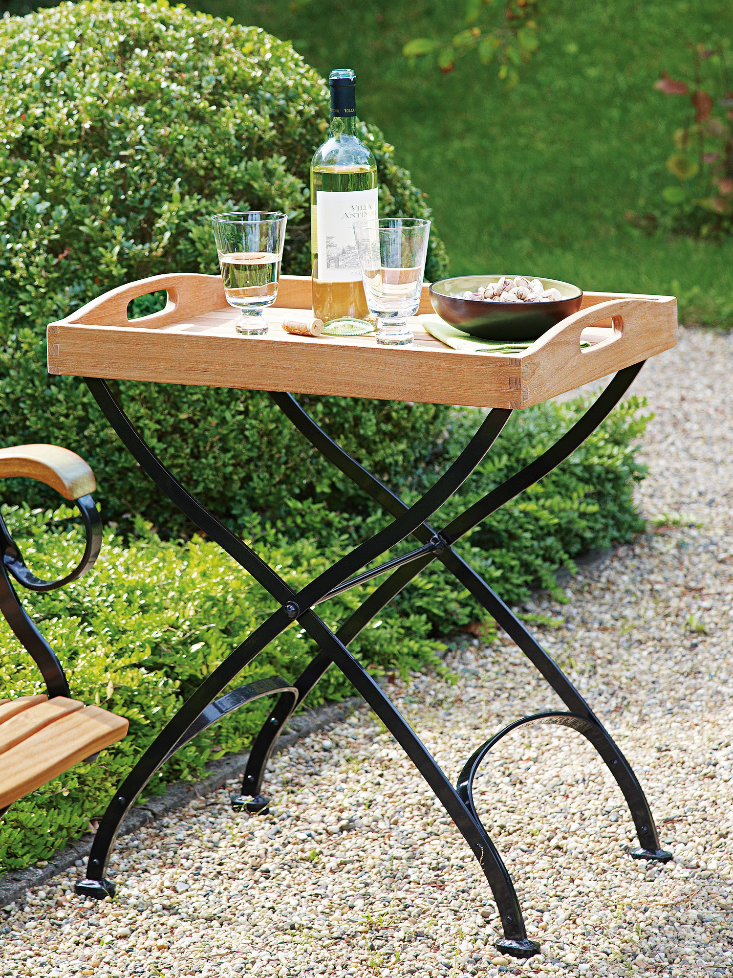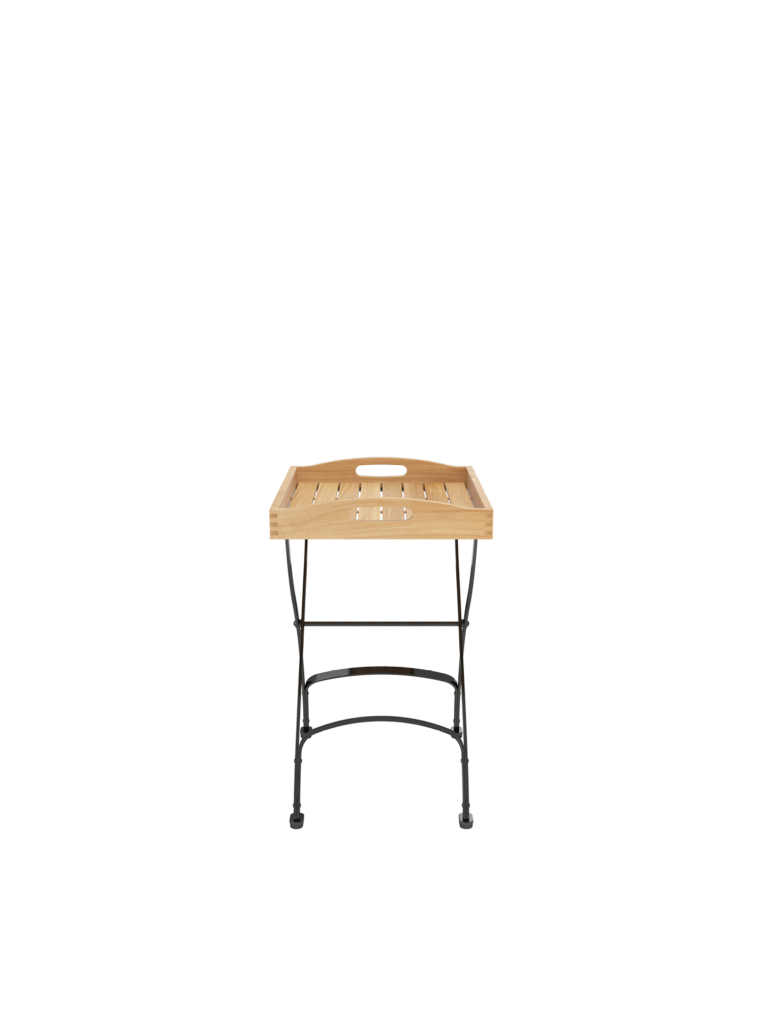 Er versieht seinen Dienst mal als Beistelltisch, mal als Portable: Der klappbare Butler’s Tray zeigt sich angenehm flexibel.