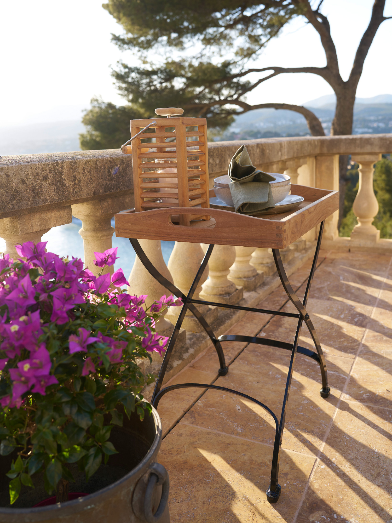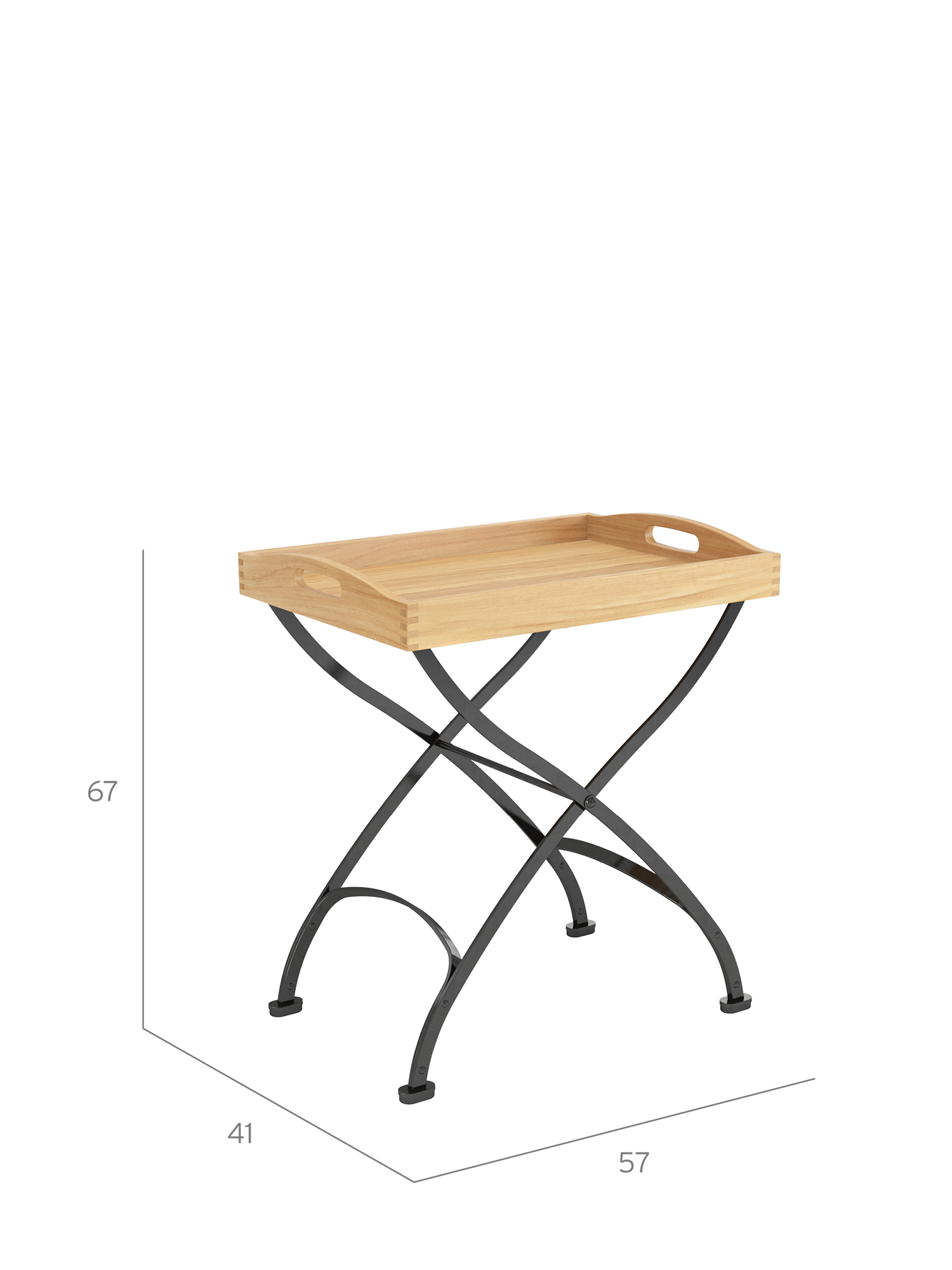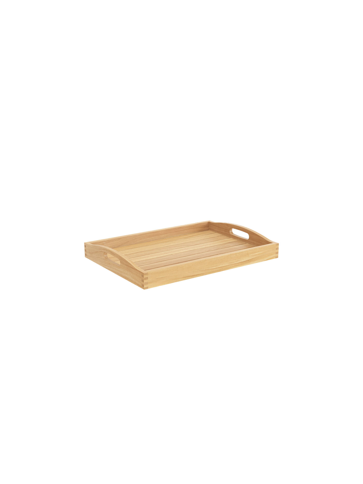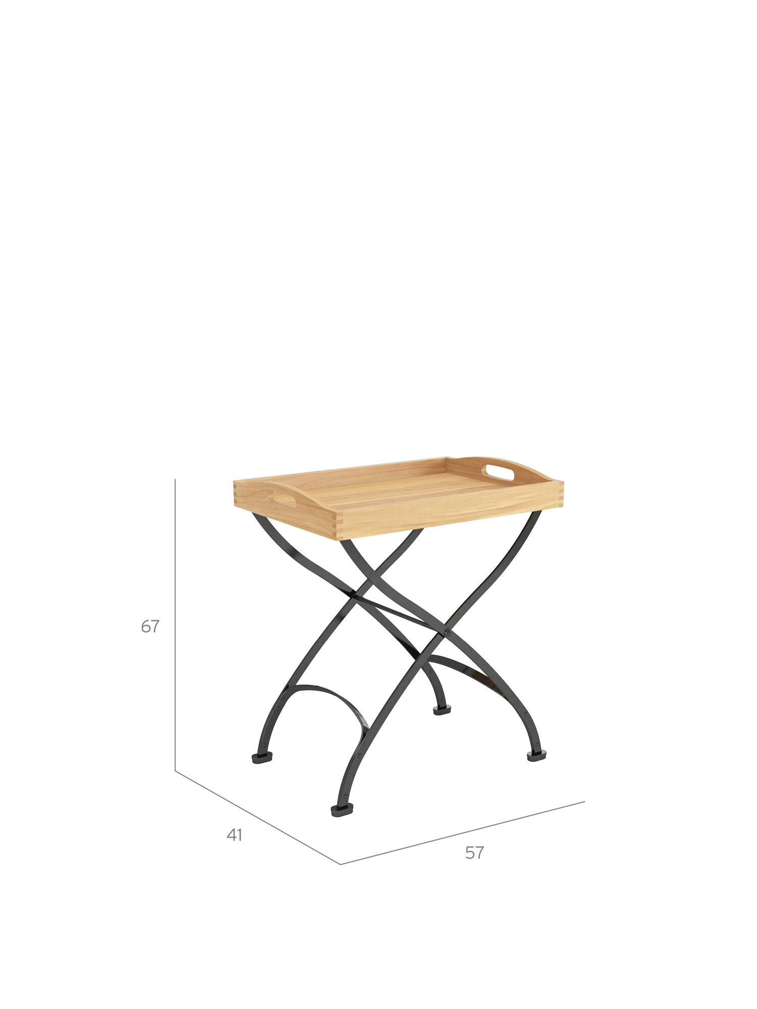 Überall schnell positioniert, wo zusätzlicher Platz bei Tisch benötigt wird, hält er alles in praktischer Reichweite. Das Gestell des Butler’s Tray besteht aus verzinktem, pulverbeschichtetem Stahl, das abnehmbare Tablett aus massiven Teakleisten ist auch einzeln erhältlich. Fußgleiter aus abriebfestem Kunststoff schützen wertvolle Böden vor Kratzern.
