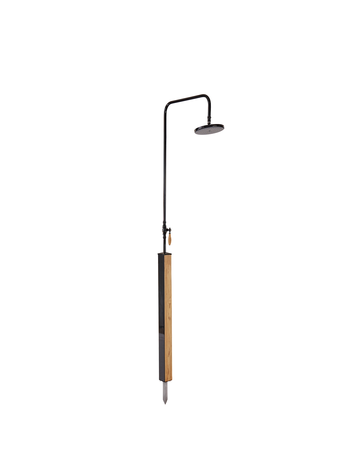 Der Duschkopf der Fontenay Gartendusche aus galvanisch verzinktem, pulverbeschichtetem Stahl ist mit einer Gummierung versehen, die Verkalkungen hemmt. Sollten dennoch Kalkrückstände auftreten, können sie ohne scharfe Reinigungsmittel entfernt werden.